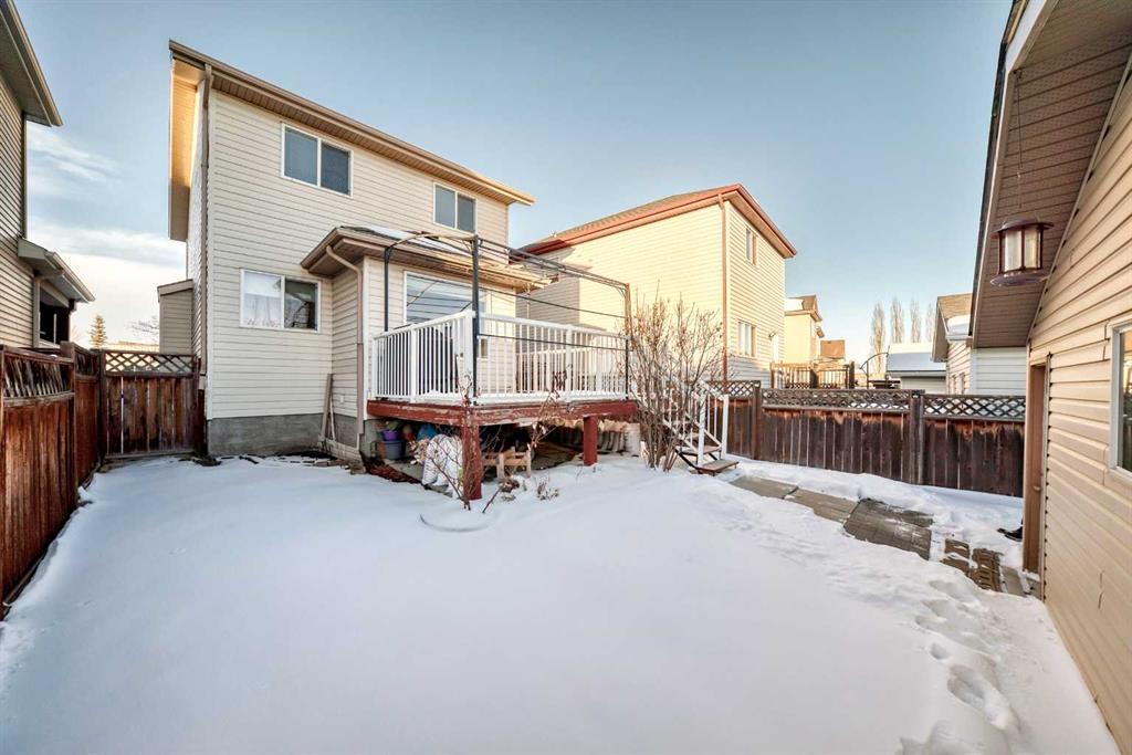 Well-maintained single detached home in the sought-after Evergreen community. The main floor features a bright, spacious living room that flows into a functional kitchen with black appliances, a generous dining area overlooking the backyard and double detached garage, and a convenient half bath. The sunny backyard has a great-sized deck for outdoor entertainment and space for gardening. Upper floor has two sizeable bedrooms, a full bath and a Master Bedroom with 3-piece ensuite bath and a generously sized closet. Hardwood and laminate flooring run throughout the home. Basement has a laundry area and offers additional flex space for storage or future development. A newer hot water tank has been installed as well. Located directly across from Catholic School of Our Lady of Evergreen, with bus stops just around the corner and two additional schools only minutes away. Close to playgrounds, recreational center and Fish Creek Provincial Park with quick access to Stoney Trail for easy commuting to shopping, Costco, and all areas of the city.