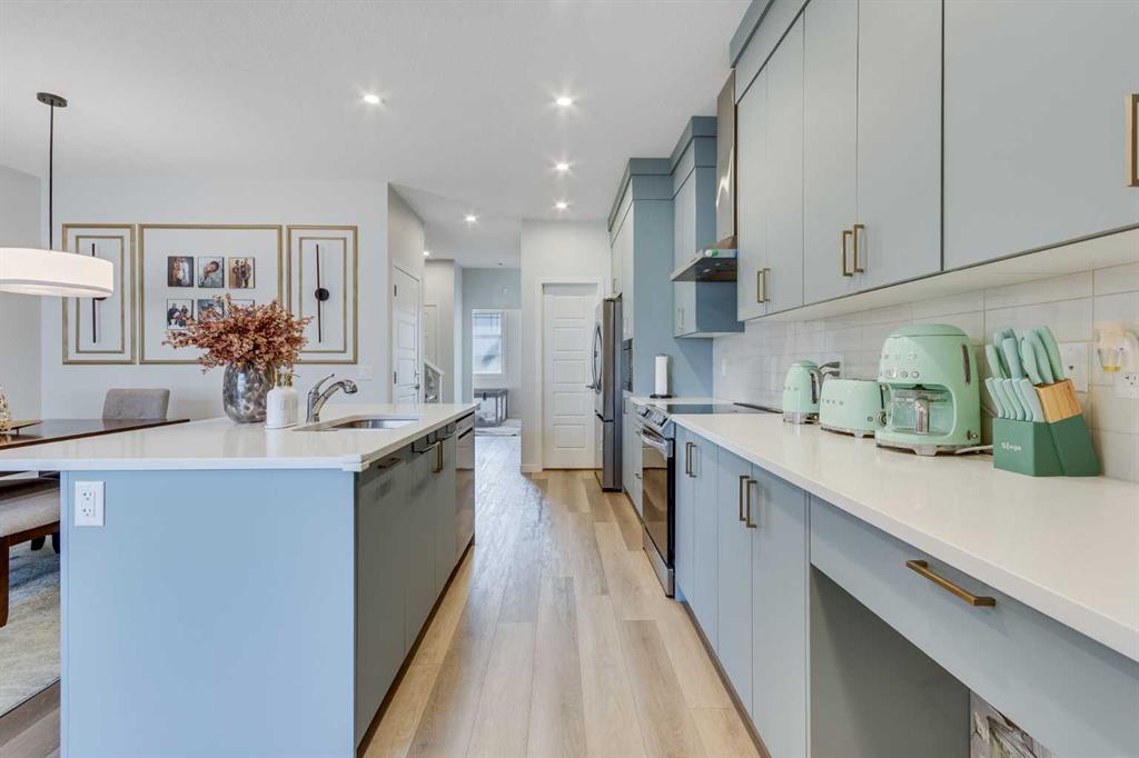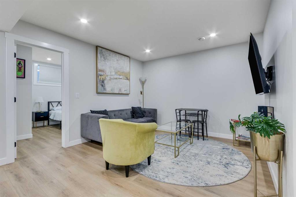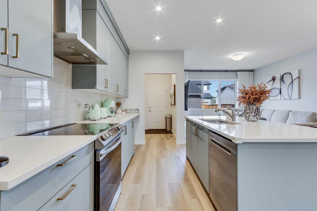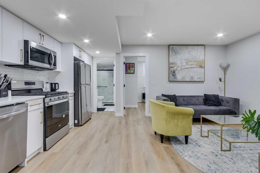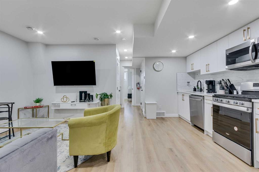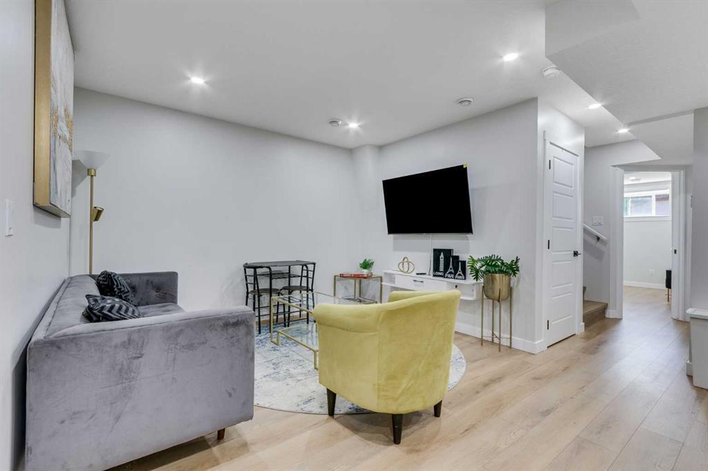 This stunning detached home offers 1,843 sq. ft. above grade plus a fully finished 810 sq. ft. legal basement suite with separate entrance, providing a total of nearly 2,700 sq. ft. of living space. Perfect for families or investors, this property sits on a total of 2,950 sq. ft. landscaped lot. Step inside and be greeted by a bright, open-concept main floor featuring – A dedicated office space perfect for working from home, convenient mudroom and two closets for easy storage, Spacious living and dining areas designed for family gatherings, a chef-inspired kitchen with full-height textured melamine cabinetry, quartz countertops, large island, walk-in pantry, and premium stainless steel appliances ( Samsung French-door fridge, electric range, wall-mounted hood fan, and microwave). Upstairs, you’ll find a cozy family room, two generous secondary bedrooms, a full bathroom, laundry room, and a luxurious primary suite with a 4-piece ensuite featuring double vanity and a walk-in closet. The fully finished legal basement suite is a standout feature — perfect for multi-generational living or rental income. With its own mechanical system, full kitchen with pantry, living/dining area, two large bedrooms, full bathroom, and in-suite laundry, this suite has been a proven income generator, earning $1,800–$2,400/month on Airbnb and VRBO in the spring and summer months (even higher during Calgary Stampede month!). Additional highlights of the property includes – Central Air-Conditioning for the summer months and heat pump, motorised window blinds, black out shades, curtains for convenience, durable vinyl plank flooring on the main level and basement suite, and cozy carpets upstairs.