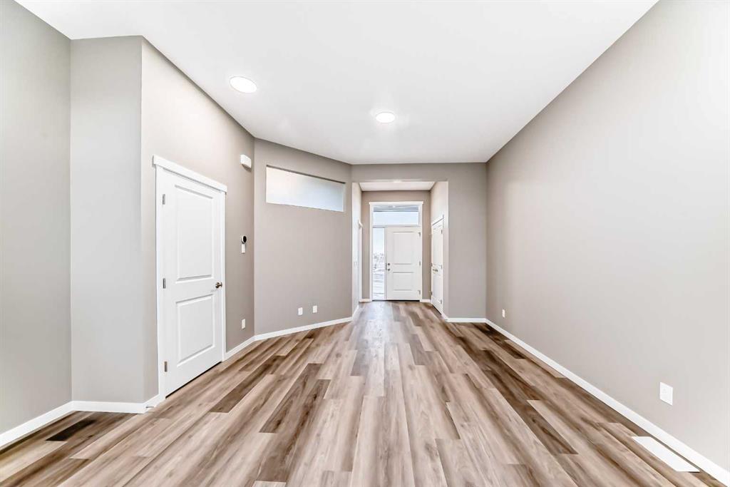 Welcome to 119 Sawgrass Gate NW — a brand-new, thoughtfully designed semi-detached home with no condo fees, and immediate possession available. Built by award-winning Hopewell Residential, this home offers exceptional craftsmanship, long-term value, and modern functionality in one of Airdrie’s newest and most exciting communities, Sawgrass Park. The exterior showcases durable Hardie Board siding, a premium fibre-cement product known for its longevity, resistance to fire, moisture, and pests, and its ability to maintain curb appeal with minimal maintenance—an excellent long-term investment for homeowners. A 20’ x 21’ rear garage pad and front yard landscaping included complete the exterior package. Inside, the main floor is bright and inviting, featuring quartz countertops throughout, a paint-grade spindle railing, and a beautifully upgraded kitchen with full appliance package, chimney-style hood fan, and ample storage—perfect for everyday living and entertaining. A versatile main-floor flex room with French door provides an ideal space for a home office, playroom, or formal dining area. Upstairs, you’ll find three well-appointed bedrooms, a spacious bonus room, and upper-level laundry for added convenience. The primary suite is a true retreat, offering a walk-in closet and a 4-piece ensuite with dual vanities and a walk-in shower. The undeveloped basement offers incredible future potential with 9’ foundation walls, a separate side entrance, and 3-piece bathroom rough-in plumbing, making it ideal for additional living space, a home gym, or future development to suit your needs. Located in Airdrie, Sawgrass Park is designed for modern living, with future parks, pathways, and convenient access to schools, shopping, and major commuter routes—offering the perfect balance of community connection and everyday convenience. This is an outstanding opportunity to own a brand-new, no-condo-fee home with premium finishes, thoughtful upgrades, and immediate possession. Don’t miss your chance to be part of this growing NW Airdrie community.
