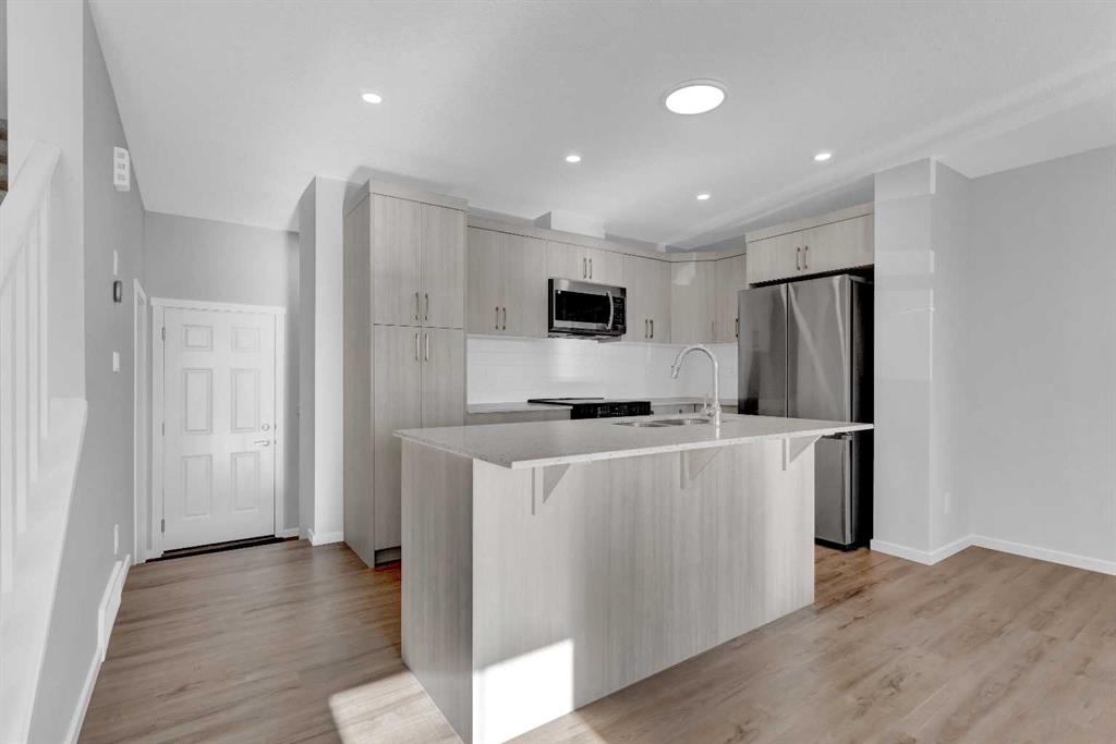 You are invited to view this Absolutely Brand New and Freehold (No Condo Fee) Townhome equipped with Solar Panels that has it all- Front Porch, A balcony, very practical layout of the living, dining and kitchen as large as some detached homes, a large mudroom with inbuilt shelves and coat hooks leading to a large powder room and the best of all- A double attached Garage adding much needed convenience over the winters to come. Upstairs: Owner’s suite that consists of a large bedroom with attached balcony, a true walk-in closet and a 4 pc ensuite. There are two more Bedrooms that can all fit king sized bed, another common 4 pc bath and a must have 2nd level laundry. The home is sunlit all day due to the exposure and the evergreen finishes make it an ideal home to be on your list of homes to check out at the earliest. There’s a fence across the back alley separating the rear lane from the homes behind, for a nice clean access. Come and check it out today!