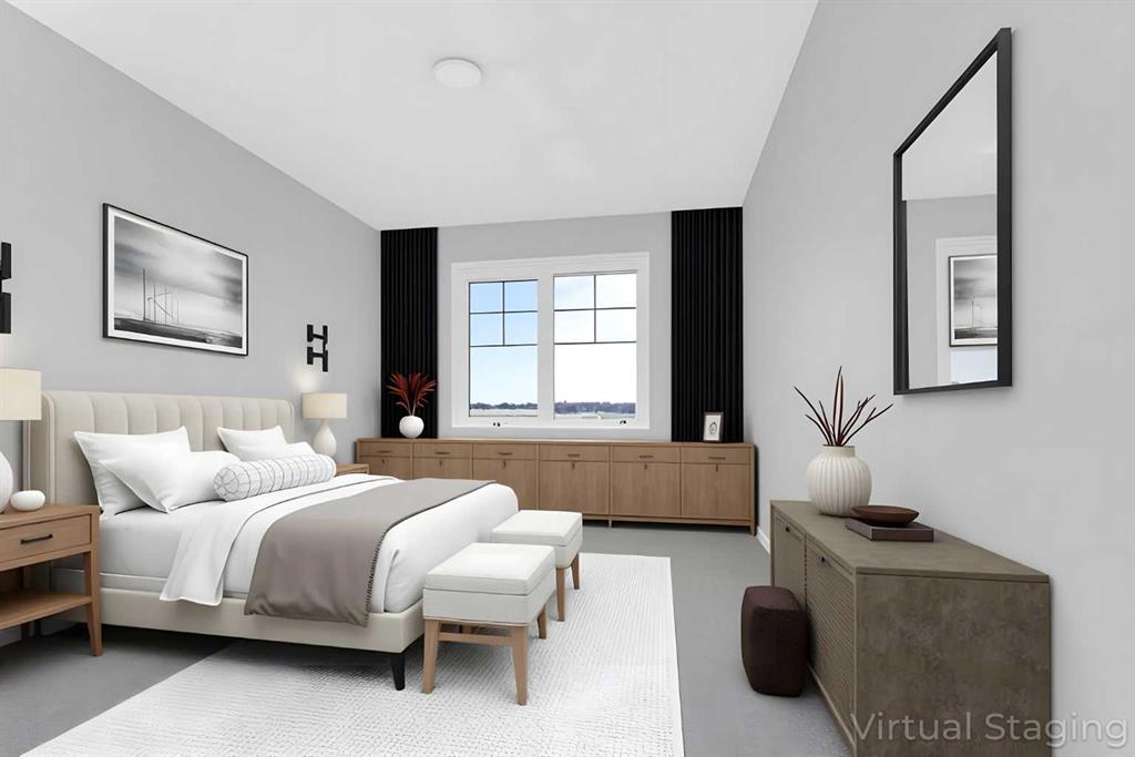 You are invited to view this Never occupied, absolutely Brand New and Freehold (No Condo Fee) Townhome equipped with Solar Panels that has it all- Front Porch, very practical layout of the living, dining and kitchen as large as some detached homes, a large mudroom with inbuilt shelves and coat hooks leading to a large powder room and the best of all- A double attached Garage adding much needed convenience over the winters to come. Upstairs: Owner’s suite that consists of a large bedroom with attached balcony, a true walk-in closet and a 4 pc ensuite. There are two more Bedrooms that can all fit king sized bed, another common 4 pc bath and a must have 2nd level laundry. The home is sunlit all day due to the exposure and the evergreen finishes. There’s a fence across the back alley separating the rear lane from the homes behind, for a nice clean access to the garage. Come and check it out today!