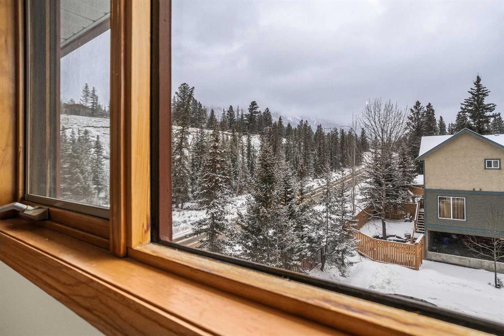 Enjoy breathtaking mountain views from the large private balcony of this spacious top floor 3 bedroom , 1 bathroom home. Thoughtfully designed with comfortable living all on one floor, this unit features in-suite laundry and upgraded appliances for added convenience. The oversized heated storage area provides exceptional space for seasonal items and extras. Includes 2 assigned parking stalls (one covered). A fantastic opportunity offering space, functionality, and incredible views all in one package.