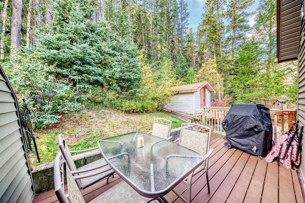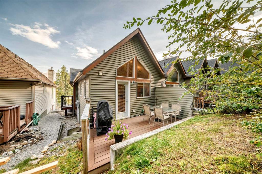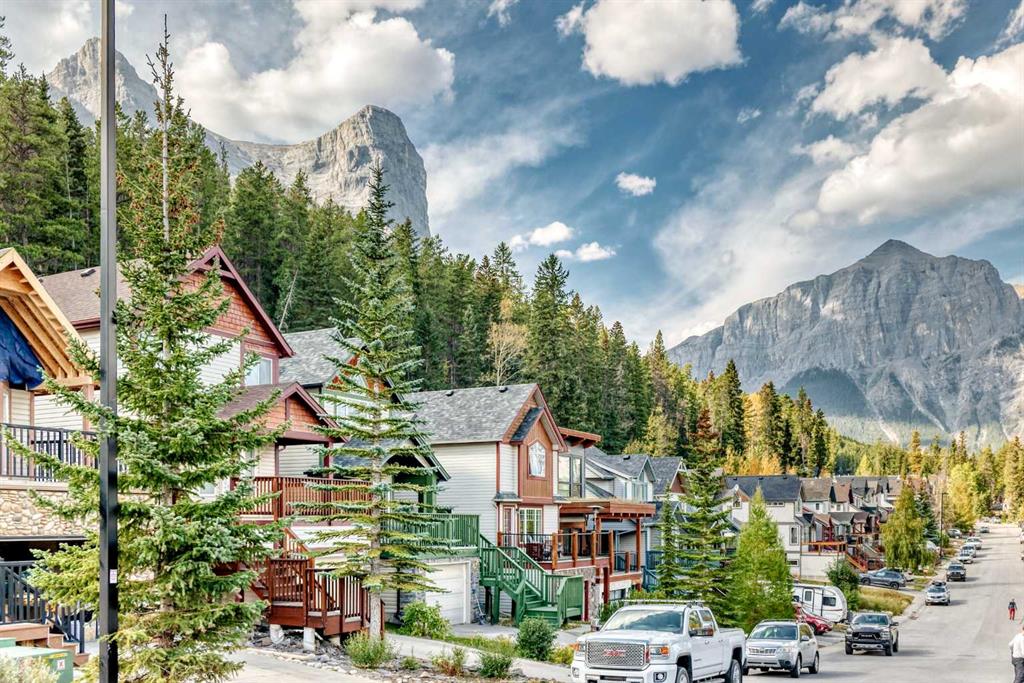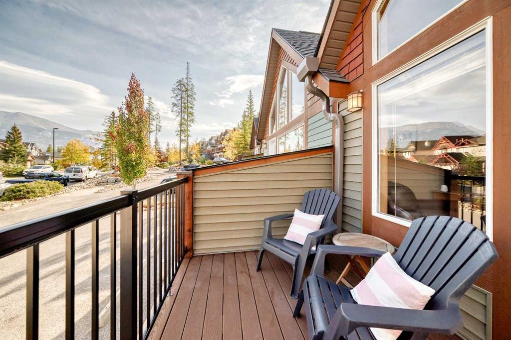 Visit REALTOR® website for additional information. Ideal as a full-time home for a small family or a picture-perfect weekend retreat, this two-level, two-bedroom, 1.5- bath townhome offers incredible value in one of Canmore’s most sought after, lifestyle-oriented communities. As an end unit with no neighbours above or below, the home feels like your own private mountain chalet. Large windows frame both front and rear views, while vaulted ceilings create a bright, airy atmosphere upstairs. The open kitchen and dining area flow beautifully together, while the living room, with its soaring ceilings and cozy gas fireplace, provides the perfect place to gather. Step outside to either the front deck or rear patio and enjoy uninterrupted mountain vistas, with direct access to the Kananaskis Country