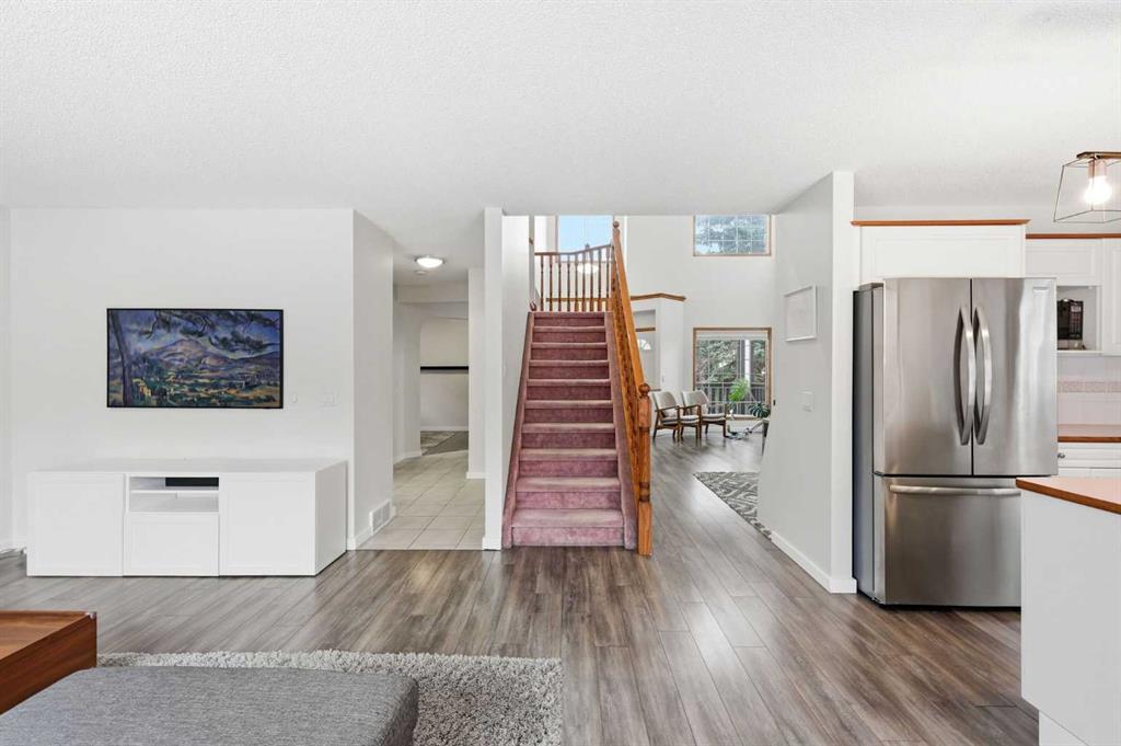 Welcome to this fantastic family home in Citadel, ideally situated on a quiet street within walking distance to schools and parks. Step inside and be greeted by impressive double-height ceilings and an abundance of natural light in the formal living and dining areas. The spacious kitchen features new appliances, a bright breakfast nook, patio doors leading to a beautiful new oversize composite deck (2023), and seamless access to the cozy family room with a fireplace—perfect for everyday living and entertaining. The main floor is complete with convenient laundry, a dedicated office, and a newly renovated powder room. Upstairs, you’ll find a generous primary retreat with a large walk-in closet and a brand-new, modern 3-piece ensuite, along with two additional bedrooms and a renovated 4-piece bathroom. The unfinished lower level offers a blank canvas ready for your personal vision. Additional highlights include air conditioning, professionally removed Poly-B plumbing (2023), and a radon mitigation fan installed in 2025. Located in a highly desirable community, this home is within walking distance to Citadel Park Elementary School (K–5), the community association, tennis courts, outdoor rink, baseball diamonds, green spaces, multiple playgrounds—including a charming “hidden” playground in the cul-de-sac—and more. With quick access to Stoney Trail, commuting is effortless. Book your private showing today and experience everything this wonderful home has to offer.