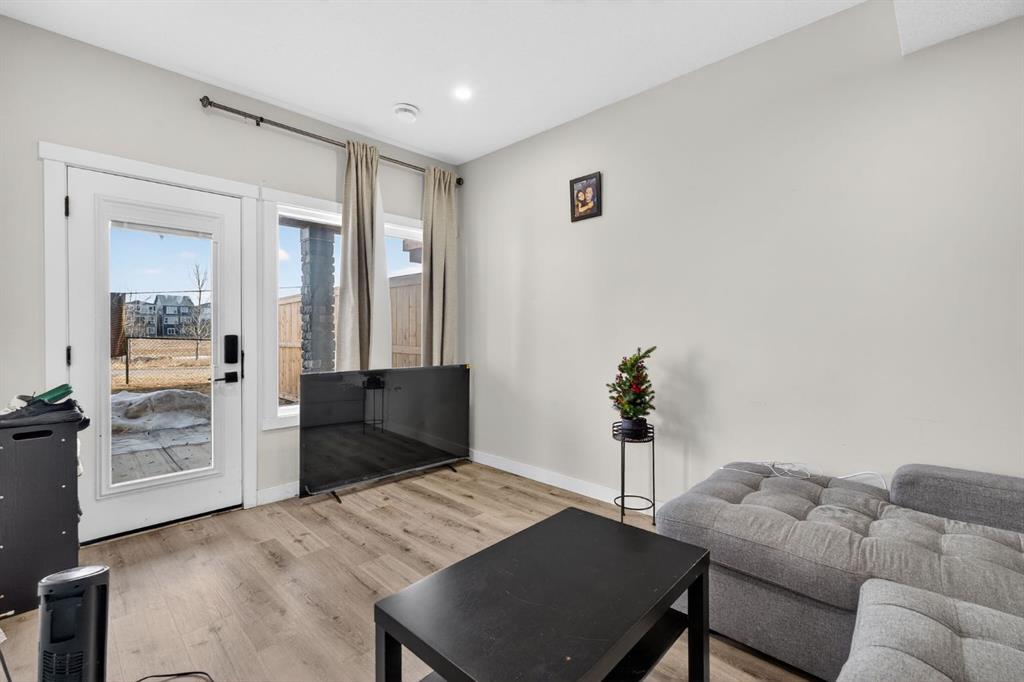 The main level features a bright, open-concept layout with modern finishes throughout. The kitchen is a true standout, thoughtfully designed with quartz countertops, a large central island, sleek cabinetry, and two stoves—including a gas range located in the walk-in pantry, perfect for those who love to cook or entertain. This highly functional setup offers added convenience while keeping the main kitchen clean and open. The dining area flows seamlessly to the upper deck overlooking green space, while the spacious living room offers a comfortable gathering space filled with natural light. A rare main-floor bedroom and full bathroom provide excellent flexibility for guests, extended family, or a home office. Upstairs, the home continues to impress with four generously sized bedrooms and a thoughtfully designed layout. The primary suite is a true retreat, featuring large windows, a custom walk-in closet with built-in cabinetry, and a beautifully appointed ensuite with dual sinks, quartz countertops, a deep soaker tub, and a separate glass-enclosed shower. The upper level also includes a full bathroom, convenient upper-floor laundry, and a versatile bonus/flex area—perfect for a family room, study space, or play area. The legal walkout basement suite is fully self-contained and thoughtfully designed, offering two bedrooms, a modern full kitchen, a comfortable living area, a full bathroom, separate laundry, and a private entrance. Large windows and walkout access ensure the space feels bright and welcoming, making it ideal as a mortgage helper, rental investment, or multi-generational living solution. Additional highlights include a double attached garage, contemporary finishes throughout, and a prime location backing onto green space while remaining close to schools, parks, shopping, and major commuter routes. This is a rare opportunity to own a spacious, income-generating home in one of Calgary’s fastest-growing communities. Don’t miss your chance to see this one today.
