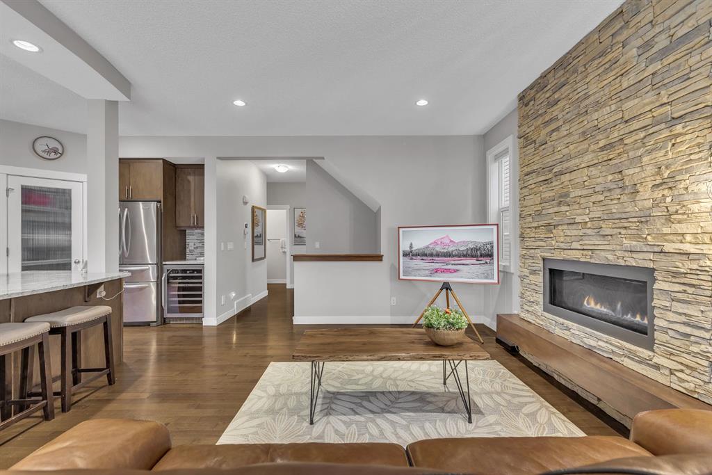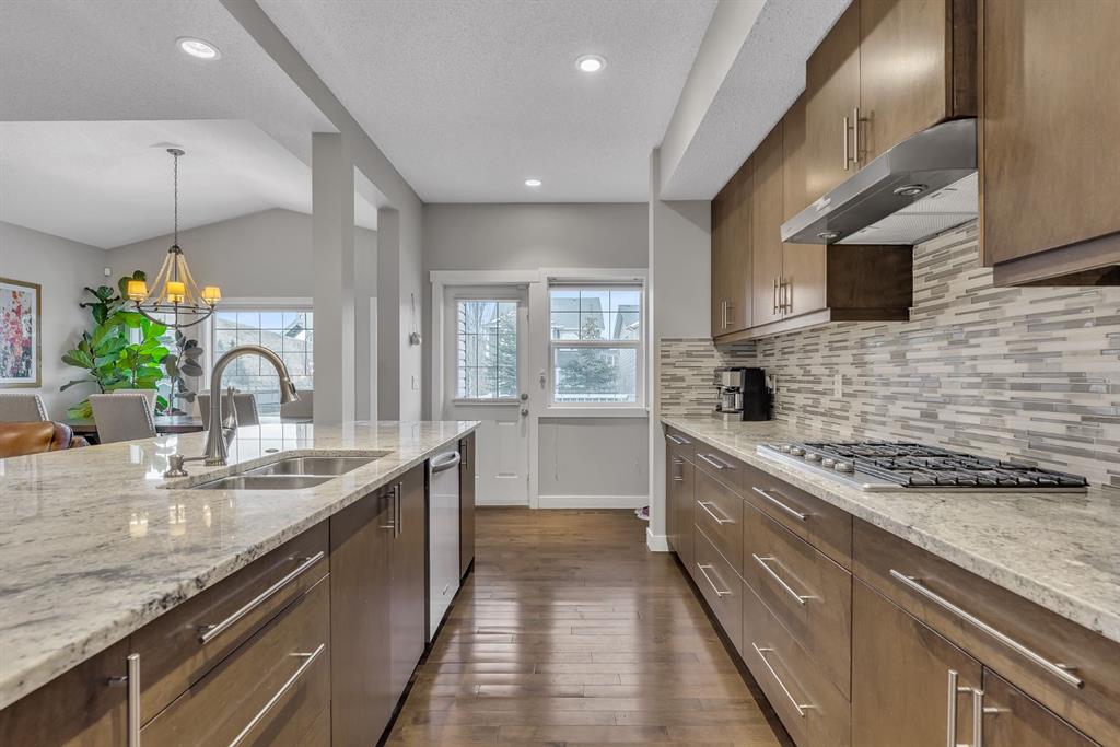 Situated on a quiet street in the sought-after southwest community of Cougar Ridge, this beautifully appointed two-storey offers 2,053 square feet above grade of thoughtfully designed living space. Built by Shane Homes and enhanced with numerous upgrades, this property blends everyday functionality with impressive entertaining areas. The main level features a seamless open-concept layout anchored by a striking chef’s kitchen. An oversized island, granite countertops, abundant cabinetry, gas range, stainless steel appliances, and a convenient walk-through pantry make this space both practical and elegant. The adjacent living room is framed by soaring vaulted ceilings, expansive windows, and a dramatic stone fireplace that creates a warm focal point for gatherings. A powder room, mudroom, and direct access to the attached double garage complete the main floor. Upstairs, you will find three generously sized bedrooms, two full bathrooms, and a spacious bonus room with vaulted ceilings—ideal for family movie nights or a quiet retreat. The primary suite offers a walk-in closet and a well-appointed ensuite featuring a stand-alone shower and a jetted soaker tub. Newer flooring (2022) has been installed throughout the upper level, adding a fresh and contemporary feel. The fully developed lower level expands the home’s versatility with a fourth bedroom, an additional full bathroom, a family room, dedicated gym space, and ample storage. Backing onto greenspace and a walking pathway, the backyard provides both privacy and tranquility. A large deck and patio create the perfect setting for outdoor entertaining while offering a safe and open area for children and pets to enjoy. Recent upgrades include newer central air conditioning (2022), a 240V electrical panel upgrade in the garage (2024). Located just minutes from Canada Olympic Park, highly regarded schools, the amenities along 85th Street SW, and with convenient access to the west leg of the Calgary Ring Road, this home offers an exceptional combination of location, space, and thoughtful updates!
