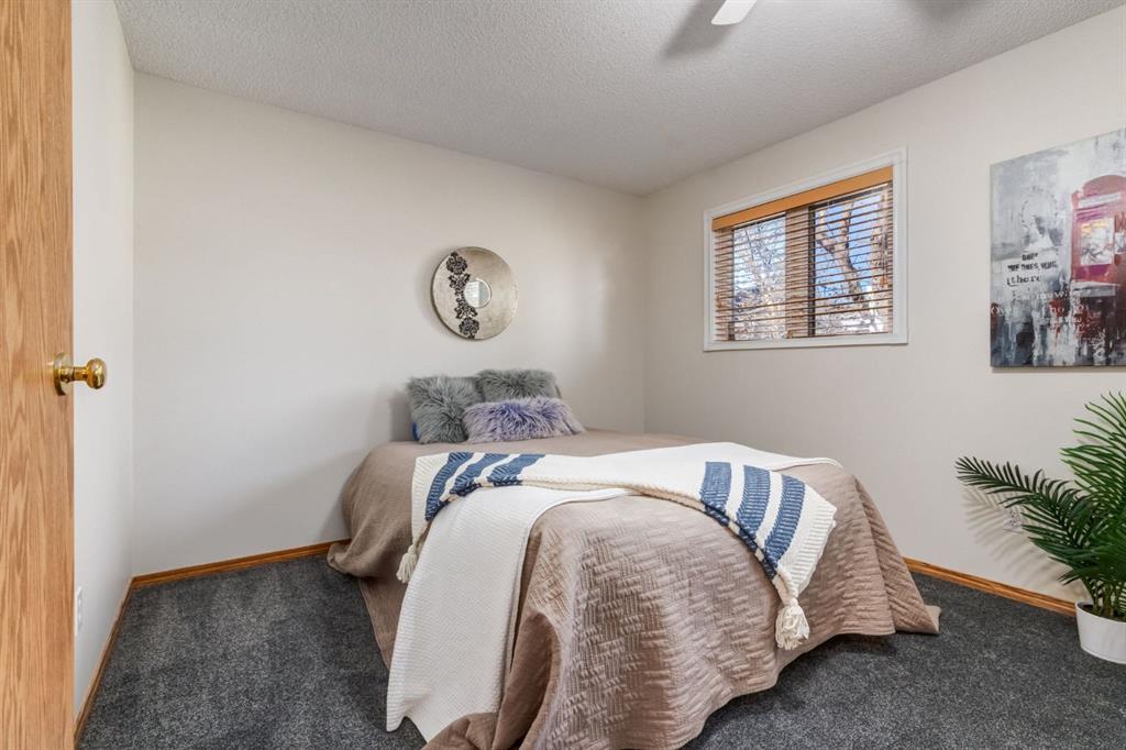 Beautifully maintained 2-bedroom townhouse with single attached garage in desirable Millrise. This home offers numerous updates including newer windows, including double sliding doors to a private backyard backing onto green space, and a newer furnace and hot water tank. Enjoy the benefits of a bare land condo, where you own the land beneath your home. The interior has been freshly painted in natural tones and features new light fixtures and laminate flooring on the main level. The upper floor offers two spacious bedrooms, including a primary suite with walk-in closet, and a second bedroom nearly equal in size. Functional floor plan with 1.5 baths and an undeveloped basement ready for future development. Located in a quiet cul–de-sac within a well -managed complex, this home is walking distance to schools, parks, amenities and LRT making it ideal for first- time buyers or investors . Millrise is served by schools perfect for growing families who value convenience and safe walks to schools Excellent value, quick possession. Call today for your private viewing .