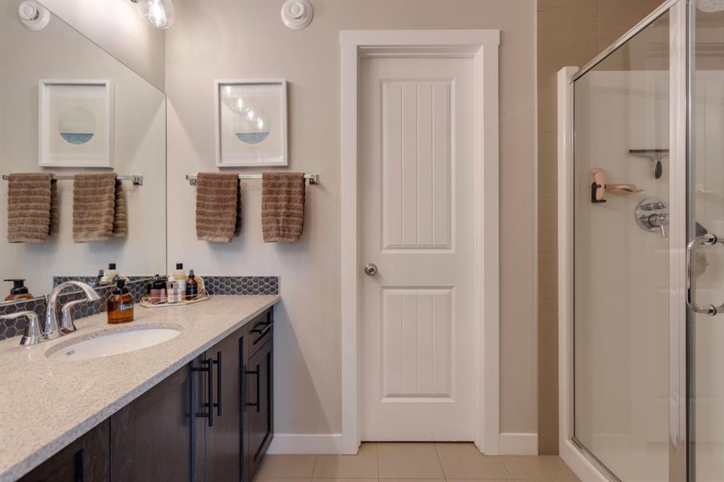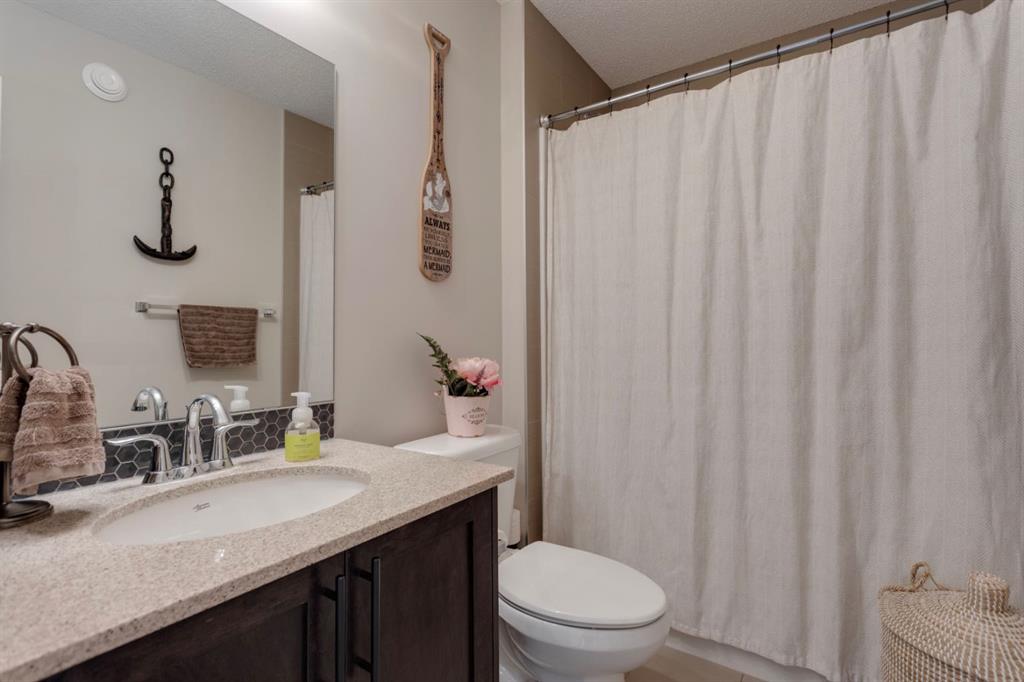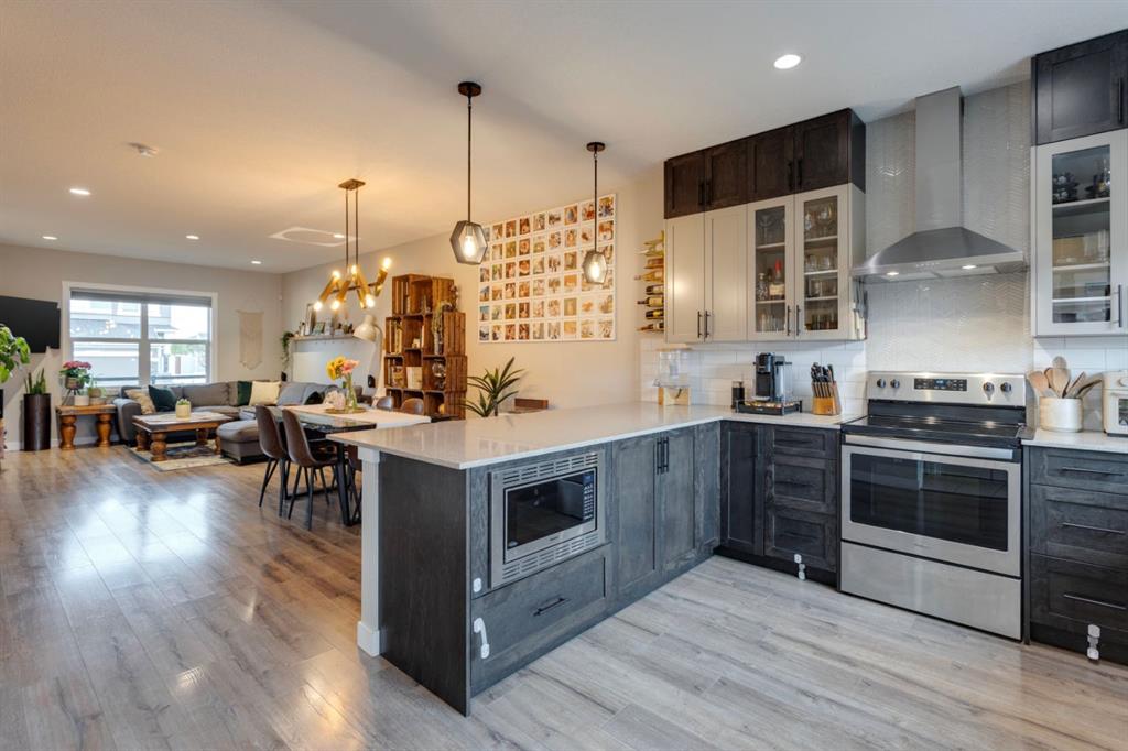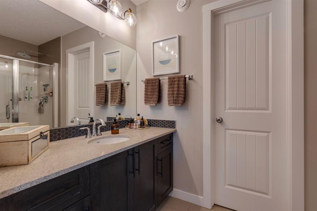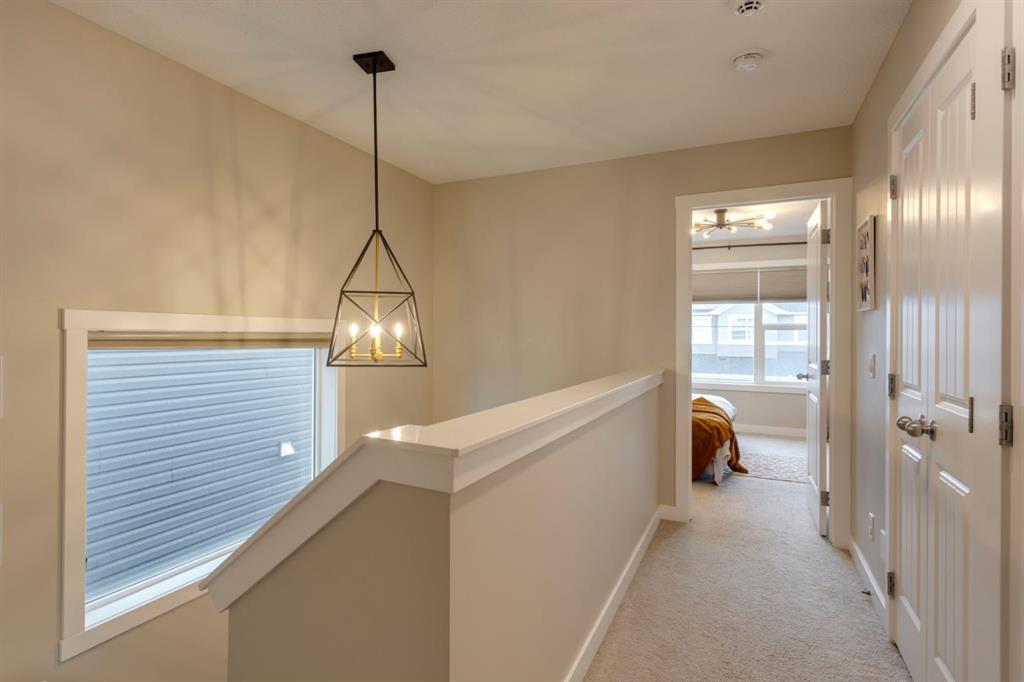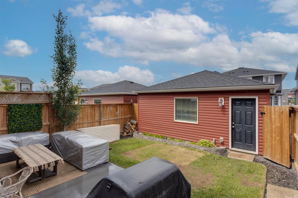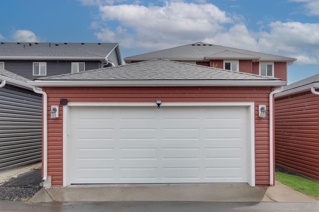 Proudly offered by the original owners, this meticulously maintained duplex in Redstone is a rare opportunity to own a fully upgraded, turn-key property in one of Calgary’s most connected and growing communities. Built by Shane Homes in 2019 and thoughtfully customized from day one, every corner of this home reflects pride of ownership and practical design. As you enter the 9-foot ceilings on the main floor welcome you, the custom 2 tone kitchen and professionally developed basement, this home offers over 2,100 square feet of finished living space with upgrades that matter. Open-concept layout connecting kitchen, dining, and living areas. Kitchen features quartz countertops, stainless steel Whirlpool appliances with water and ice fridge, hood fan, and built-in microwave in the island. Spacious primary suite with large windows, walk-in closet (with custom shelving), and ensuite featuring double shower heads (rainhead and handheld) and a private water closet. Professionally developed basement with a large flex space, recreation room with window, half bath, and two storage rooms, private side entrance with finished landing and smart lock. Detached garage: heated, insulated, drywalled, epoxy floor, upgraded electrical (suitable for compressor or welding equipment), landscaped backyard with poured concrete patio and extra tall lattice privacy fencing, new shingles, eavestroughs, and siding. Insulated garage door (new in 2025), Full servicing of furnace and AC (2025), Brand new washing machine.