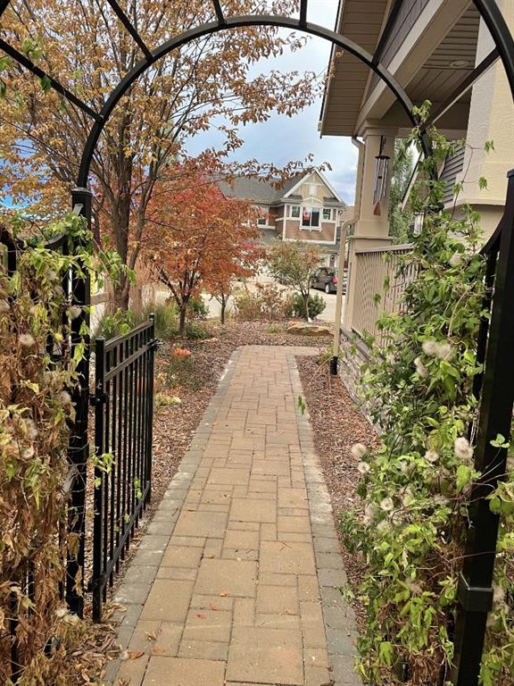 12 Sunrise View | Sunset Ridge, Cochrane Former show home. Corner lot. Wrap-around porch and perennial gardens. This isn’t just a house — it’s a whole vibe. Welcome to the happiest home in Sunset Ridge. Set on a quiet street just two minutes from the subdivision exit, this cozy oasis is nestled amongst 12 mature trees with a view of the boulevard on three sides. Walkability to the THREE nearby parks, a pond, two schools, and amenities/professional services is highly desirable. Leave the car at home. Now let’s talk curb appeal…The southeast-facing wrap-around porch w/ slip-free composite surface is made for morning coffee in the sun. The rear courtyard hosts an extensive 30’ x 20’ patio that soaks up afternoon and evening light, while offering shade trees to a host of songbirds. The yard is fully fenced with steel fencing, gated arbours, a garden shed, and no grass to mow. Passive sub-irrigation to front and rear gardens using downspouts and weeping tile is smart & efficient. Low-maintenance, high-enjoyment living at its finest. Inside, this home is anything but cookie-cutter. It’s colourful, joyful, and full of personality — thoughtfully upgraded with texture, custom lighting, custom blinds, forever floors, and built-in details that balance warmth with smart efficiency. The main floor welcomes you with tile and hardwood floors, and a spacious foyer that captures the spirit of the west, with a place for everything. The kitchen pops with Portuguese tile backsplash, quartz counters, stone-faced island, under-cabinet lighting, upgraded SS appliances, and clever pull-outs for garbage, recycling, and more, with easy access to meals on the patio. The living room features a stone-faced gas fireplace, custom live-edge floating shelves, and a retractable TV support. Upstairs, floors are engineered hardwood and tile. The primary bedroom offers mountain and boulevard views, built-in mirrored closets (no dressers), and a 4-piece ensuite with soaker tub, separate shower, twin vessel sinks, and waterfall faucets. There are two more bright bedrooms off of a hallway alcove with custom closet built-ins. The second-floor also features a full bath, convenient laundry room, and a bonus room/office space overlooking the patio. The finished basement features a fourth bedroom (or rec rm/hobby rm), a 3-piece bath, a rec/yoga space, and your own Cupboard Under-the-Stairs storage nook with a little Harry Potter charm. The fully finished attached double garage (17’ x 21’) was the original showhome office and is polished to match — plus you have a custom paver walkway, central vac, A/C, HRV system, 92% high-efficiency furnace, 75-gallon Marathon hot water tank, and a full Eufy security camera system already installed. This home was designed to stand out — and it still does. If you’re looking for something with personality, outdoor living that actually feels usable, and a location that makes everyday life easy… 12 Sunrise View might just be your perfect match. Come experience the energy.