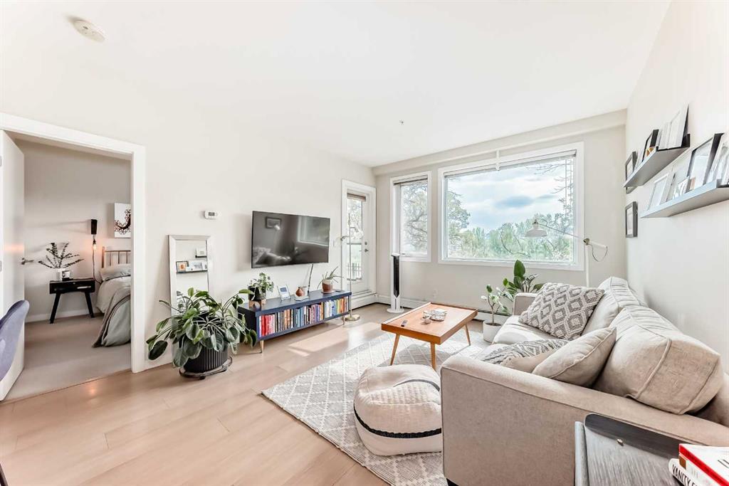 This well-maintained 1-bedroom apartment offers a bright, open, and functional layout designed for modern living. The gourmet kitchen features stainless steel appliances including a built-in oven and gas cooktop, quartz countertops, under-cabinet lighting, a sleek backsplash, and ample cabinetry with a large pantry. The living area boasts 9’ ceilings and floor-to-ceiling windows that fill the space with natural light and capture city views. The spacious queen-size bedroom includes a walk-through closet leading to the ensuite. Enjoy your private east-facing balcony with a BBQ gas hookup overlooking a quiet street. Building amenities include two fitness centers, a bike storage room, car wash bay, dog wash station, visitor parking, and a beautifully landscaped courtyard with seating areas. This unit comes complete with a titled underground parking stall, an assigned storage locker, in-suite laundry, and extra storage space. Located within walking distance to restaurants, cafés, shops, the downtown core, public transit, and river pathways—this home is perfect for professionals seeking a convenient urban lifestyle!