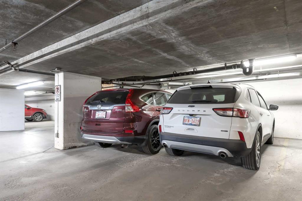This unit includes two titled underground parking stalls—use both or rent one out for $225 per month to help offset condo fees. Residents of the sought-after Liberte building enjoy access to exclusive amenities such as a fitness centre, tennis court, and party room. Located just steps from the Peace Bridge, Bow River pathways, and downtown core, this exceptional home blends urban convenience with refined comfort. A true standout in downtown living, offering unmatched value, style, and sophistication. Welcome home!