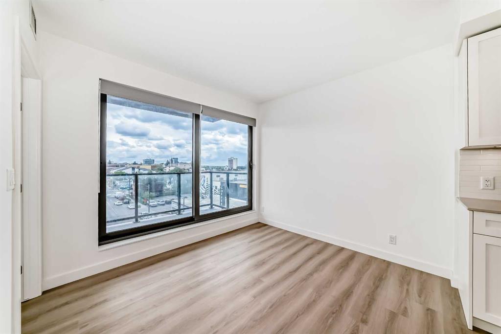 CORNER UNIT 12TH FLOOR. GREAT VIEW! Welcome to Era by Minto Communities—modern, elevated living in this well-designed 2 bedroom, 1 bathroom unit in the heart of Bridgeland. Perched on the 12th floor, this home offers unobstructed views and abundant natural light, all within one of Calgary’s most walkable neighborhoods (Walk Score of 98). You’re just steps from Bridgeland Market, Shiki Menya, Luke’s, local cafés, parks, playgrounds, and the Bow River pathway system. The Bridgeland/Memorial LRT station is nearby for quick access to downtown and the East Village. Inside, the open-concept layout seamlessly connects the kitchen and living area to a private balcony—perfect for morning coffee or evening relaxation with a view. The kitchen features a large eat-in island, quartz countertops, stainless steel appliances, and full-height cabinetry. Durable vinyl plank flooring, air conditioning, in-suite laundry, a titled underground parking stall, and a titled storage locker add everyday comfort and convenience. Built to LEED Gold standards, Era emphasizes energy efficiency and smart living, offering features like video entry, facial recognition access, secure package lockers, community messaging, and virtual concierge services. Residents also enjoy a rooftop patio with firepits and BBQs, offering stunning downtown views, along with an indoor lounge and workspace for year-round use. This well-appointed unit in a professionally managed building is an excellent opportunity to own in one of Calgary’s most desirable inner-city communities. Book your showing today. Photos are from a similar unit with an identical floorplan and may not reflect the exact finishes or views of Unit 1202.