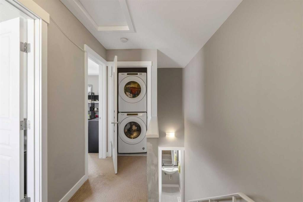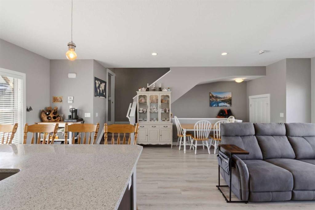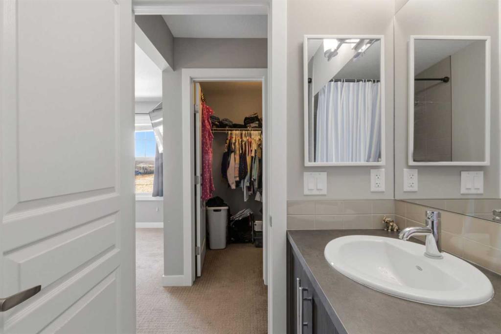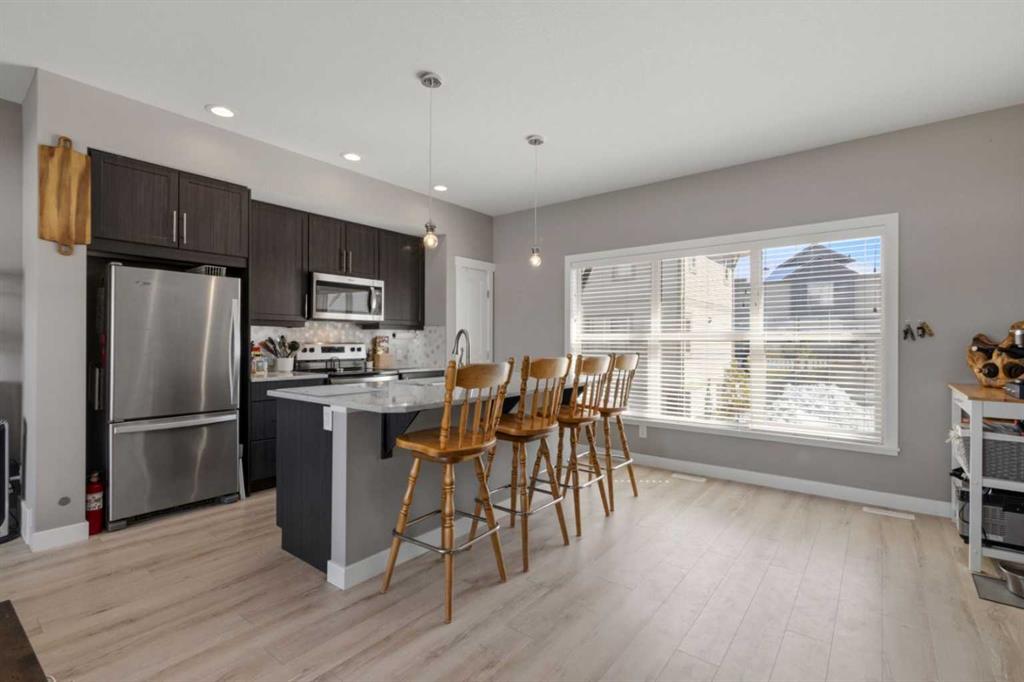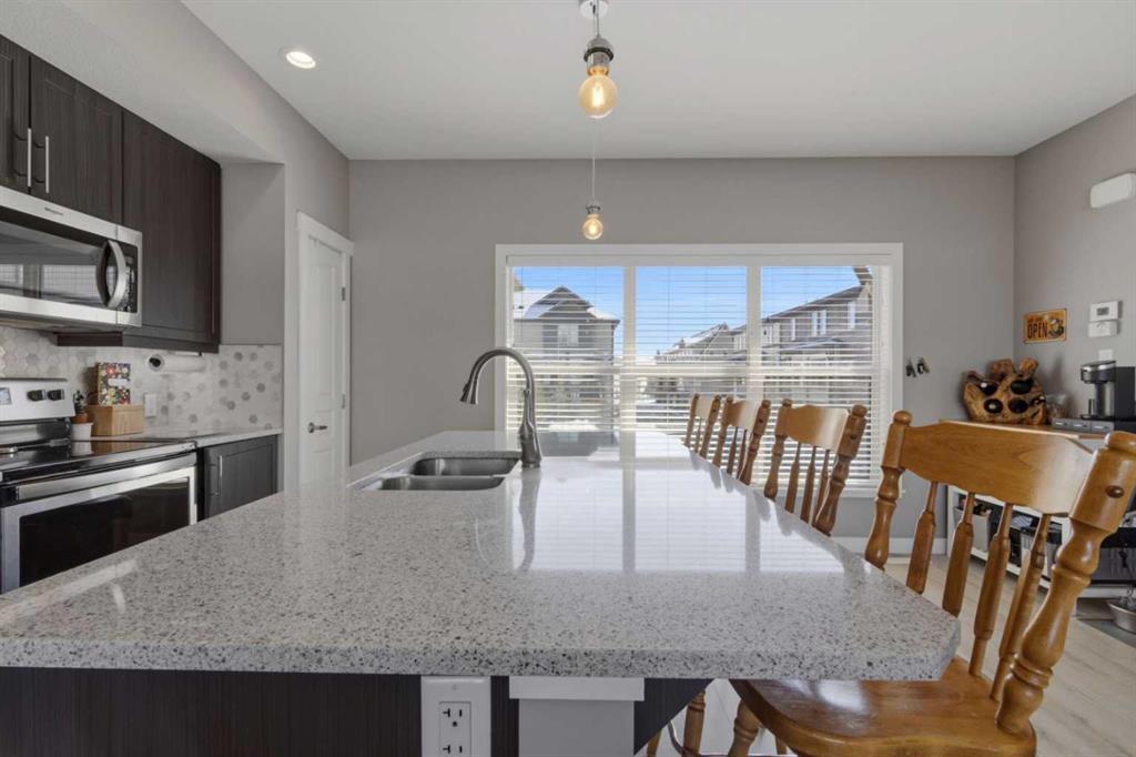 Click brochure link for more details. Unobstructed Mountain Views in a Prime Location! Backing onto expansive, undeveloped fields with nothing between you and the Rocky Mountains; this townhome in the sought-after community of Heartland offers a front-row seat to nature that most buyers only dream of. With parks, playgrounds, and pathways just minutes away, this home blends a welcoming community atmosphere with unparalleled natural beauty. As you enter the home and head up the stairs to the main living area, you’ll be greeted by an abundance of natural light in a bright and open-concept floor plan. It’s the perfect space for relaxing, entertaining, or just taking in the mountain views. Step from the living room onto your deck to enjoy morning coffee while watching local wildlife and the mountains. The kitchen features stainless steel appliances, granite countertops, and a large island with ample space for preparing meals and entertaining. A convenient half-bath is also located on this level, perfect for guests. Upstairs, discover two generous primary bedrooms, each boasting its own full 4-piece ensuite bathroom and walk-in closet. You will also find an open den perfect for a home office setup, and the ultimate everyday convenience of upper-level laundry so you never have to carry baskets up and down the stairs again. As an incredible bonus, this unit features an oversized double attached garage. The extra depth gives you room to comfortably park two full-size vehicles while still having abundant space for all your outdoor gear and mountain toys. Enjoy stress-free, low-maintenance living with stable condo fees that cover water, landscaping, snow removal, waste removal, and building insurance. This home truly checks all the boxes and with the Rockies just a 30-minute drive away, your weekend escapes to the mountains have never been easier!