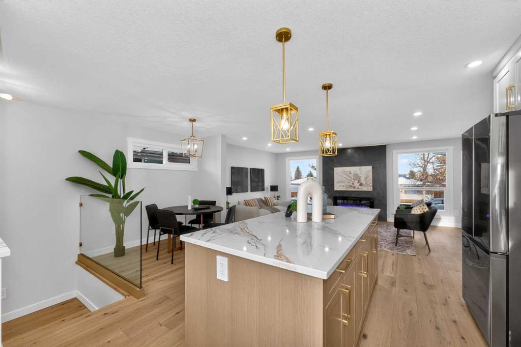Experience a complete, Professionally Curated Renovation that elevates this home to a new level of luxury. Meticulously reimagined from top to bottom with 4 bedrooms and 4 bathrooms, every element has been crafted to deliver a refined, One-of-a-kind living experience. Resulting in a truly an exceptional luxury residence unlike any other that stands apart in Canyon Meadows. From the street, you’ll be captivated by the all-new Hardie board siding, New Custom-designed window package, New roof, New concrete all around, and an Oversized Garage— Curb appeal that is second to none. Walk through the front door and into a bespoke home with 2328 sqft of living space. You will be met with Engineered Hardwood Flooring, Heated Bathroom Tiles, and Brushed Gold finishes throughout. The interior is flooded with natural light, creating a bright and elegant atmosphere. The Kitchen is a stunning showcase of custom design and craftsmanship— Featuring Schenk Painted Custom Cabinetry with an Oak finished extra large island with storage, Pull-out Waste & Recycling, Under cabinet lighting, Quartz countertops, Samsung appliance package, and an Oak trimmed built-in hood range. Every detail has been thoughtfully considered and beautifully executed. The Master bedroom suite offers an elegant experience, complete with a spa-like Custom Rainfall Shower finished with Custom Tile work and Heated floors, The large Walk-in closet is complete with built-ins. The Second bedroom has ample storage and lots of natural light. The Main Bathroom includes tasteful finishes and a polished look with Heated tile flooring. Luxury touches continue into the Completely reimagined Basement which features another Master bedroom complete with its own separate Full Bathroom and a Second spacious Bedroom. The Signature Wet bar is complete with Cabinet lighting, wine racks, and glass built in shelves. The beautiful laundry room is finished with Quartz countertops and a sink for added convenience. The basement also features Massive windows, storage room, and a huge Main full Bathroom offering plenty of room for everyday comfort. Behind the new drywall, the home was re-engineered from the studs and up for modern luxury with new electrical and plumbing throughout and complete with all city permits. Also featuring a high-efficiency Rheem furnace and Rheem tankless hot water on demand, and air conditioning. If you’re looking for a Home that truly sets itself apart — Distinguished by Unmatched Design, Integrity, and Finish. — This Is Truly The One!
