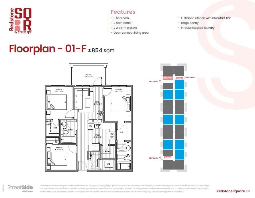 Welcome to modern, low-maintenance living in the vibrant community of Redstone — one of northeast Calgary’s fastest-growing neighborhoods, known for its accessibility, everyday convenience, and strong long-term value potential. This contemporary apartment condominium development by StreetSide Developments is thoughtfully designed for first-time buyers, professionals, downsizers, and investors seeking stylish comfort, functional layouts, and peace of mind ownership. Homes are made for everyday living, featuring open-concept designs, large windows for natural light, and private outdoor spaces. Interiors are finished with durable luxury vinyl plank flooring in main living areas, warm carpet with thick underlay in bedrooms, knockdown ceilings, and a professionally curated contemporary lighting package. Kitchens showcase modern slab-style cabinetry with 39” uppers, soft-close drawers, polished white quartz countertops, tiled backsplash, stainless steel appliances, and polished chrome fixtures with pull-down sprayers. Bathrooms continue the elevated feel with matching cabinetry, quartz counters, chrome fixtures, high-efficiency toilets, and thoughtful layouts designed for comfort and style. Built with long-term livability in mind, each home includes energy-efficient systems, digital thermostats, rough-in air conditioning, USB-C outlets in kitchen and primary bedroom, smoke and carbon monoxide detectors, and in-suite laundry. Gypcrete floor construction helps minimize sound transfer between units, while durable exterior cladding provides both curb appeal and lasting performance. Parking options include underground or surface stalls depending on the unit. The Redstone community itself is designed around daily life and connection, offering wide streets, pathways, green spaces, and playgrounds that encourage outdoor living and neighborhood interaction. Shopping, dining, and essential services are close at hand, with major retail destinations just minutes away, and planned future schools, shops, and transit enhancements continuing to strengthen the area’s long-term appeal. 88 units range from 564sqft 1 bedroom / 1 bathroom with titled surface or underground parking, 2 bedroom /1 or 2 bathroom units, all the way up to 906sqft 3 bedroom / 2 bathroom units with titled surface or underground parking. This unit is a 3 Bedroom 2 Bathroom with Titled underground parking. Whether you’re entering the market, simplifying your lifestyle, or securing a smart investment, these homes offer exceptional value through modern construction, quality finishes, and a location positioned for continued growth and convenience. Please note that photos are renderings as unit is not yet built.