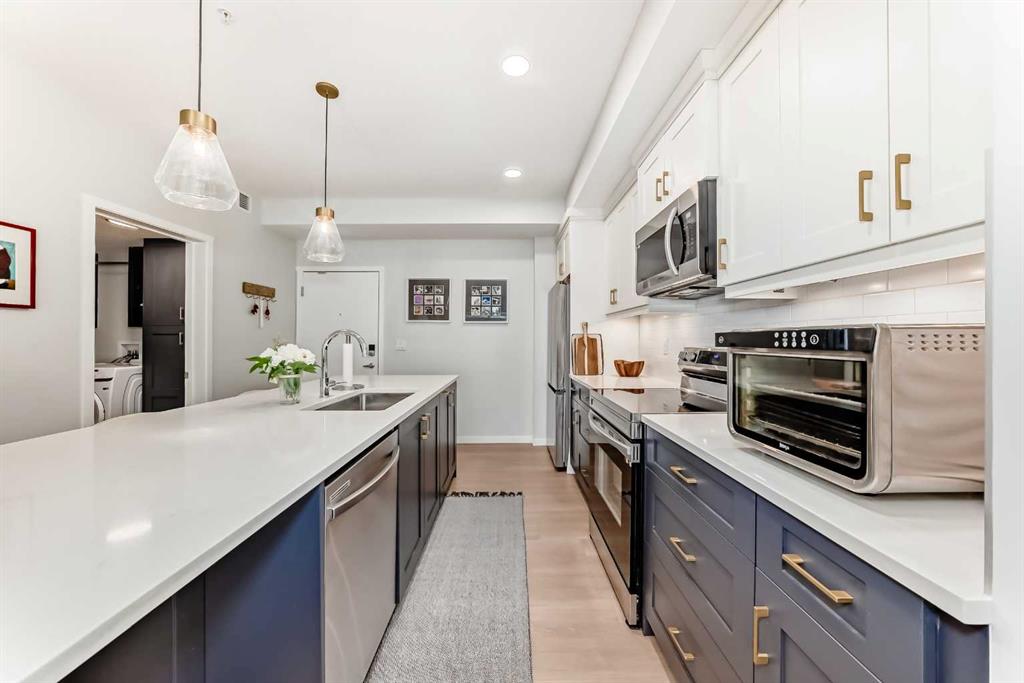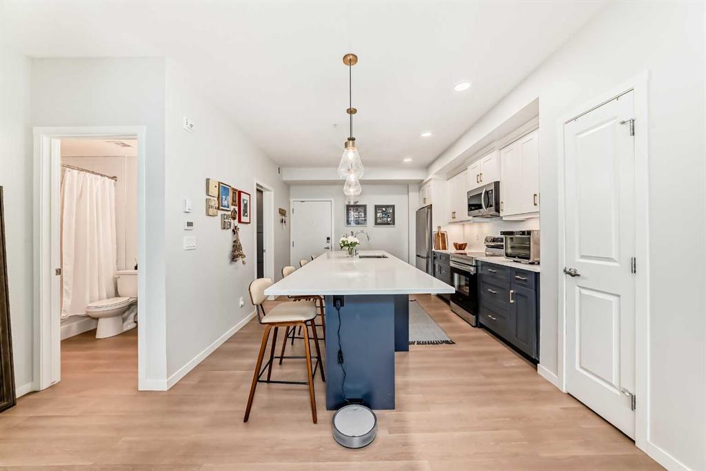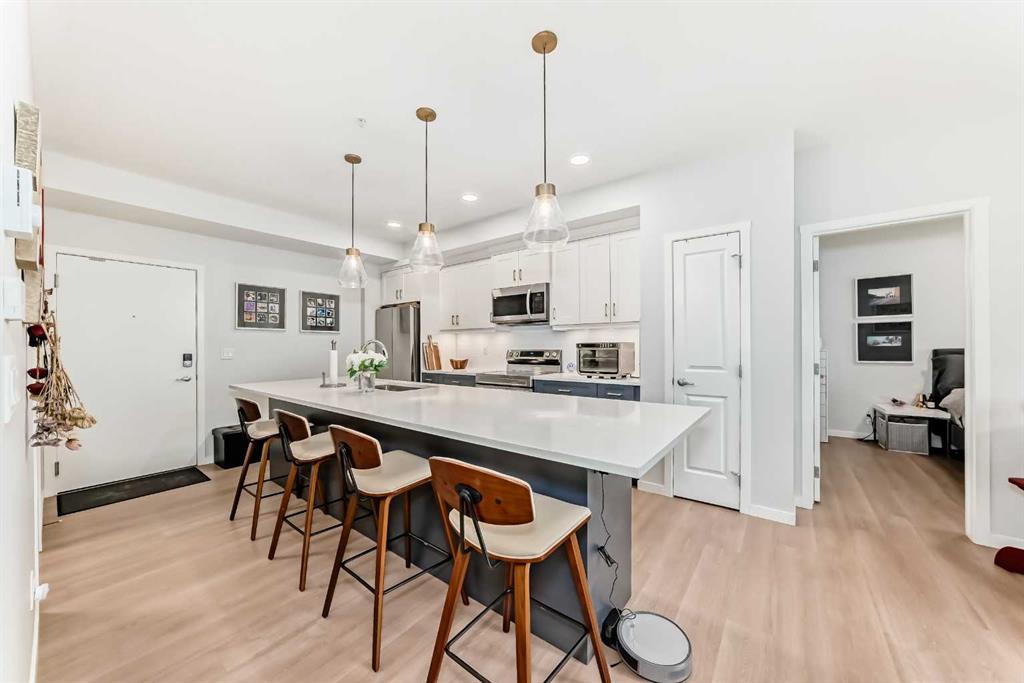 Welcome to this stunning, like-new 2-bedroom, 2-bathroom condo located in the highly sought-after community of Seton in Southeast Calgary. Only two years old, this beautifully upgraded west-facing unit offers modern comfort, exceptional functionality, and an unbeatable location surrounded by top amenities. Designed with both style and convenience in mind, the home features thoughtful upgrades throughout, including enhanced sound-dampening chips in the ceiling for added peace and privacy. The kitchen has been improved with a pot-and-pan drawer and additional cabinetry with double doors beneath the counter, providing valuable extra storage. The laundry area has been tastefully revised with custom built-in cabinetry, creating an organized and efficient space. The spacious primary suite includes added built-ins in the walk-in closet and the ensuite offers even more storage, while the upgraded lighting throughout the unit adds a bright, contemporary feel. Enjoy year-round comfort with air conditioning and the warm afternoon sun from your west-facing exposure. Seton is one of Calgary’s most vibrant and growing communities, offering unmatched convenience with the South Health Campus, the world-class YMCA, shopping, restaurants, and public transit all just minutes away. Plus, a fantastic recreational facility located right across the street makes this an ideal home for an active lifestyle. This home shows exceptionally well and is truly move-in ready — an incredible opportunity to own a beautifully finished condo in one of Calgary’s best urban hubs. Don’t miss out!