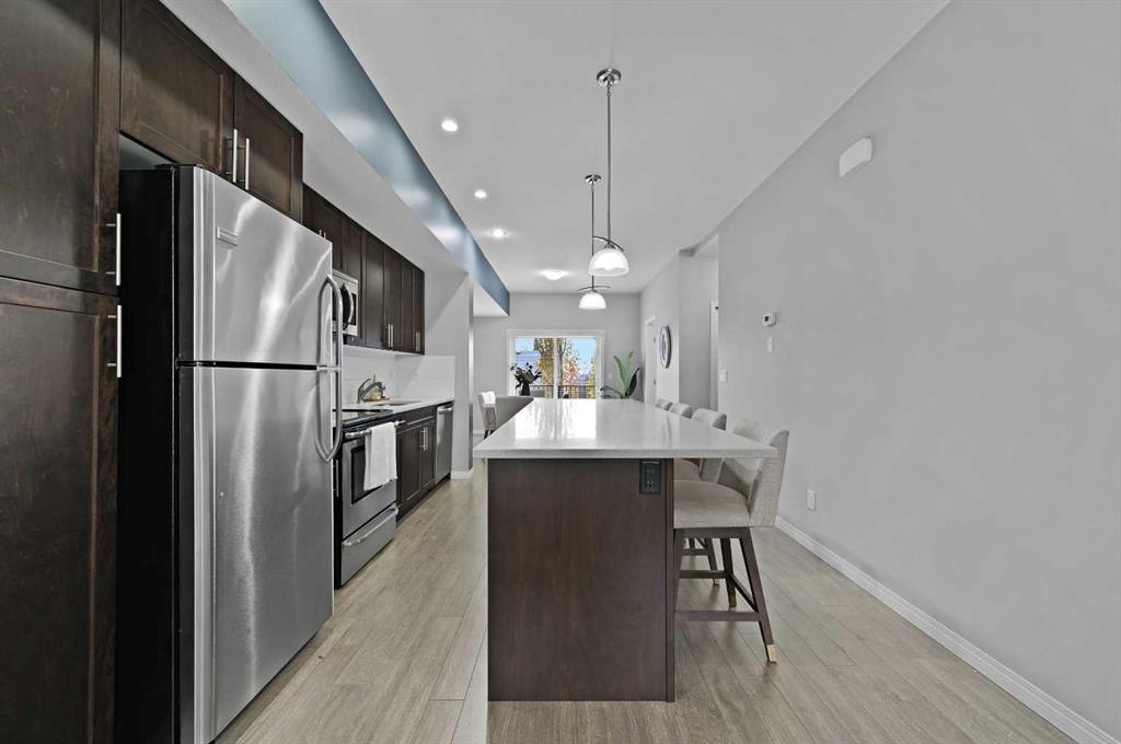 **COME JOIN US AT OUR OPEN HOUSE THIS SUNDAY JANUARY 11TH FROM 12-3PM**Welcome to the Best Value Williamstown Has to Offer! This immaculate and beautifully maintained townhome showcases an attached tandem two-car garage and an inviting open-concept layout filled with natural light. Start your mornings with coffee on the east-facing balcony and enjoy the perfect blend of comfort and style throughout. The modern kitchen features an extra-long island, quartz countertops, and stainless steel appliances—ideal for entertaining family and friends. The bright living room offers an elegant electric fireplace, adding both warmth and sophistication, while a convenient half bath completes the main floor. Upstairs, you’ll find brand new carpet, two generous bedrooms, and a convenient laundry area with a stackable washer and dryer. The spacious primary suite includes a walk-in closet and a luxurious ensuite with dual sinks. Located just minutes from shopping, restaurants, and Heron’s Crossing School, and close to Woodside Golf Course with easy access to Highway 2—this home truly has it all. Call your favourite realtor to book a showing today!