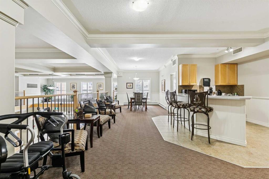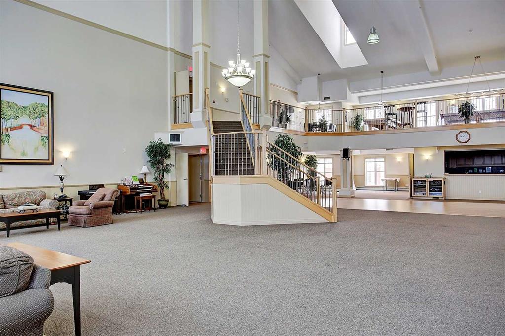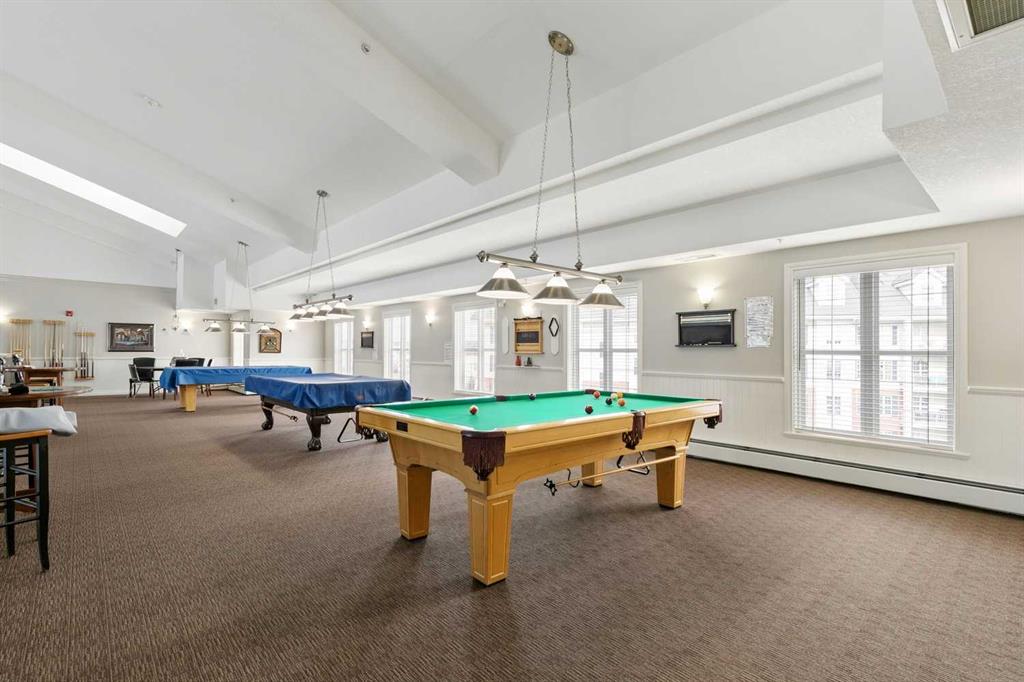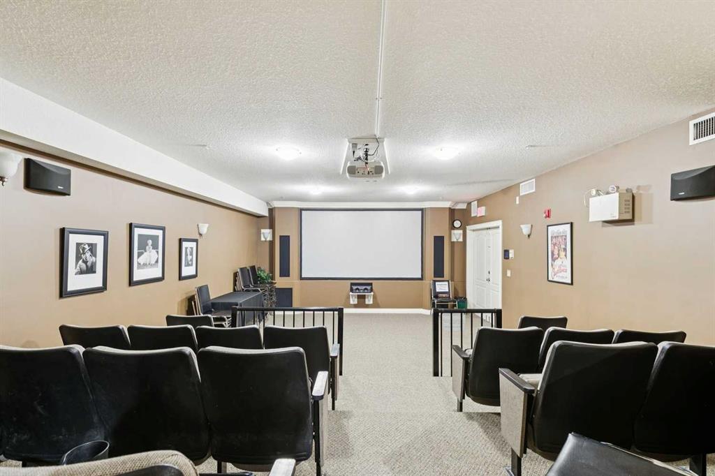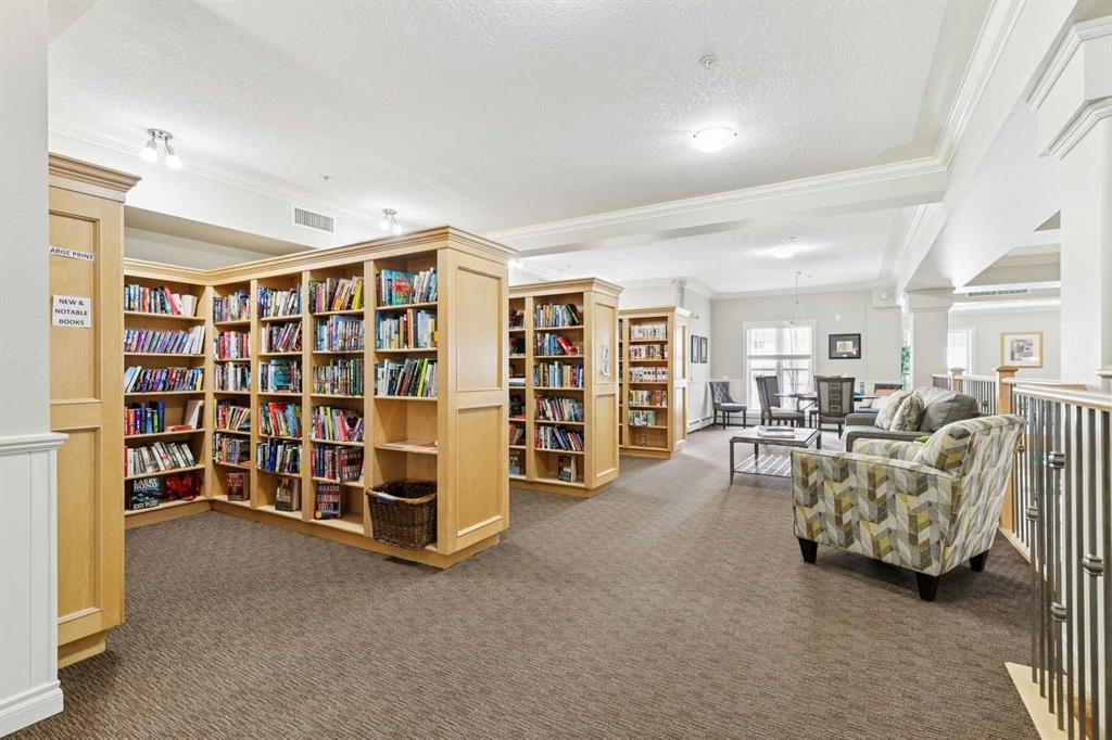 Resort-style amenities include an indoor swimming pool, hot tubs, fully equipped fitness room, theatre, billiards/games room open to a dance floor and party space, library, car wash bay, and workshop area in the heated parkade. Beautiful walking paths surround the pond to the south with sitting areas throughout the grounds.