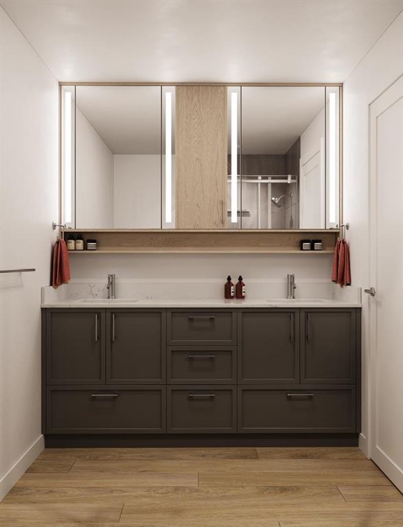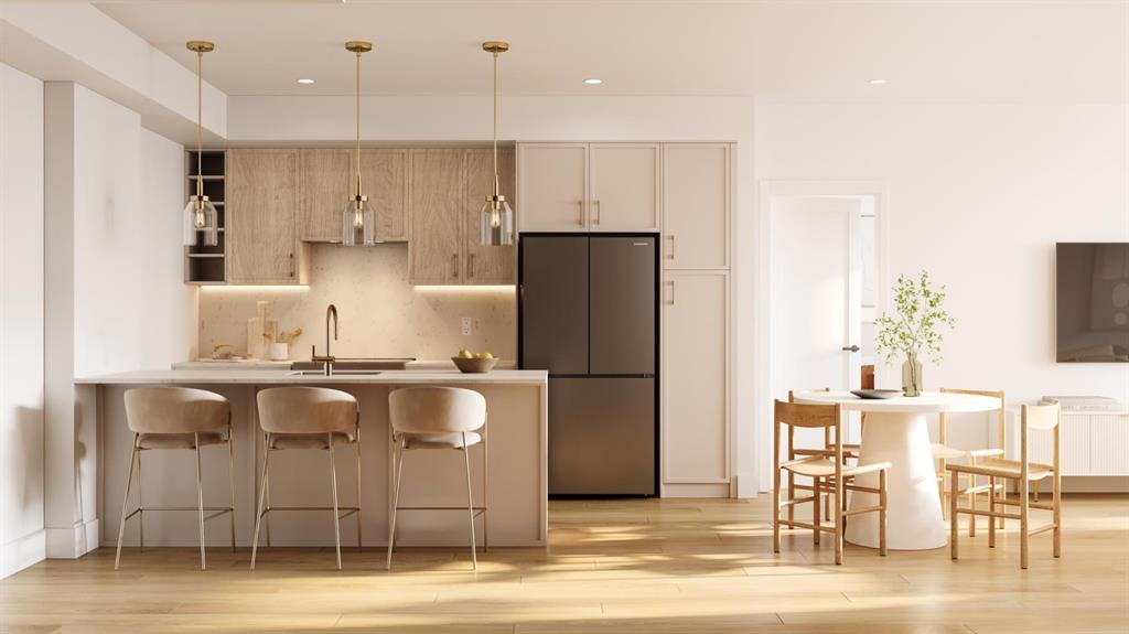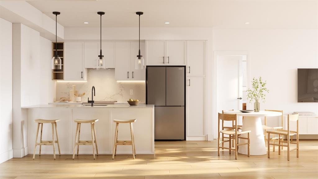 Welcome to Aspen Village by Vesta Properties! This is modern urban living in a thoughtfully designed 2-bedroom residence offering exceptional functionality, contemporary finishes, and a vibrant lifestyle setting. Featuring an open-concept layout, this home combines comfort and style with a spacious living area and designer kitchen ideal for both everyday living and entertaining. The sleek kitchen showcases quartz countertops, full-height cabinetry, under-mount sinks, and a large central island with pendant lighting. Energy-efficient stainless-steel appliances and a rare oversized in-suite laundry and storage room provide exceptional practicality and modern convenience. Two well-proportioned bedrooms offer flexibility for guests, a home office, or family living, while the elegant bathroom features clean modern detailing, quartz surfaces, and timeless fixtures. Durable luxury vinyl plank flooring flows throughout, complemented by curated interior palettes and contemporary ceiling finishes. Enjoy outdoor relaxation on your private balcony. Built with quality construction standards including triple-pane windows, engineered floor systems, and enhanced soundproofing, this home offers comfort, quiet, and energy efficiency. Residents will have the opportunity to join the members-only Aspen Club, a private amenity hub featuring collaborative workspaces, lounge areas, a state-of-the-art fitness centre and spin studio, yoga and games rooms, and beautifully designed rooftop gathering spaces. Aspen Village will also feature an Urban Village with over 60,000 sq. ft. of planned retail and services, offering pedestrian-friendly streets lined with boutique shopping, cafés, dining, wellness studios, daycare, medical services, and everyday conveniences—creating a vibrant and connected community atmosphere. Ideally positioned close to transit, parks, shopping, and key lifestyle amenities, this residence presents an exceptional opportunity for first-time buyers, downsizers, or investors seeking long-term value in one of Calgary’s most exciting emerging communities. Anticipated possession is scheduled for 2027.