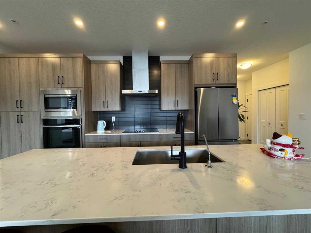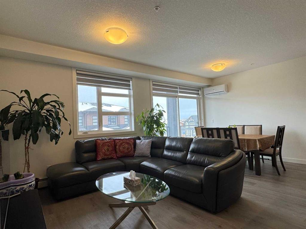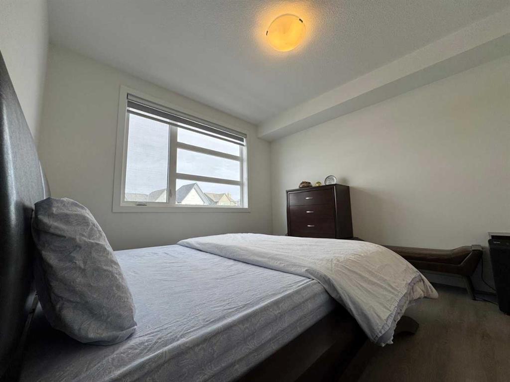 Bright and Spacious with Functional layout! Experience the comforts of modern living with this stunning 2-bedroom, 2-bathroom corner unit, loaded with upgrades, well located in Logel Homes’ Livingston Views – Livingston’s vibrant, growing community. This home offers easy access to airport, downtown, shopping, dining, and major highways including Stoney Trail & Deerfoot Trail. Enjoy the upgraded Executive kitchen with open design and upgraded with a premium stainless-steel appliance package; built-in wall oven and microwave cabinet tower, quartz counters, oversize center island with large undermount sink, overlooking the huge living room and dining room with patio doors to oversize balcony (20’5” x 6’2”) where you can enjoy your BBQ and decorate with your favorite patio furniture. The Spacious Master bedroom includes a large ensuite bath: with double sinks with large quartz counter, toilet with separate door and a walk in closet with door. Spacious 2nd bedroom: – with windows on both sides which is an added feature of this corner unit. 2nd bathroom upgrade includes a walk in shower with glass doors, quartz counters. Other features of this beautiful unit: – 9-Ft. Ceilings, a breathe easy with Logel Homes’ exclusive fresh air intake system, in unit Air Conditioning unit, spacious entry and a large laundry room with ample storage space. This unit also comes with a titled heated underground parking and an assigned storage unit.