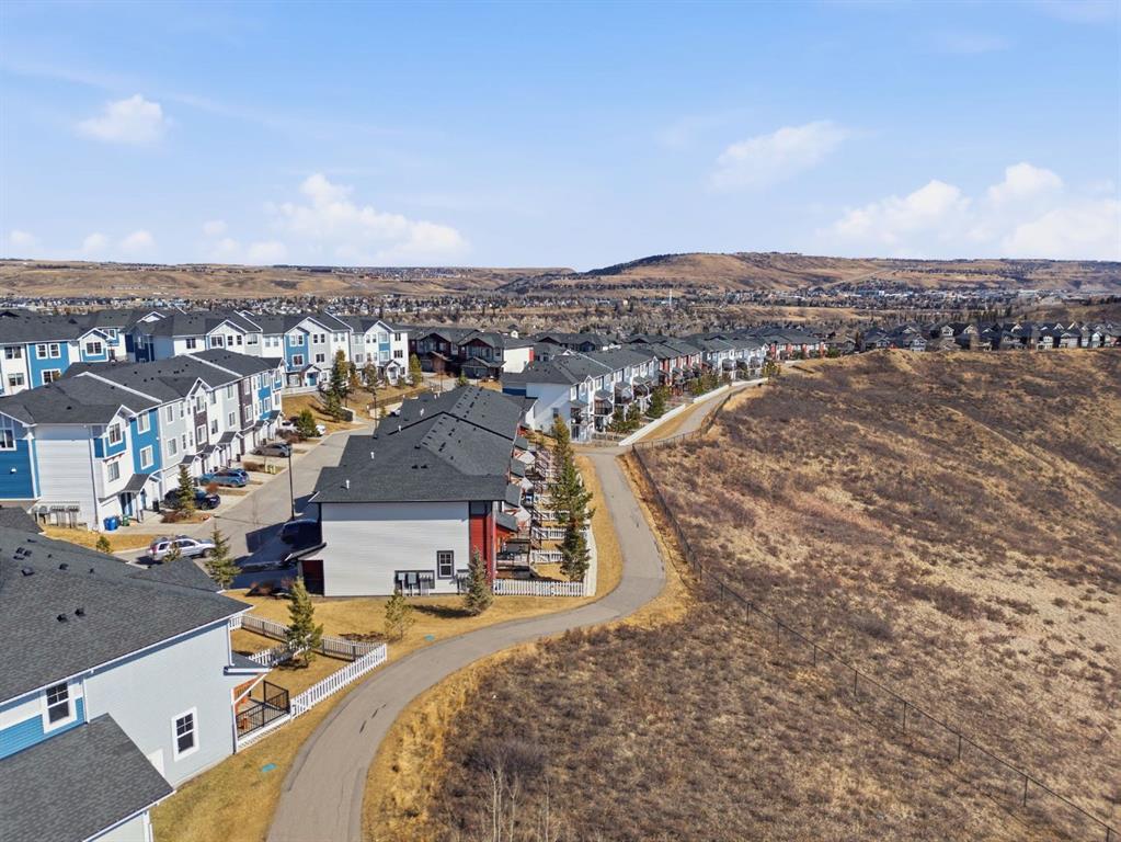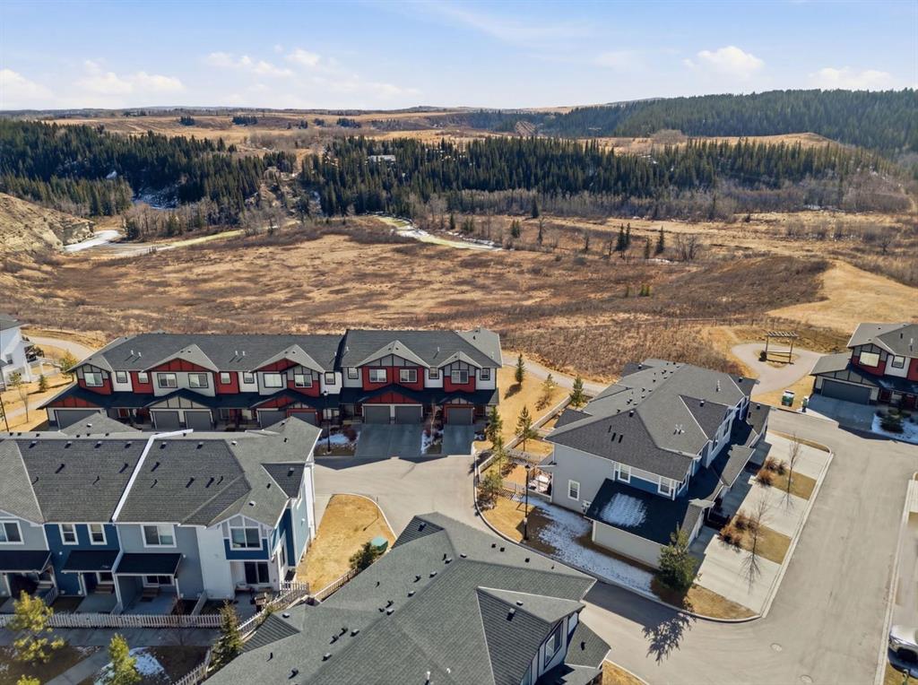 **OPEN HOUSE SATURDAY, MARCH 28th 1:00-3:00pm** Welcome to one of Cochrane’s most coveted townhome locations—where uninterrupted views of Jumping Pound Nature Reserve and Jumping Pound Creek. Backing onto open landscape, this home offers a rare sense of privacy, peace, and connection to the outdoors that sets it apart from the rest. From the moment you walk in, your eye is drawn straight through the home to the expansive views beyond—filling the space with natural light and an immediate sense of calm. Thoughtfully designed and beautifully maintained this modern 3-bedroom home blends clean lines with warm, inviting finishes. At the heart of the home, the bright kitchen is both stylish and functional, featuring white cabinetry, quartz countertops, a contemporary backsplash – perfect for everything from quiet mornings to entertaining guests. The open-concept layout is enhanced by 9’ ceilings and vinyl flooring, and newer tile creating a seamless and elevated feel throughout. Additional convenient features such as a blackout blind in the master bedroom, Ecosmart water softener have been added to the home. Upstairs, you’ll find three bedrooms, including a serene primary retreat with an upgraded shower and walk in closet. The basement awaits your finishing touches to add additional living space and a bathroom. The attached garage will keep your vehicle dry and out of the elements or provides a perfect storage space for your hobbies and toys. Step outside to your private back deck, where a gas line is ready for summer BBQs and evenings spent soaking in the peaceful surroundings. Immaculately maintained and finished and effortlessly connected to nature, all while being close to everything Cochrane has to offer. A rare opportunity in an unbeatable location—this is the one you’ve been waiting for.