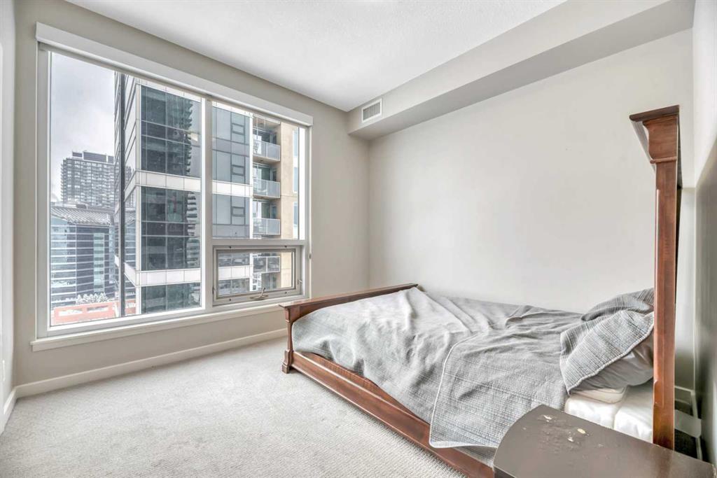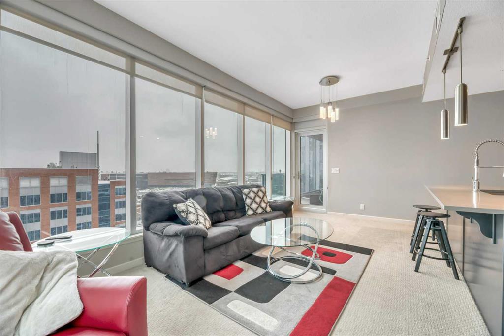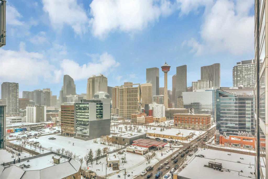 WALK SCORE. 96% Walkers Paradise. 82% Excellent Transit. 93% Bikers Paradise. Separate Secure Bike Room for Storage and Maintenance. MOVE IN NOW! Bring Your Best Friend. PET Friendly. UPGRADED 2- bedroom/2-bathroom Unit. NE corner unit in Alura Building. Main Entrance with Canada Post Mail and Parcel Pick Up on Site. Underground Parking. Floor to ceiling windows allow for lots of natural light and breathtaking downtown views. Private PATIO. Gourmet Kitchen features Upgraded ceiling height cabinetry, stone backsplash, stainless steel appliances & quartz counter tops. 2 Spacious bedrooms with a Primary Bedroom walk-in closet. Closets are upgraded with closet organizers. Full size upgraded washer & dryer, air-conditioning, fitness facility, concierge/security & owners lounge. Conveniently located steps from the NEW Stampede LRT train station, the Saddle Dome, Trans Alta Building. Downtown, restaurants & shops. Shows 10+. Furniture can stay!