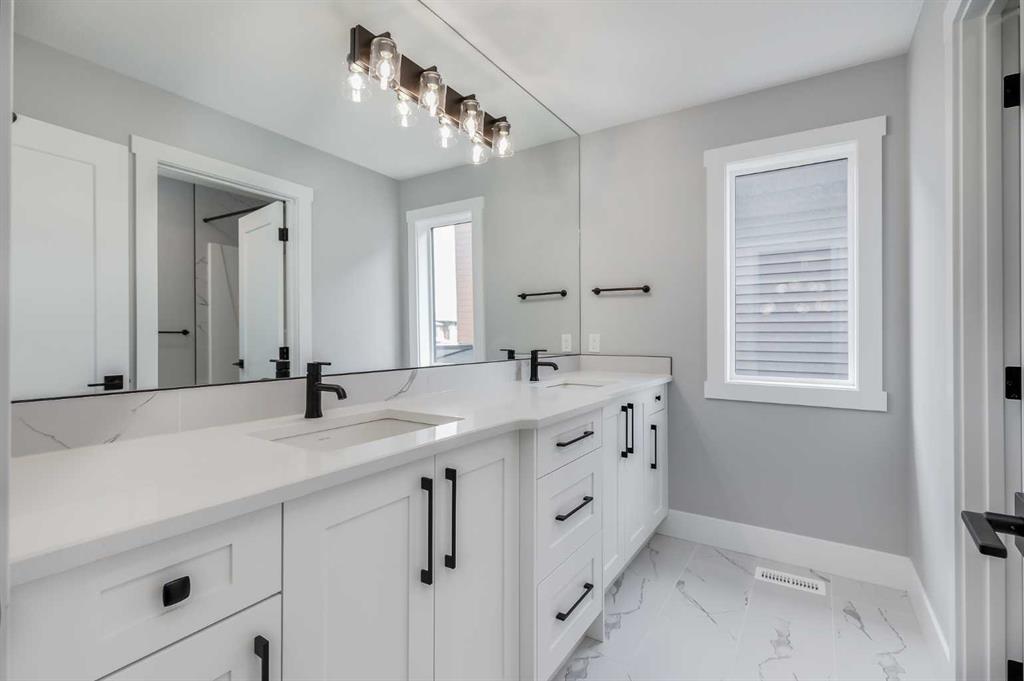 ** LET’S WORK A DEAL ON THIS GORGEOUS HOME ** Welcome to this BRAND NEW and GORGEOUS Custom Built Luxury Home proudly constructed by Harder Homes in the Amazing Community of Coopers Crossing in Airdrie. This Home features 2560 sqft, 4 BEDROOMS UP, a TRIPLE CAR GARAGE, is located ACROSS FROM GREENSPACE and a Park, and is Ready for a Quick Possession. When you arrive you are greeted by an Oversized Foyer and you will immediately notice the Luxury Vinyl Plank Flooring, Impressive Over Height Doors, and 9′ Ceilings that sprawl into the Open Concept Main Floor. The Living Room has Great Windows, a Gas Fireplace and opens to the Spectacular Kitchen. The Dream Kitchen Features Quartz Countertops, Gas Range with Chimney Hoodfan, a Fantastic Refrigerator with Full Sized Freezer, an Abundance of Cabinetry for lots of storage, Pot and Pan Drawers, a Huge Island, plus a Butlers Pantry with extra Storage and Built in Desk. The Dining area hosts an Oversized Table and opens to the Large South facing Deck that includes a Gas Line for BBQ. The Main level also has a great Office with a View of the Greenspace that is located off the side of the Foyer for extra Privacy. The Upper Level Features a Large Bonus Room and 4 Bedrooms. The Primary Bedroom has a Large Walk-in Closet and a Beautiful 5 pc Ensuite with Dual Vanity Sinks, Shower Stall and Soaker Tub. 3 Large Bedrooms with Walk-in Closets, 5 pc Bathroom with Dual Vanity Sinks, and the Large Laundry Room complete the Upper Level. The Lower Level is ready for your development and has plumbing for a future Wet Bar, and rough in for Bathroom. This Home also has a Large Mudroom leading to the Triple Car Garage for all your Toys. This Home is located close to Shopping, Restaurants, Schools, and all the great Pathways of Coopers Crossing.