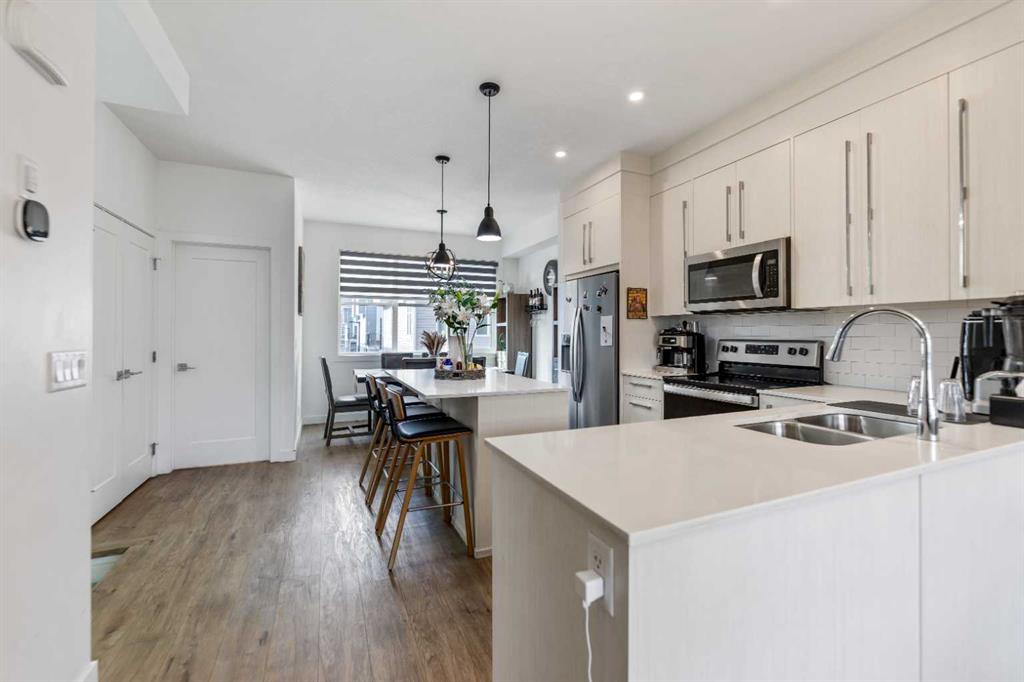Upstairs, 3 generously sized bedrooms & 2 full bathrooms, including a primary bedroom with a walk-in closet and a private 4-piece ensuite bath. For added convenience, the laundry is thoughtfully located on the same level as the bedrooms. Outdoor living is highlighted by an impressive, large private balcony—perfect for hosting guests or relaxing long summer evenings & sunny winter days. This home includes an attached 2-car garage and is ideally located minutes from the Calgary International Airport, schools, ponds, and the amenities of the Cornerstone shopping complex and major trails of the city. Ideally located close to shopping areas & plazas, ponds, schools, playgrounds, banks, Recreational Sports Complex & popular restaurants. Minutes away from Calgary international Airport. This property offers outstanding convenience for everyday living. An ideal opportunity for first-time home buyers with young kids or elderly individuals enjoying their golden years of life & investors seeking a well-kept home in a good location. Book your viewing today! Come on in and experience yourself, “WARM WELCOME”!!!!