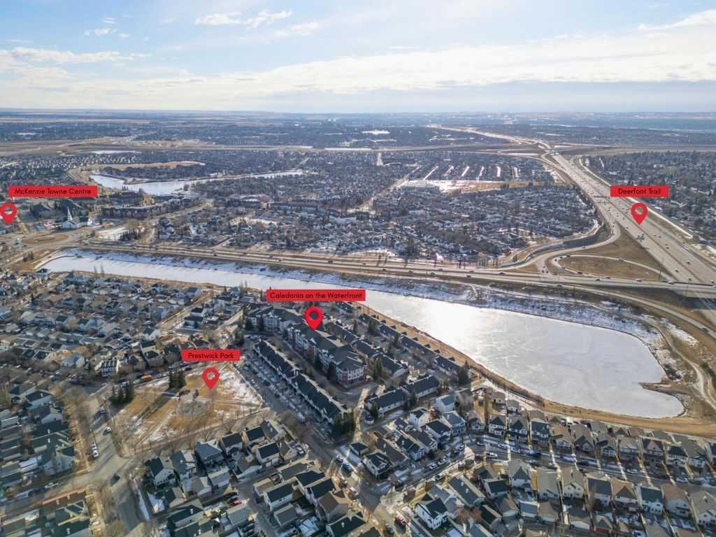 Why rent when you can own this convenient GROUND-FLOOR UNIT w/1 underground parking stall in the heart of McKenzie Towne? Perfect for first-time buyers, investors, or downsizers, this 755 SQUARE FOOT, 2-BED, 2-FULL-BATH unit is move-in ready for comfortable, easy living. Upon entry, a spacious foyer, set apart from the living area, offers a welcoming space to drop groceries, greet guests, sit and remove your shoes, which opens into a bright, open floor plan with large south-facing windows filled with plenty of sun, complemented by honeycomb shades for privacy. The living, kitchen, and dining areas flow seamlessly w/laminate hardwood flooring, creating a functional layout for every day and when entertaining, and from the kitchen, granite countertops and ample cabinetry frame the space and lead to a sun-facing 125 sq ft concrete patio for outdoor use. Ideally positioned, book-end bedrooms create a private retreat for the primary bedroom with its 4-piece large ensuite and double bi-fold closet doors, while the carpeted second bedroom sits on the opposite end of the unit, great for guests or a home office, and features a 3-piece semi-ensuite. Added highlights include in-suite laundry room w/coat storage, option to put a locker next to the stall for storage, visitor parking, and car wash bay. Ground-floor living offers direct lobby and garbage access (no waiting for elevators) for shared amenities of foyer, sitting areas, library and kitchen. Set on a cul-de-sac, Caledonia on the Waterfront is a well-cared-for, pet-friendly building with an active HOA offering events, programs, and daycare. Tucked across from the park with the pond and walking paths just steps away, this home offers an unbeatable location of lifestyle and convenience: close proximity to Deerfoot for a simple 15 min drive to downtown, along with a short walk to McKenzie Towne Square for grocers, shops, and dining. Quick possession is available. All that’s missing is you! Contact your realtor today!