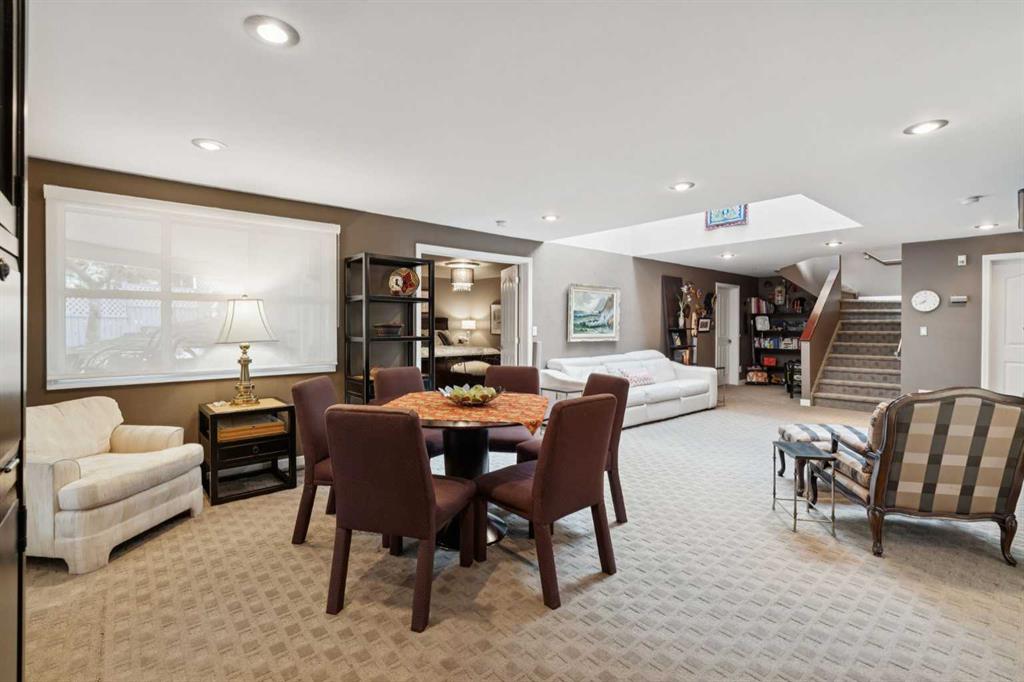 Tucked away at the end of a quiet cul-de-sac in prestigious Pump Hill, this rare, oversized bungalow offers an extraordinary combination of scale, character, and timeless quality. Spanning an impressive 3,178 SF above grade with an additional 2,446 SF in the fully developed walkout basement, 5 bedrooms and 4.5 bathrooms (3 ensuites), this is a home seldom found in today’s market. From the moment you enter, soaring and varied ceiling heights, exposed beams, and expansive principal rooms create a sense of warmth and architectural presence that sets this residence apart. Designed with exceptional flow for both daily living and entertaining, the home features a gracious dining room that transitions seamlessly into an inviting sitting room, opening onto the expansive west-facing rear deck also accessible from the primary suite for a private morning coffee or evening retreat. The kitchen is generously proportioned and built for gathering, showcasing abundant cabinetry, double ovens, quality stone surfaces, and a massive island with eating bar that connects naturally to the welcoming family room. Nearby, a large laundry area, walk-in pantry, and practical boot room leading to the triple attached garage with epoxy flooring enhance everyday convenience. The main level offers two spacious bedrooms, each with beautifully renovated ensuites, including a luxurious primary retreat complete with an oversized walk-in closet and spa-inspired ensuite. The walkout lower level continues to impress with two additional bedrooms, a dedicated office, a fitness room with rubber flooring, updated bathrooms and extensive storage space. You will love summers in the serene backyard with gorgeous, mature landscaping and expansive patio space. Lovingly maintained over the years with clear pride of ownership making this is a rare opportunity to secure a substantial bungalow in one of Calgary’s most established and sought-after communities.