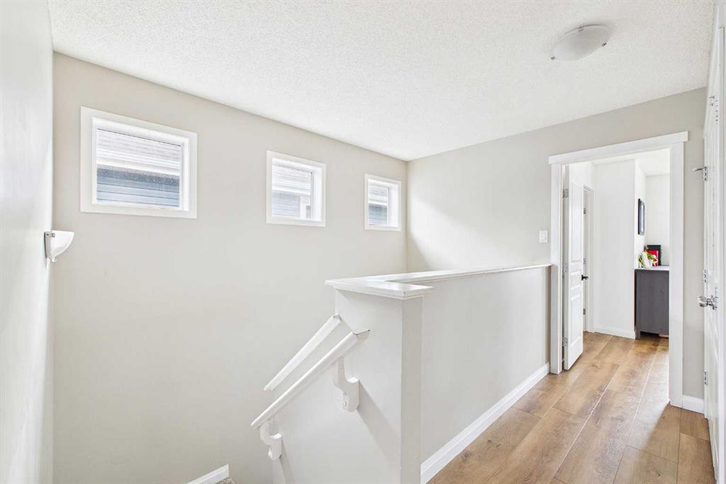 Welcome to 121 River Heights Crescent in the desirable community of River Heights in Cochrane. This charming home is perfect for a growing family, located within walking distance of Bow Valley High School, and just a short drive to the SLS Centre and nearby shopping amenities. The bright and open main floor features a spacious living room, generous dining area, and a well-designed kitchen complete with a large central island—ideal for both everyday living and entertaining. Ample storage is available with a sizeable pantry and multiple closets throughout. Upstairs, you’ll find a large primary bedroom with a large walk-in closet and full ensuite. Two additional bedrooms and a full secondary bathroom are located on the opposite side of the hallway, offering privacy and functionality for the whole family. For added convenience, the laundry room is also located on the second floor—no more carrying clothes up and down the stairs. The mostly finished basement expands your living space with a large recreation room and versatile flex area. An additional storage room and a roughed-in bathroom space provide excellent potential for future development. Step outside to enjoy the large patio and good-sized yard—perfect for relaxing or hosting gatherings. The double detached garage includes a bonus mezzanine storage area above, along with extra space for an additional vehicle or RV beside the garage. Recent upgrades include luxury vinyl plank flooring and new baseboards throughout the second floor, new carpet on the stairs, a new dishwasher, and the addition of air conditioning. Don’t miss your opportunity to view this wonderful home as endless memories await its next family.