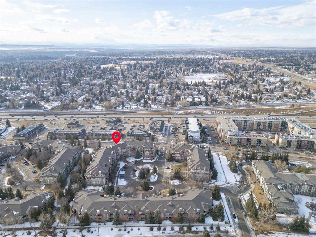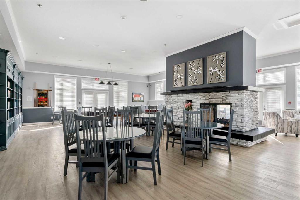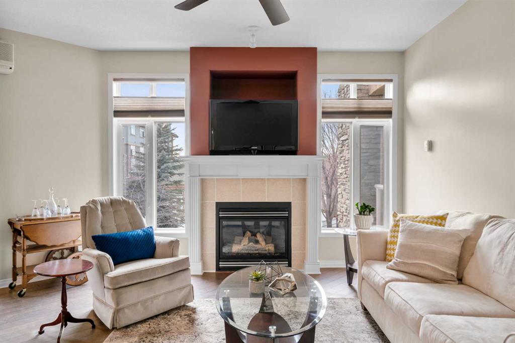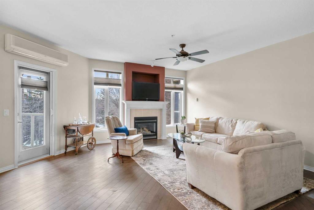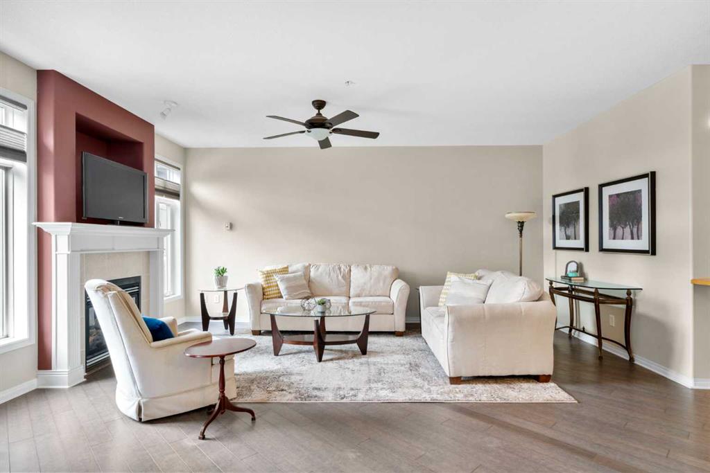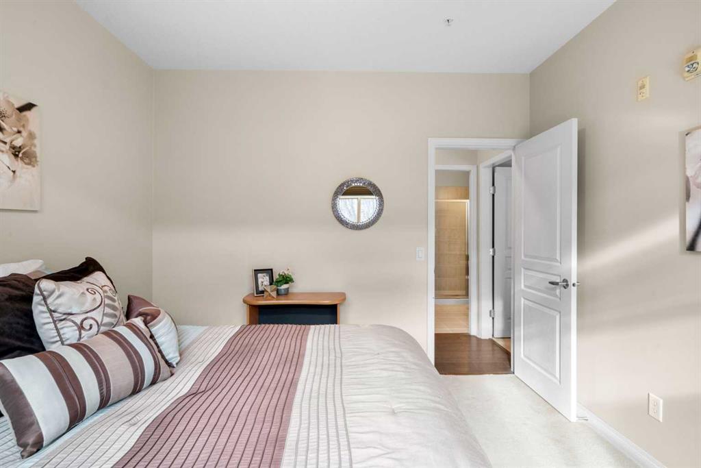 Located in Lake Bonavista Estates, this well-appointed 2-bedroom, 2-bathroom second-floor, south west facing unit offers a rare opportunity to enjoy quiet elegance, security & resort style living in one of Calgary’s most desirable gated communities – Bonavista Estates II. This bright, open-concept home offers 1,246 sq. ft. of thoughtfully designed living space with 9 foot ceilings, abundant natural light, and a layout that strikes the perfect balance of comfort, sophistication, & practicality. The airy living & dining areas feature a gas fireplace with tile surround & wood mantle, a wall of windows, an oversized private deck overlooking a quiet, beautifully landscaped courtyard with mature trees, peaceful greenspace plus sunny afternoon & sunset exposure. The spacious kitchen is ideal for entertaining & everyday living, showcasing maple cabinetry, tall cabinets, large pantry, a generous island and breakfast bar, drawer organizers, Bosch dishwasher, ample counter space, heated in-floor heating, tile in the entry & kitchen, hardwood in the living and dining rooms & carpet in the bedrooms, combining warmth, durability & style. The primary suite easily accommodates king sized furniture & includes two large double closets redesigned for exceptional storage, a relaxing 5 piece ensuite featuring double sinks, a soaker tub, separate shower & linen closet. The second bedroom is a perfect guest room or den, with an adjacent 3 piece bathroom. Highlights include laundry with full sized washer & dryer, extensive custom shelving and built-ins, central A/C, custom patio screen door, Hunter Douglas window coverings, gas BBQ hookup, a massive storage room #23 located in front of your titled heated underground parking stall #129, steps to the elevators plus plenty of surface guest parking. Bonavista Estates II is a secure, gated, pet-friendly (board approval), exceptionally well managed & financially sound complex, offering true lock-and-go, worry-free living with condo fees that include heat, water, trash, insurance, underground heated parking, landscaping, snow removal & unlimited access to premium amenities such as a resort style clubhouse with stone fireplace, fully equipped rentable kitchen, social lounge, games room with pool table, darts, & library, a fully equipped fitness center, 24 seat theatre room, two rentable guest suites, outdoor BBQ patio & gazebo, hobby room with billiards, car wash bay, air conditioning in the common areas, all conveniently located in Building 1000 & accessible by elevator & fob from this unit The location is truly unbeatable, with every amenity just minutes away. Walk across the street to Avenida Food Market, pharmacy, restaurants, Tim Hortons, Starbucks, Original Joe’s, Milestones, yoga studios, library, bus service right out front, easy access to the LRT, Southcentre Mall, Trico Centre & the natural beauty of Fish Creek Provincial Park for year-round recreation.