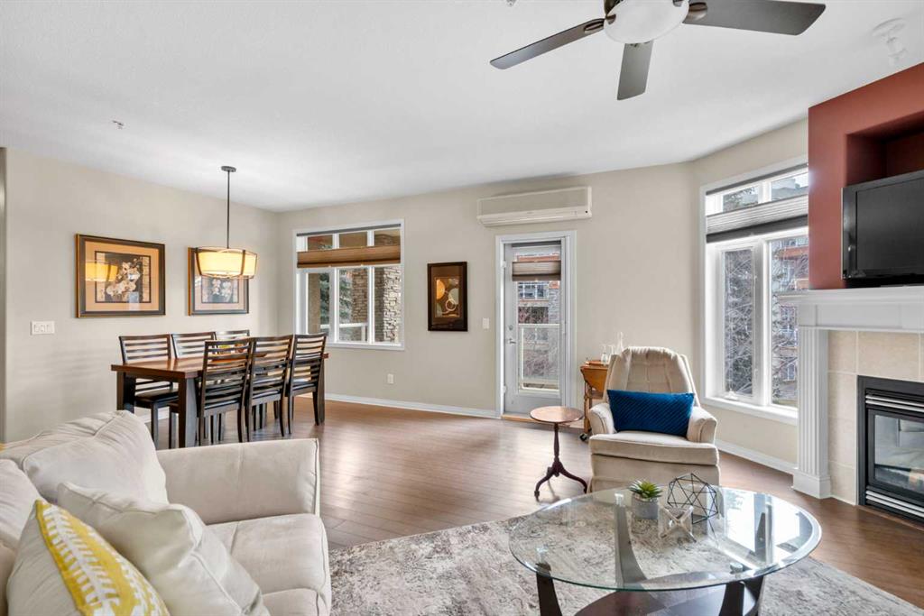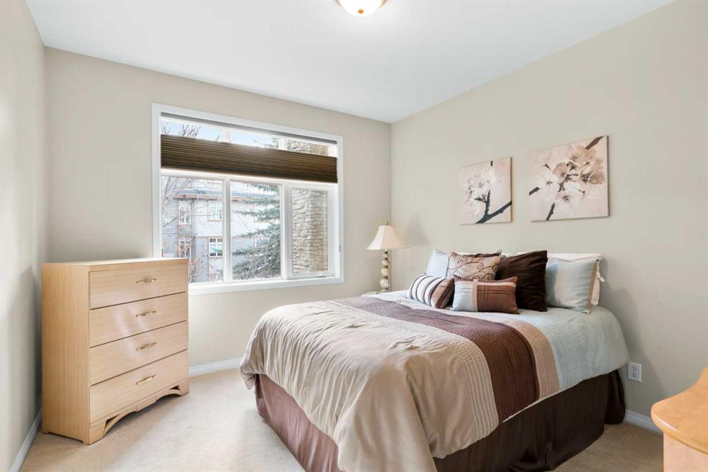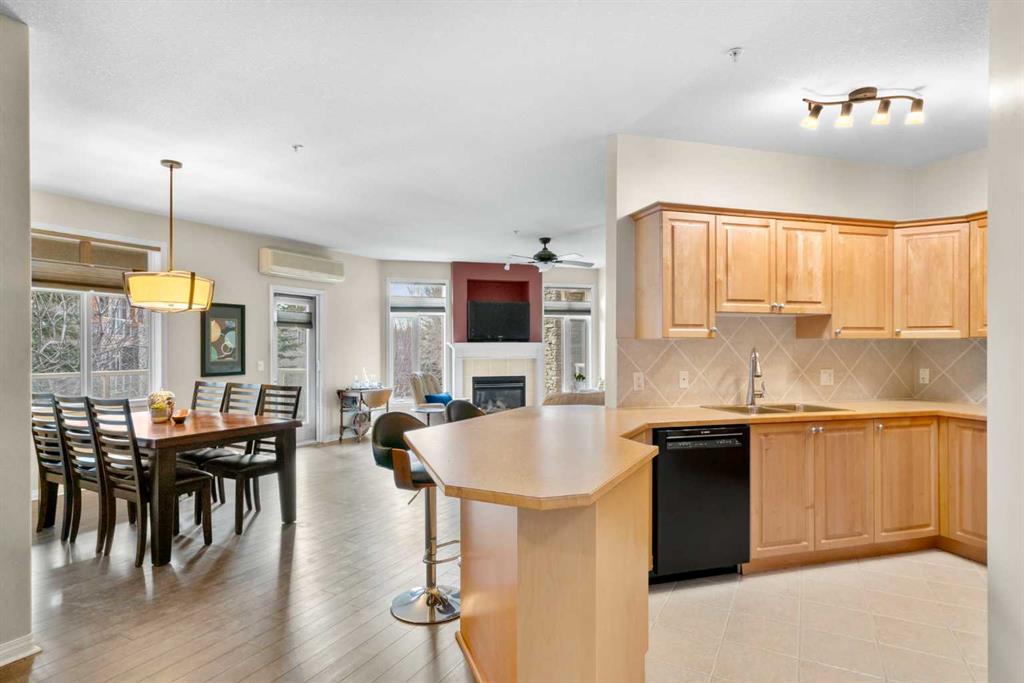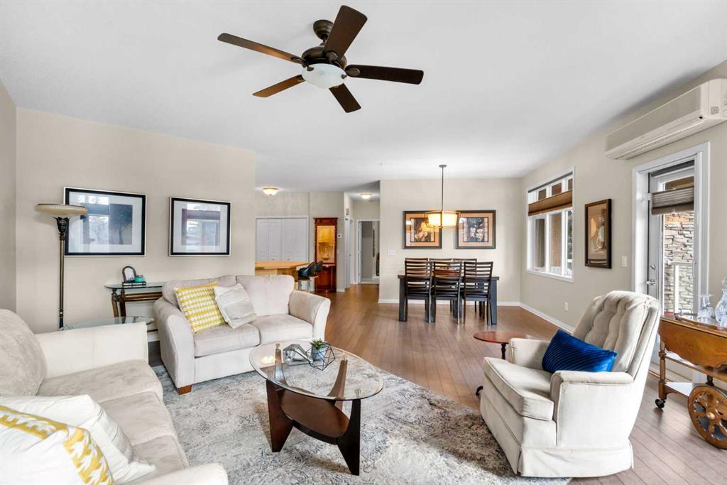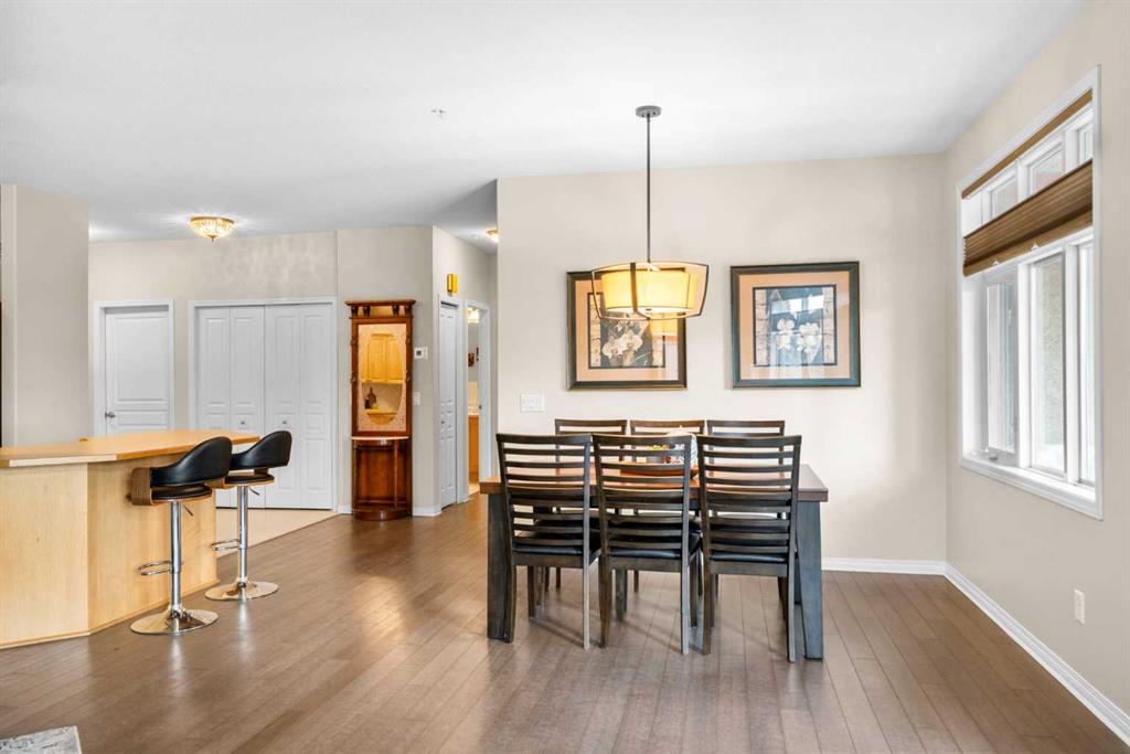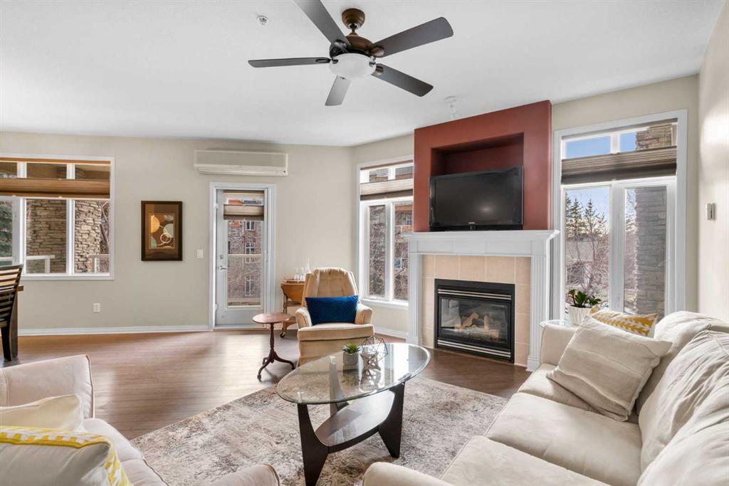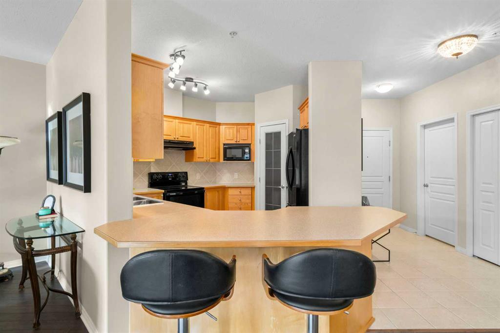 Located in Lake Bonavista Estates, this well-appointed 2-bedroom, 2-bathroom second-floor, south west facing unit offers a rare opportunity to enjoy quiet elegance, security & resort style living in one of Calgary’s most desirable gated communities – Bonavista Estates II. This bright, open-concept home offers 1,246 sq. ft. of thoughtfully designed living space with 9 foot ceilings, abundant natural light, and a layout that strikes the perfect balance of comfort, sophistication, & practicality. The airy living & dining areas feature a gas fireplace with tile surround & wood mantle, a wall of windows, an oversized private deck overlooking a quiet, beautifully landscaped courtyard with mature trees, peaceful greenspace plus sunny afternoon & sunset exposure. The spacious kitchen is ideal for entertaining & everyday living, showcasing maple cabinetry, tall cabinets, large pantry, a generous island and breakfast bar, drawer organizers, Bosch dishwasher, ample counter space, heated in-floor heating, tile in the entry & kitchen, hardwood in the living and dining rooms & carpet in the bedrooms, combining warmth, durability & style. The primary suite easily accommodates king sized furniture & includes two large double closets redesigned for exceptional storage, a relaxing 5 piece ensuite featuring double sinks, a soaker tub, separate shower & linen closet. The second bedroom is a perfect guest room or den, with an adjacent 3 piece bathroom. Highlights include laundry with full sized washer & dryer, extensive custom shelving and built-ins, central A/C, custom patio screen door, Hunter Douglas window coverings, gas BBQ hookup, a massive storage room #23 located in front of your titled heated underground parking stall #129, steps to the elevators plus plenty of surface guest parking. Bonavista Estates II is a secure, gated, pet-friendly (board approval), exceptionally well managed & financially sound complex, offering true lock-and-go, worry-free living with condo fees that include heat, water, trash, insurance, underground heated parking, landscaping, snow removal & unlimited access to premium amenities such as a resort style clubhouse with stone fireplace, fully equipped rentable kitchen, social lounge, games room with pool table, darts, & library, a fully equipped fitness center, 24 seat theatre room, two rentable guest suites, outdoor BBQ patio & gazebo, hobby room with billiards, car wash bay, air conditioning in the common areas, all conveniently located in Building 1000 & accessible by elevator & fob from this unit The location is truly unbeatable, with every amenity just minutes away. Walk across the street to Avenida Food Market, pharmacy, restaurants, Tim Hortons, Starbucks, Original Joe’s, Milestones, yoga studios, library, bus service right out front, easy access to the LRT, Southcentre Mall, Trico Centre & the natural beauty of Fish Creek Provincial Park for year-round recreation.