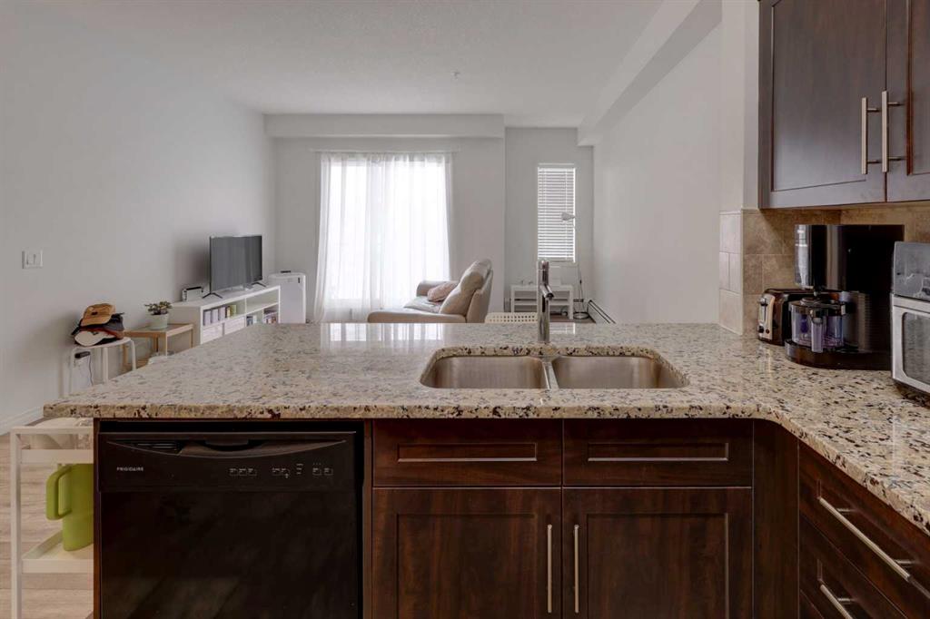 Affordable condo living with negotiable possession! Bright and open 2nd-floor 1 bedroom + den unit with heated titled underground parking that deserves your attention. This well-designed condo features 9 ft ceilings, a spacious living area, and a kitchen ample cupboard space with dark expresso cabinetry with granite countertops. The open living and dining area are spacious and opens onto a private patio, perfect for relaxing or summer BBQs. The den is a bonus and provides a great flex space for a home office or additional storage. Convenient features include in-suite laundry with added shelving for additional storage, and this unit has remarkable close proximity to the elevator. Transit is located right out front, and the condo is just a short walk to Beacon Hill Shopping Centre, Costco, GoodLife Fitness, restaurants, and everyday amenities. With new laminate flooring and a functional layout, this condo offers a great space for your friends and family. The unit offers excellent value and an affordable monthly ownership opportunity. Book your viewing today.