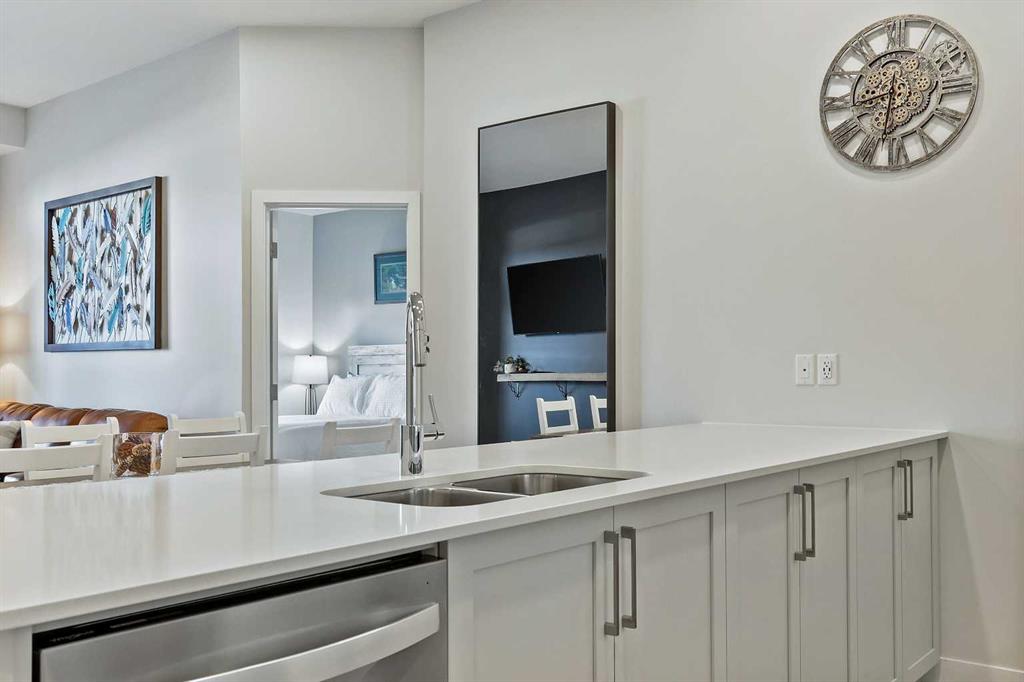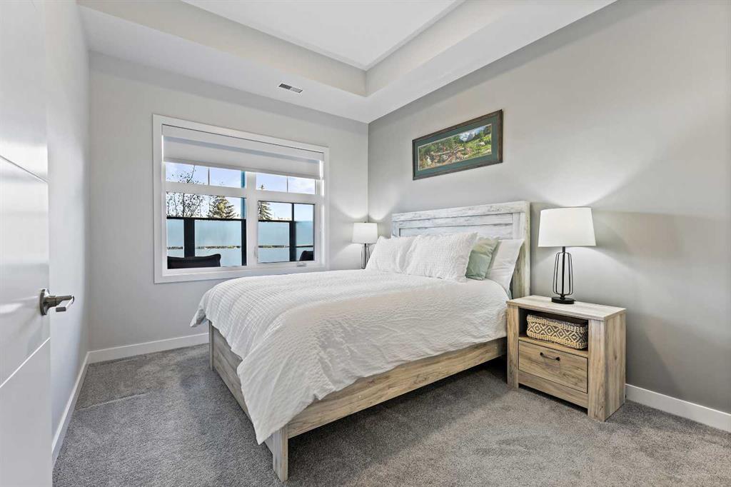** OPEN HOUSE SATURDAY 2-4** Prepare to be amazed by this beautiful main floor home at Les Jardins by Jayman BUILT! Step into this popular California split suite that will leave you in awe with is 10FT ceilings, expansive living spaces, large bedrooms and bathrooms plus a rare 33’4FT by 8’10FT patio – exclusive to only main floor homes! This outdoor space is perfect for any size dog, BBQ dinner parties or even relaxing on a hot summery day! Enjoy the luxury kitchen with QUARTZ counter tops, STAINLESS STEEL WHIRLPOOL APPLIANCES, a perfectly curated color palette that will make you feel right at home. As you enter the primary bedroom, you will be met with a large space with endless opportunity as well as a walk through closet, big enough for two, leading into the beautifully designed 3pc ensuite. Transitioning to the secondary bedroom, big enough to be a guest room or be used as an at home office and the main bath housing the relaxing tub / shower, you will notice the attention to details with design and execution in this home! This amazing unit includes the Washer and Dryer, Central Air Conditioning, high end fixtures and Smart Home Tech (Kasa light switches, Weiser Smart Lock, Ring Floodlight located above the exterior patio door and the Ecobee Smart Thermostat!!) Within the common areas of the building you will find countless amenities that will peak your interest in this fascinating community! With the State-Of-The Art FITNESS CENTRE , Bike Storage room, CCTV cameras, seating areas throughout, and last but not least, the 2 ACRE PARK inspired by the Gardens of France, you will step into this community and IMMEDITALY feel at home! Neighboring both Quarry park and Douglas Glen, there is an endless array of shopping, restaurants, schools, daycares as well as bikes paths and walking trails to Calgary’s very own Bow River and Fish Creek Provincial Park to help feed any outdoor cravings you may have. If there is anything out of reach from the community, fear not, you have access to both Deerfoot Trail and Glenmore trail within a 5 min drive – making your commute downtown only 20 minutes! If this sounds like your new dream life, schedule your viewing today!