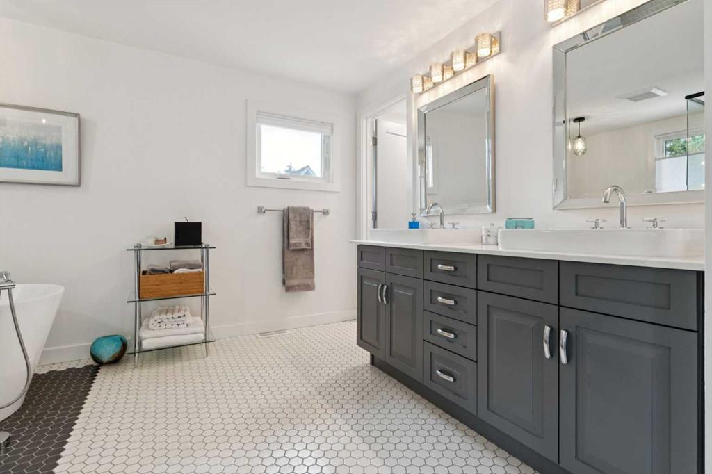 This professionally renovated and builder occupied home has been completely re-imagined. Taking a traditional Lake Bonavista family home with timeless character and blending it with modern luxury. The open-concept main floor showcases a chef’s dream kitchen with a 6-burner Wolf gas range, Sub-Zero fridge, Miele dishwasher, walk-in pantry, Legacy cabinetry, LED lighting, and a massive centre island & large windows overlooking the beautifully landscaped west-facing backyard. Off the kitchen there is also a home office with patio doors to the backyard. A sunken dining room with expansive windows highlights the green space across the street, while the spacious living room features the original stone wood-burning fireplace with patio doors that open to a covered outdoor retreat. Tucked behind a hidden wall, you’ll find a thoughtfully designed mudroom with custom storage and full walk-in closet and access to the garage. Wide-plank engineered hardwood flows seamlessly throughout the main floor.