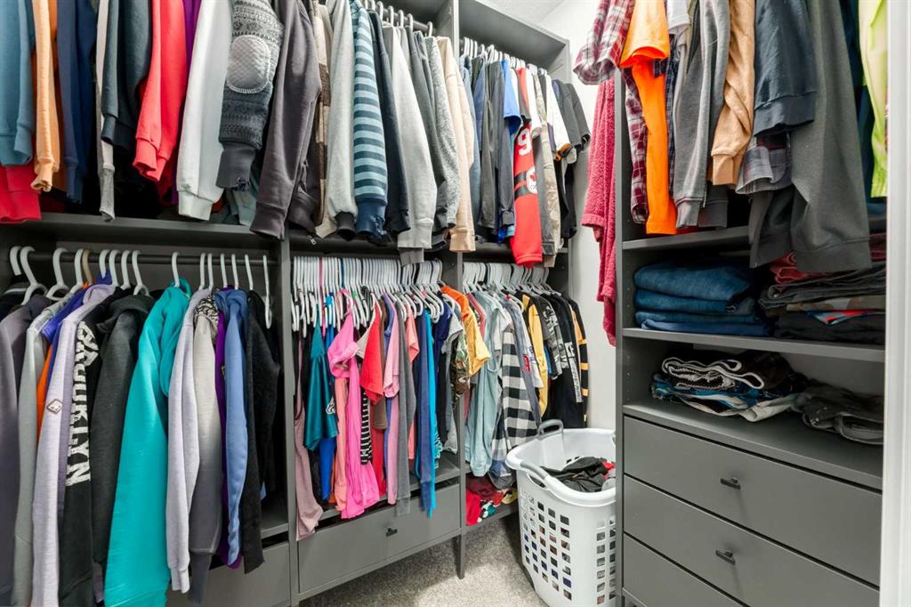 Upstairs, you’ll find 3 BEDROOMS, including a SPACIOUS PRIMARY RETREAT feat. a WALK-IN CLOSET w/SHELVING to keep your wardrobe organized + a PRIVATE 4 PC ENSUITE complete w/a SOAKER TUB — perfect for relaxing after a long day. The 2ND + 3RD BEDROOMS are GOOD-SIZED + share a 4 PC BATH, while UPPER-LEVEL LAUNDRY adds everyday convenience.