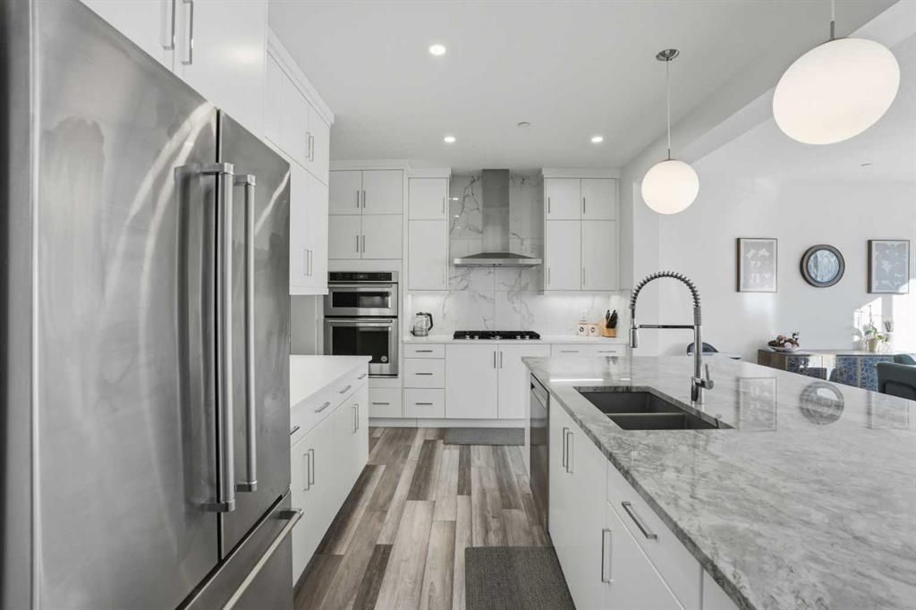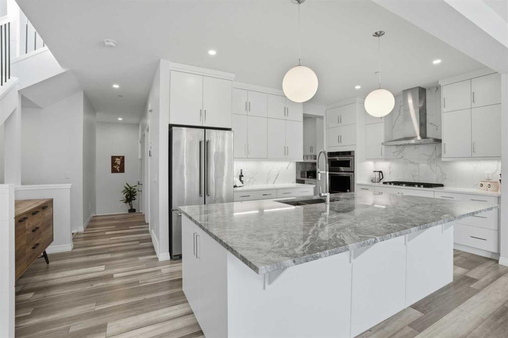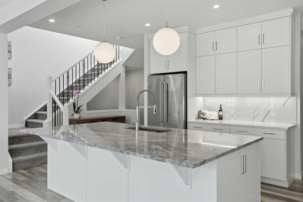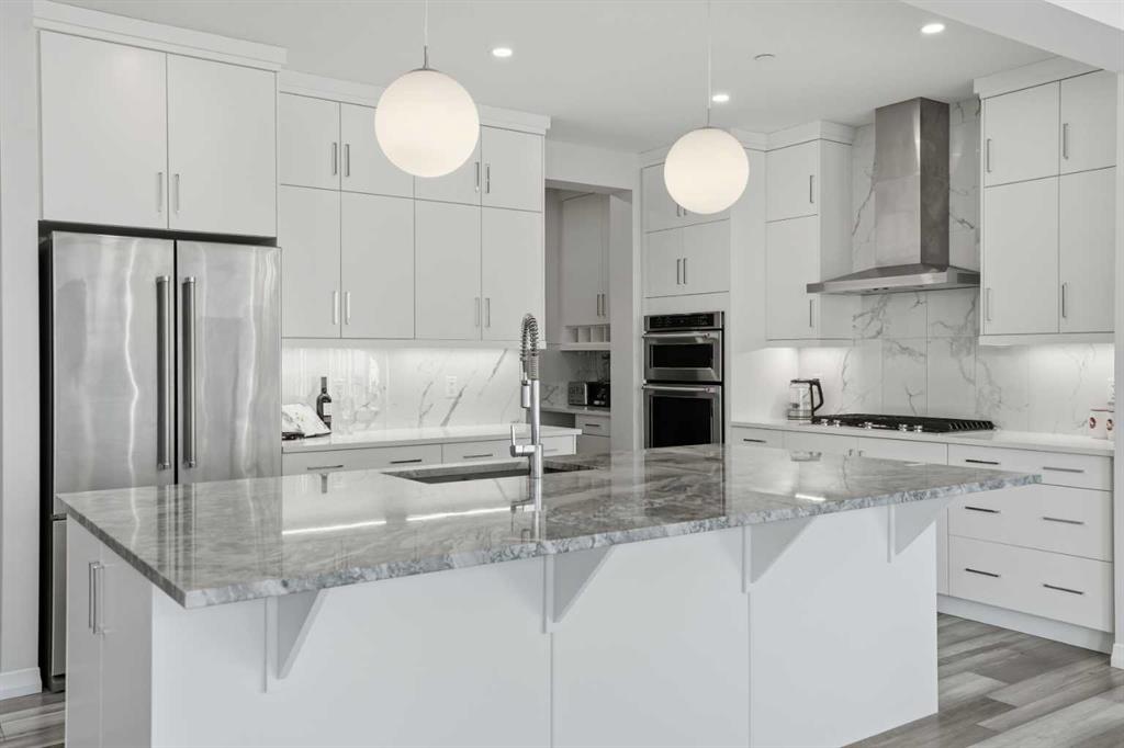Luxury Living | 3 Beds | 2.5 Baths | 2,619 SqFt | Gorgeous Modern Finishes | Expansive Living Space | Chef’s Kitchen | Sparkling Quartz Countertops | Gas Cooktop | Built-in Stainless Steel Appliances | Spacious Kitchen Island with Barstool Seating | Walk-through Pantry | Mud Room | Main Level Office | High Ceilings | Electric Fireplace | Central AC | Recessed Lighting | Large Windows | Incredible Natural Light | 3 Upper Level Bedrooms | Upper Level Family Room | Upper Level Laundry | Great Storage | Unfinished Basement with Future Potential | Fully Fenced Backyard | Rear Deck | Great Lawn | Front Double Attached Garage | Driveway. Welcome home to your stunning 2-storey family home boasting 2,619 SqFt throughout the main & upper levels with an additional 1,088 SqFt in the unfinished basement. This home is full of spectacular modern finishes that shine throughout. Open the front door to a foyer with great walk-in closet for a neat and organized space. Step up into the main level where you’ll find a home office and a welcoming open floor plan kitchen, dining and living area great for entertaining. The kitchen is outfitted with full height cabinets, a gas cooktop, stainless steel appliances, sparkling quartz countertops and a grand centre island with barstool seating. The kitchen has a walkthrough pantry that leads to the mud room connecting your interior garage to the rest of the home. The dining and living rooms are full of natural light as they are framed with sliding glass doors and large windows that overlook the backyard. The sliding glass doors off the dining room make an easy transition of indoor/outdoor living in the warm summer months! This leads to the deck and lawn waiting for your favourite outdoor furniture. The living room is modern and comfortable; a stunning floor to ceiling marbled tile accent wall frames an electric fireplace. The main level is complete with a 2pc powder room. Upstairs holds 3 grandiose bedrooms, 2 bathrooms, a family room and laundry room. The primary bedroom is a personal oasis with plush carpet flooring, a private 5pc ensuite bath and walk-in closet. The ensuite has a deep soaking tub, double vanities, a makeup vanity, walk-in shower and private washing closet. The walk-in closet connects to the laundry room making it extremely accessible to you. Located in the middle of the upper level is the family room; this comfortable space separates the primary bedroom from the 2 additional bedrooms. Bedrooms 2 & 3 are both a great size and share the 5pc bath which has a pocket door separating the double vanity area from the washing area making it functional for more than one person at a time. Downstairs, the basement is untouched meaning you can develop this space to fit your family’s needs! Add something custom to this home as you grow in the space. The double attached garage & driveway give you ample parking. Hurry and book a showing at this incredible home today!