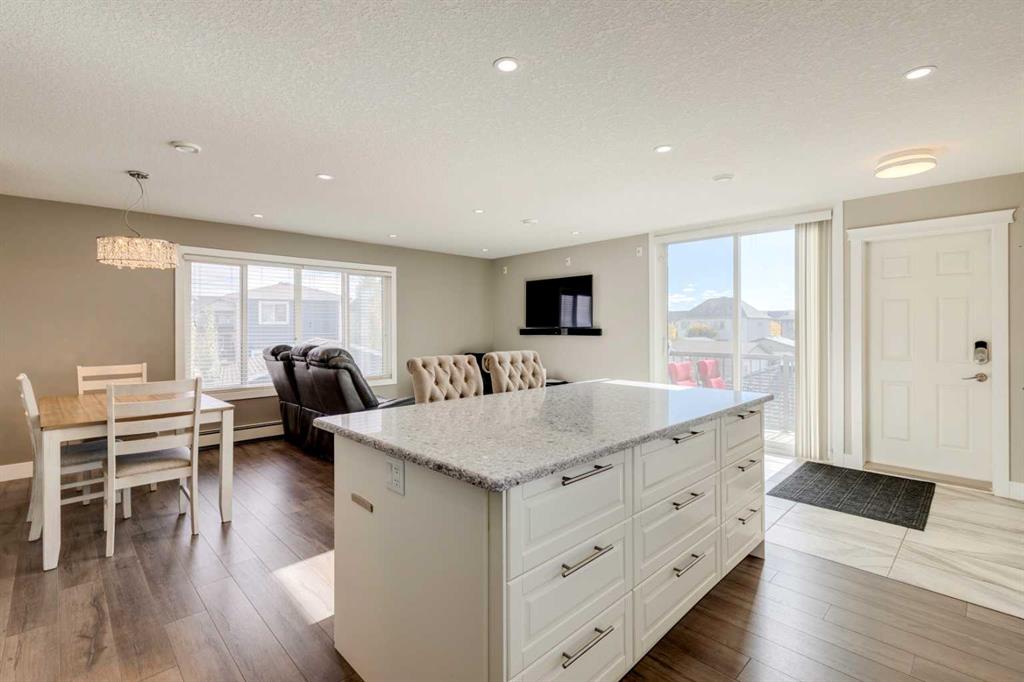 |Carriage Suite| RV Parking| Step into one of Mahogany’s most versatile and rare offerings—a beautifully designed 4 bedroom family home with a full carriage suite over the triple garage, perfect for extended family, guest accommodations, or even income potential. From the moment you arrive, the large front porch and grand staircase set an impressive tone. Inside, a defined foyer opens to a bright living room framed by three windows, filling the space with natural light. Just off the raised stair landing, a tucked-away den offers the perfect nook for a home office or creative studio. The open-concept dining area flows into a well-appointed kitchen featuring ample counter space, a central island with seating, and convenient access to a mudroom with tile floors, shelving, and a nearby half bath. Upstairs, the primary retreat is a standout, offering a 5-piece ensuite with double vanity, ceiling fan, and a generous walk-in closet. Two more bedrooms, a shared full bath, and a laundry room round out the upper level. Downstairs, the finished basement includes a fourth bedroom with a walk-in closet and full bath, additional laundry hookups, and a large family room ready for movie nights or entertaining. Above the triple garage, the 818.30sqft carriage suite impresses with a full kitchen, living area, private bedroom, and bathroom—ideal for those seeking privacy or flexibility in living arrangements. Outside, enjoy the expansive pie-shaped lot, complete with a fenced yard, RV parking pad with back lane access, and even a half bath in the garage—perfect after a day at the lake. The garage has separate dual parking and single parking, adding further convenience and privacy for carriage house users. Located just a block from the West Beach entrance, this home offers unbeatable access to one of Calgary’s most desirable lake communities. Mahogany features year-round lifestyle perks including two beaches, a 63-acre freshwater lake, scenic walking paths, and vibrant community spaces. It’s also just a short walk to Westman Village and Mahogany Plaza—home to a variety of shops, restaurants, services, and a lively social atmosphere. Everything you need is right here.