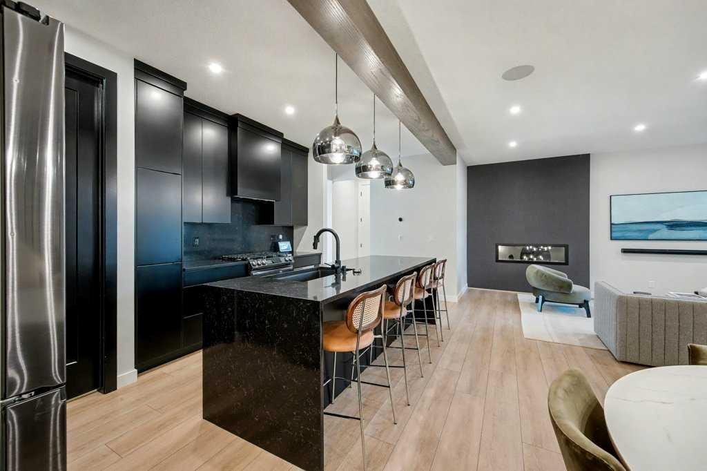 FROM THE MOMENT YOU ENTER YOU WILL FALL IN LOVE WITH THIS MOVE-IN-READY UPGRADED CARDEL BUILT HOME. From the Exquisite kitchen with black cabinets, high end appliances, and stunning lighting, flooring, tile and countertop selections, this distinctive home has been tastefully designed for luxurious living and homeowner delight. Numerous upgrades complete this home such as motorized blinds, 9 foot ceilings on the main and basement level, built in sound system with receiver and electronic upgrades built into a false wall in the great room area, mounted TV in the main floor living room is connected to the receiver and wired in for technical perfection (just play and enjoy!). Find your Retreat In the private yard which features turf grass, barbecue gas line, aggregate concrete patio for your outdoor grilling adventures and private parties. This home has functionality and design perfection with main floor home-office space, built-in fireplace in the living room, 4 bedrooms and 3 bathrooms (with 2 ensuite baths) on the upper level for true family convenience. This home has street parking in the front and access to the OVERSIZED UPGRADED DOUBLE ATTACHED GARAGE AT THE REAR OF THE HOME, nicely reflecting the NEO-TRADITIONAL DESIGN PRINCIPLES OF THE ALPINE PARK COMMUNITY. This home permeates natural light due to its northwest backyard and southeast front facing orientation. Built to outlast nature’s elements with hardyboard exterior, this home was constructed for lasting brilliance, and superb curb appeal. Check out the video tour, and buy this home and start enjoying luxurious living. Why wait to build when you have found the perfect place to call home.
