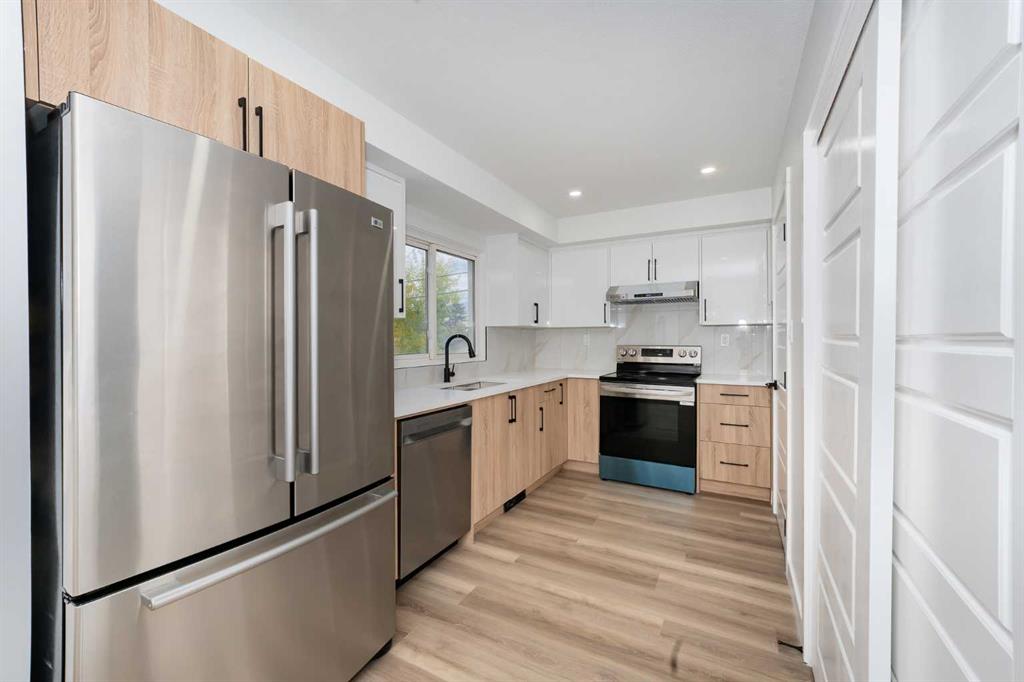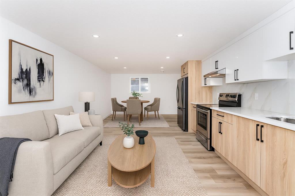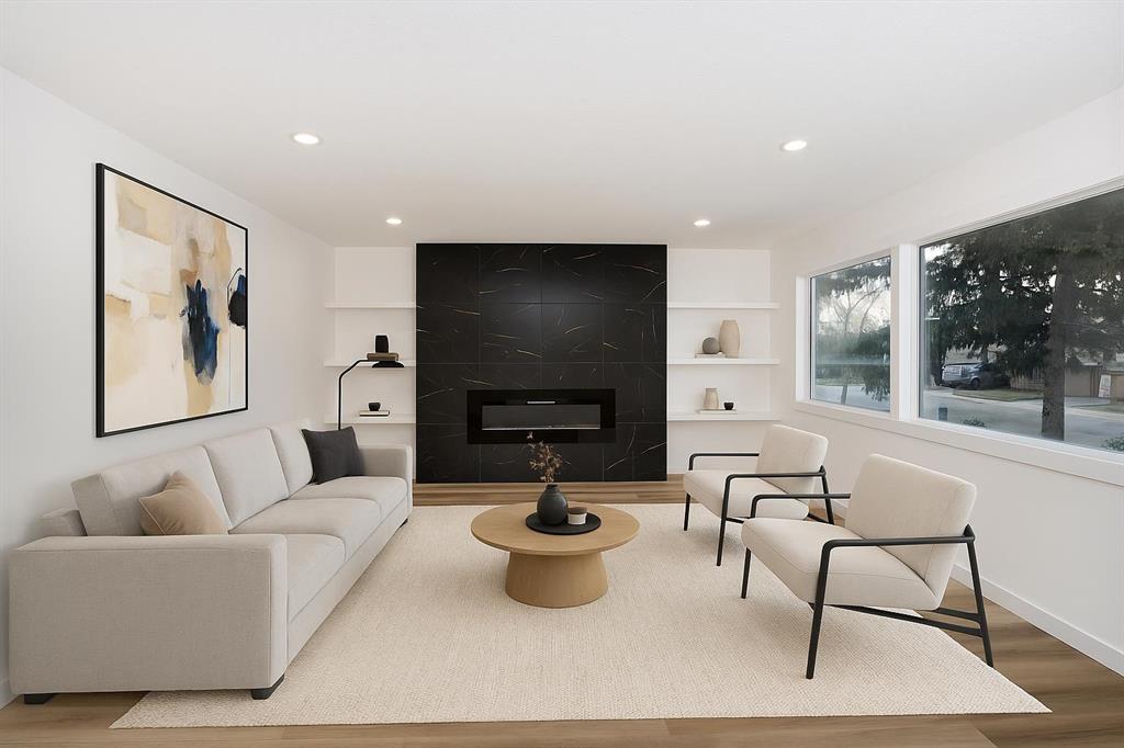 This beautifully renovated bungalow has been transformed from the studs up, offering a modern design and functional living spaces. The main floor features an open-concept layout filled with natural light, highlighted by a striking tiled feature wall with an electric fireplace. The brand-new kitchen boasts sleek cabinetry, quartz countertops, and premium stainless-steel appliances. Three spacious bedrooms and a stylish full bathroom complete the main level.