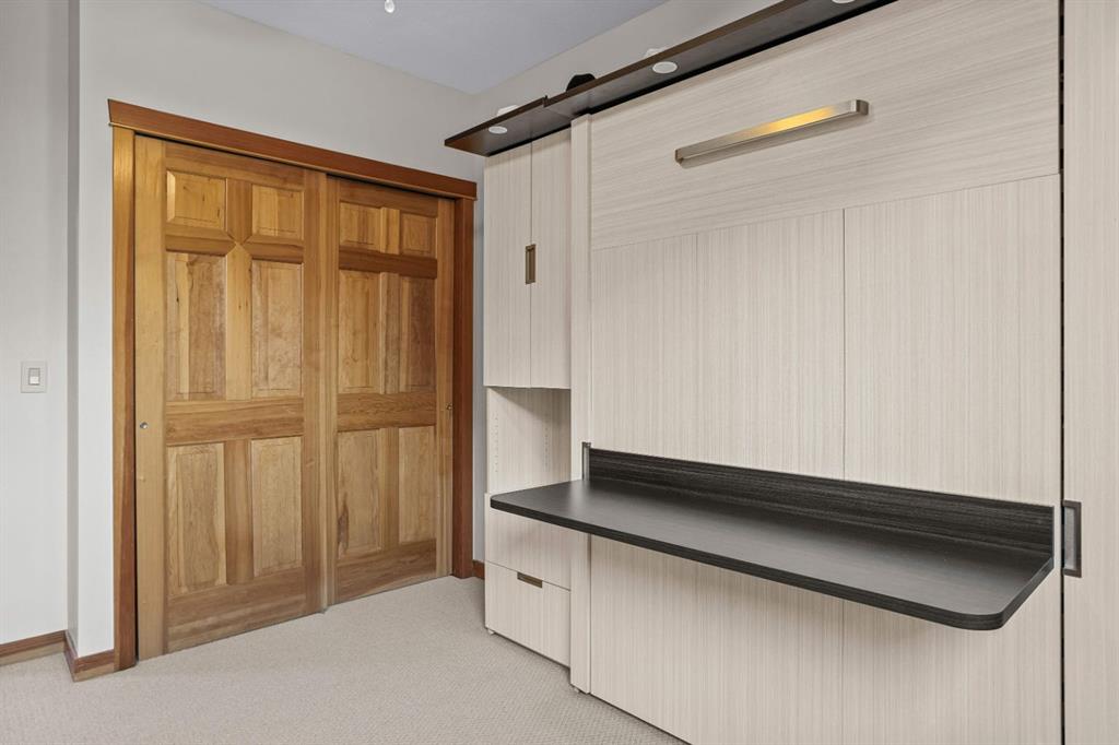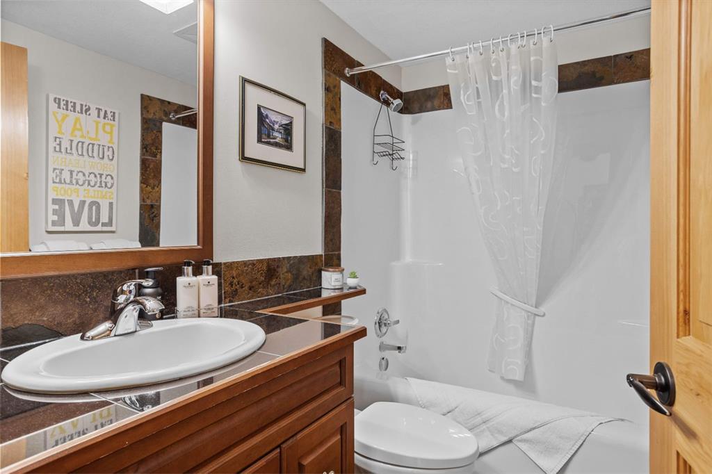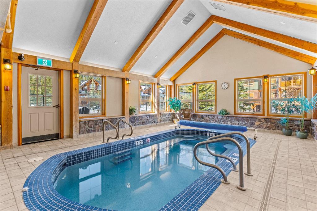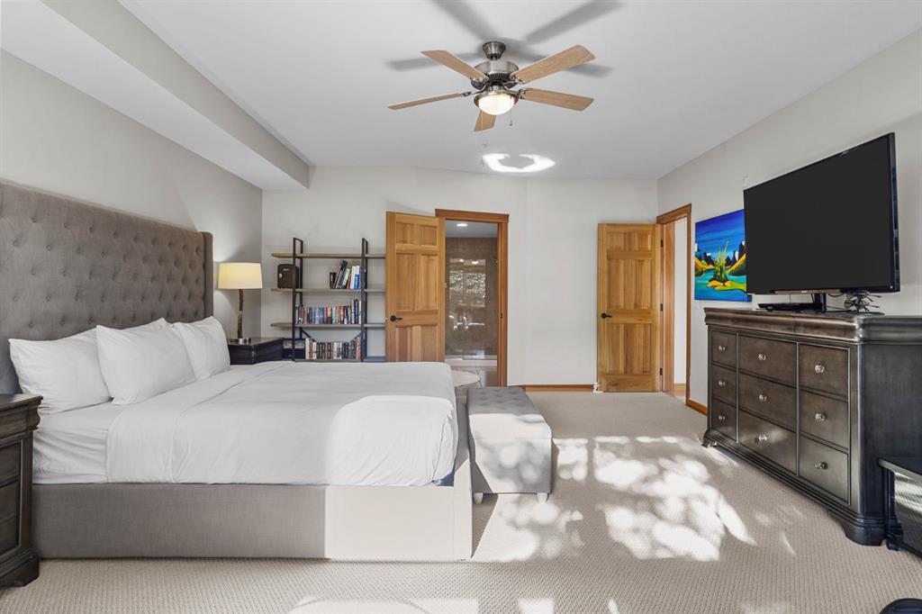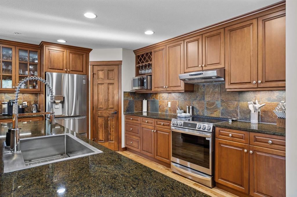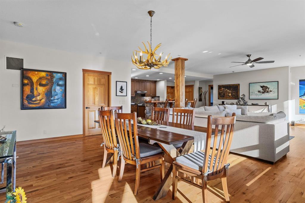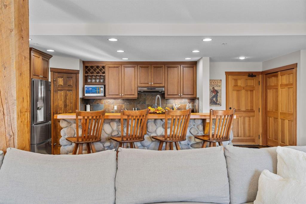 Experience the very best of mountain living at this stunning 3-bedroom, 3-bathroom, single level condo in Trailside Lodges. Spanning over 2000SF, this property offers breathtaking, Southeast-facing mountain views, an abundance of natural light, and a seamless blend of comfort and style. You feel the warmth and spaciousness here from the moment you step inside this beautiful open-concept living area, with floor-to-ceiling stone fireplace and beautiful hardwood flooring. The gourmet kitchen features high-end finishes, generous counter space, and lots of cupboards, ideal for culinary enthusiasts. The primary suite is a fabulous private retreat with space for a lounge area, direct deck access, and a large ensuite with a corner jetted tub, double vanity, spacious shower, water closet and walk-in closet. A second master suite also boasts direct deck access, a walk-in closet, and another elegant ensuite with double vanities. The third bedroom, tucked away for privacy, enjoys its own unique mountain views with a third full bathroom nearby. An oversized laundry room with additional flex space add to the home’s thoughtful design and offer tons of storage room. Enjoy outdoor living year-round on the impressive 35′ x 9′ partially covered deck with a roll-down sunshade, providing a comfortable space to take in the incredible mountain vistas. A number of recent upgrades have been completed, including new appliances, new kitchen sink/faucet, new toilets, & a murphy bed. Ownership at Trailside Lodges includes access to one of the best-outfitted clubhouses in Canmore, with hands down, the best outdoor hot tub with unbelievable panoramic views, an indoor resistance pool, a well-equipped fitness center, billiards & games loft, and a theatre room. Additional conveniences include a heated underground parking stall, storage for all your seasonal gear, and ample guest parking. This home is move-in ready and offers the perfect lock-and-leave lifestyle without compromising space or luxury.