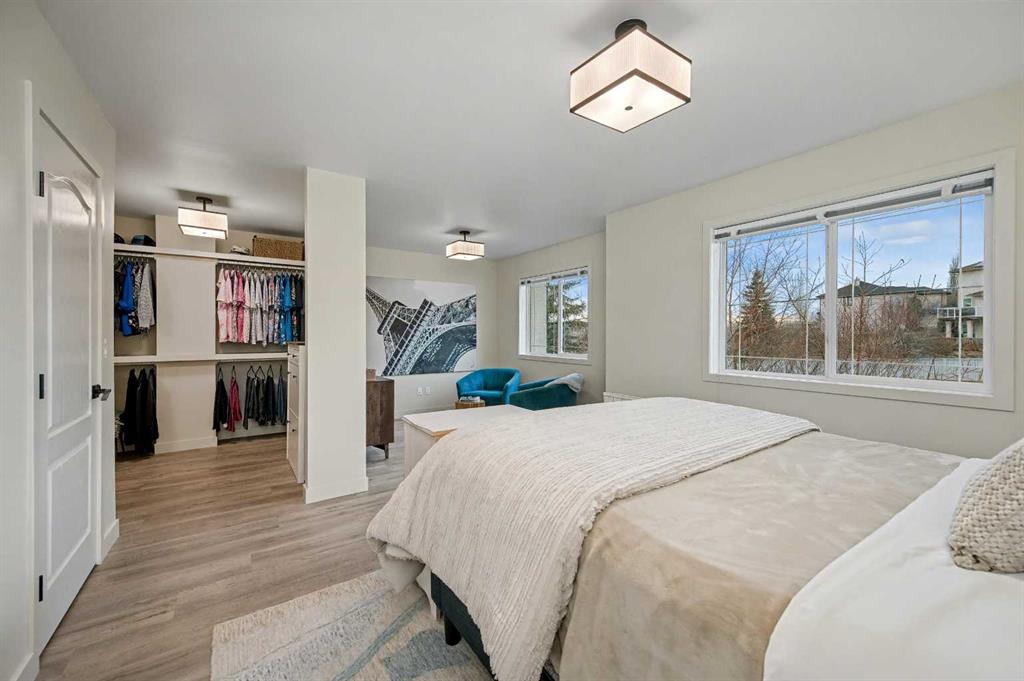 Welcome to The Fairways Vistas, your new home! This recently renovated executive-style townhome offers spacious living paired with stylish comfort and smart design. As you walk in, a mid-century partition opens up to a bright main living area featuring a large bay window that fills the room with natural light and courtyard views. The corner gas fireplace adds warmth and atmosphere, especially during those fall evenings. Next to the living room, a dropped ceiling defines the open dining area, which can also serve as a perfect spot for a home office. Past the main floor powder room is a modern kitchen outfitted with stainless steel appliances, quartz countertops, and elegant oak cabinetry. The practical layout includes generous counter space, a pantry near the range, and an oversized sink with a garburator, making meal prep easy. Hosting is simple with a sizable peninsula that features a built-in microwave, eating bar, and wine fridge. The adjacent breakfast nook is designed for gatherings and gives access to a large rear deck, complete with a gas hookup for barbequing and mature trees for privacy and shade. Upstairs are two large master suites. The primary suite has a walk-through closet leading to a roomy bathroom with a soaker tub, separate shower, and a wide vanity perfect for two sinks if desired. An adjoining flexible space works well as a reading nook, yoga area, or nursery. The second suite overlooks the SE facing courtyard and comes with a walk-through closet with custom wood shelving and upgraded organizers, plus its own full bathroom! The lower level provides a versatile ground-level area accessible from the double garage—ideal for a gym, hobby room, home office or extra storage. It’s prepped for a future bathroom if you want to convert it into a lower-level laundry, wine making or mudroom. This home offers more space than most brand new builds and features larger and more private grounds. Premium upgrades including luxury vinyl plank flooring throughout, fresh paint, and updated lighting. Recent updates feature a fiberglass front door, insulated garage door with tinted windows, resurfaced deck and entryway, composite steps with aluminum railing, and improved roofing and gutters. Residents enjoy modern amenities in a mature community, close to golf courses, walking paths, the airport, major traffic routes, and all kinds of shopping. Schedule a visit to discover the comfort and lifestyle this outstanding residence has to offer.