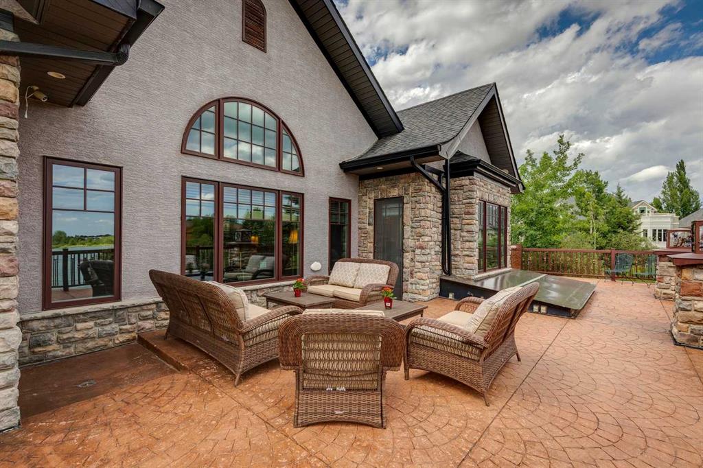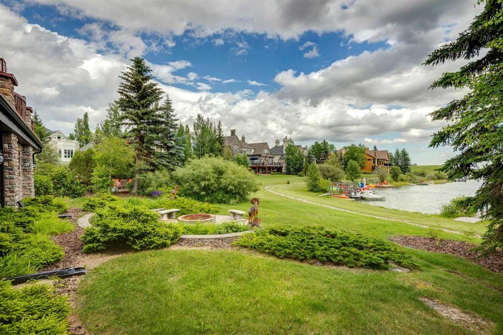Discover one of the most iconic estate homes offered in prestigious Elbow Valley Estates—an extraordinary custom residence that combines European grandeur, architectural artistry, and exceptional craftsmanship. Perfectly positioned on a private lakefront lot, this executive walkout bungalow offers over 8000 square feet of exquisitely developed living space, designed with precision over years of thoughtful planning and executed by master artisans. From the moment you enter the grand foyer with its coffered and barrel-vaulted ceilings, it’s clear this is a home unlike any other. The main level features a sun-drenched great room with a double-sided fireplace and expansive windows framing unobstructed lake views. The heart of the home is the richly appointed ‘French Manor’ inspired kitchen—equipped for grand-scale entertaining with granite countertops, top-tier appliances including a Sub-Zero refrigerator, gas range with pot filler, two dishwashers, and a walk-in pantry. A cozy breakfast nook with fireplace and access to the expansive upper deck provides the perfect spot for morning coffee overlooking the water (with handi-cap access). An elegant formal dining room with custom glass cabinetry, a fully paneled library/office with fireplace, and a large laundry/sewing/hobby room complete the main level. A reverse osmosis water system is conveniently located in the craft room. The luxurious primary suite is a private sanctuary, featuring a vaulted sleeping area, two-way fireplace, and a spa-inspired circular ensuite with bubbling soaker tub, walk-in shower, dual vanities, and a generous dressing room with built-ins. The suite also offers deck access to enjoy tranquil lake views. A versatile loft functions as a full office or creative workspace, complete with multiple workstations—ideal for today’s remote professional or growing family. The lower level is designed for recreation and relaxation, boasting an authentic English-style pub with a full wet bar, games room, media/theatre room, and three additional spacious bedrooms—each with their own private ensuite and walk-in closet. Three solariums enhance the lower level, offering a fully enclosed hot tub retreat, home gym, and peaceful sitting room, all flooded with natural light. This remarkable residence is equipped with countless thoughtful upgrades, including two newer air conditioning units, newer hot water tank and sump pump, new sinks and hardware in the craft room and kitchen . The property also features a recently serviced irrigation system. Designed for effortless living, this home includes hydronic in-floor heating on all levels, a dramatic central staircase, private elevator, and a heated triple garage. Every detail reflects unparalleled quality and meticulous attention throughout. Outdoor living is equally exceptional, with sweeping views of the lake and beautifully landscaped grounds—an entertainer’s dream and a private oasis.