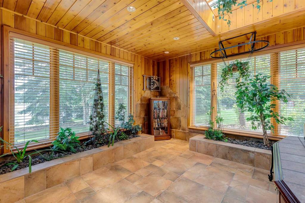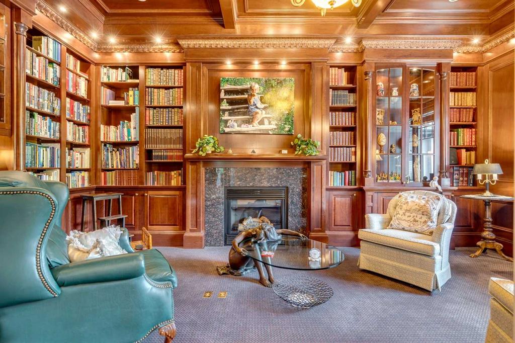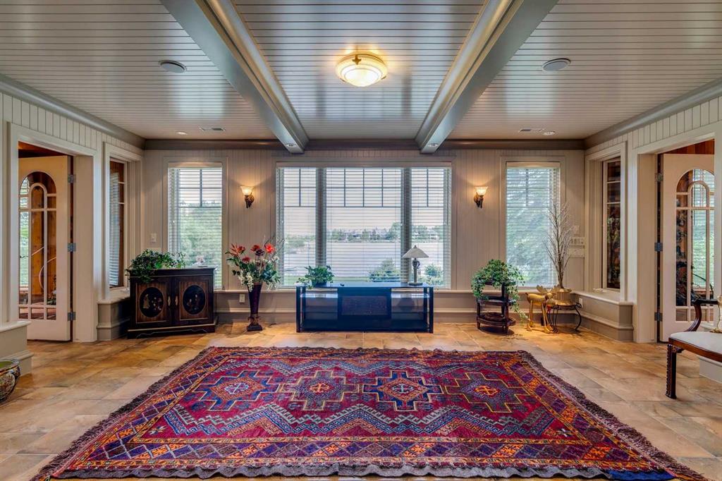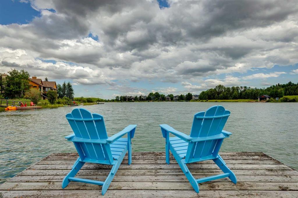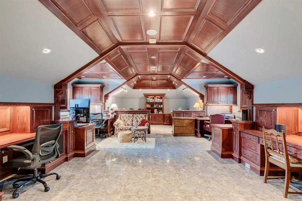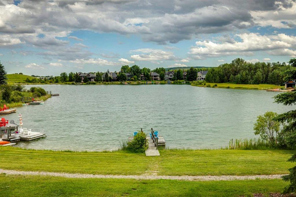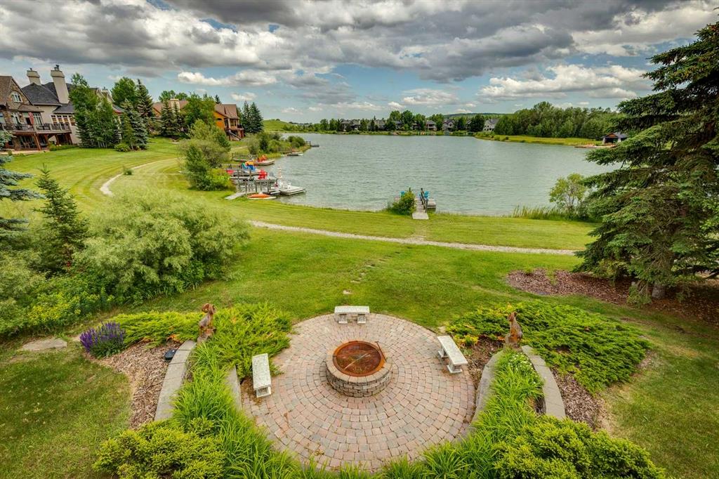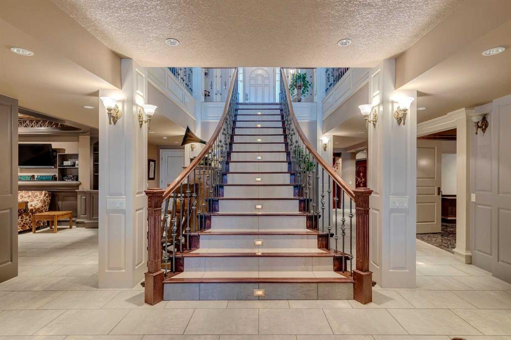 Discover one of the most iconic estate homes offered in prestigious Elbow Valley Estates—an extraordinary custom residence that combines European grandeur, architectural artistry, and exceptional craftsmanship. Perfectly positioned on a private lakefront lot, this executive walkout bungalow offers over 8000 square feet of exquisitely developed living space, designed with precision over years of thoughtful planning and executed by master artisans. From the moment you enter the grand foyer with its coffered and barrel-vaulted ceilings, it’s clear this is a home unlike any other. The main level features a sun-drenched great room with a double-sided fireplace and expansive windows framing unobstructed lake views. The heart of the home is the richly appointed ‘French Manor’ inspired kitchen—equipped for grand-scale entertaining with granite countertops, top-tier appliances including a Sub-Zero refrigerator, gas range with pot filler, two dishwashers, and a walk-in pantry. A cozy breakfast nook with fireplace and access to the expansive upper deck provides the perfect spot for morning coffee overlooking the water (with handicap access). An elegant formal dining room with custom glass cabinetry, a fully paneled library/office with fireplace, and a large laundry/sewing/hobby room complete the main level. A reverse osmosis water system is conveniently located in the craft room. The luxurious primary bedroom is a private sanctuary, featuring a vaulted sleeping area, two-way fireplace, and a spa-inspired circular ensuite with bubbling soaker tub, walk-in shower, dual vanities, and a generous dressing room with built-ins. The master bedroom also offers deck access to enjoy tranquil lake views. A versatile loft functions as a full office or creative workspace, complete with multiple workstations—ideal for today’s remote professional or growing family. The lower level is designed for recreation and relaxation, boasting an authentic English-style pub with a full wet bar, games room, media/theatre room, and three additional spacious bedrooms—each with their own private ensuite and walk-in closet. Three solariums enhance the lower level, offering a fully enclosed hot tub retreat, home gym, and peaceful sitting room, all flooded with natural light. This remarkable residence is equipped with countless thoughtful upgrades, including two newer air conditioning units, newer hot water tank and sump pump, new sinks and hardware in the craft room and kitchen . The property also features a recently serviced irrigation system. Designed for effortless living, this home includes hydronic in-floor heating on all levels, a dramatic central staircase, private elevator, and a heated triple garage. Every detail reflects unparalleled quality and meticulous attention throughout. Outdoor living is equally exceptional, with sweeping views of the lake and beautifully landscaped grounds—an entertainer’s dream and a private oasis.
