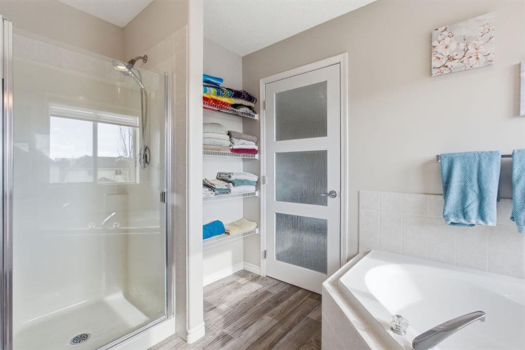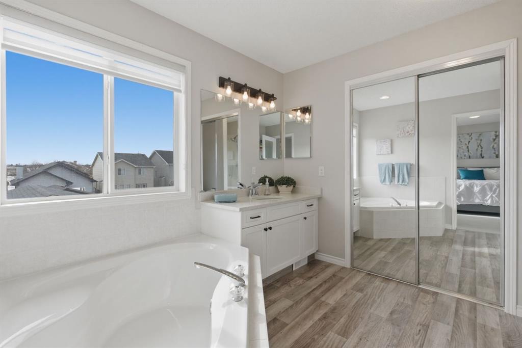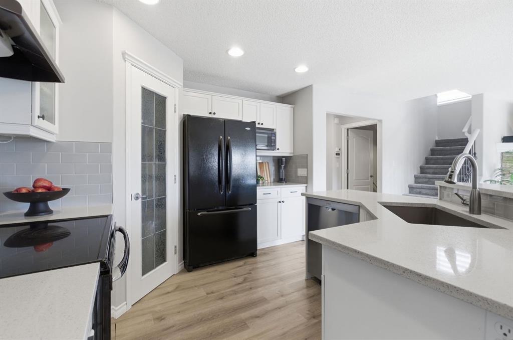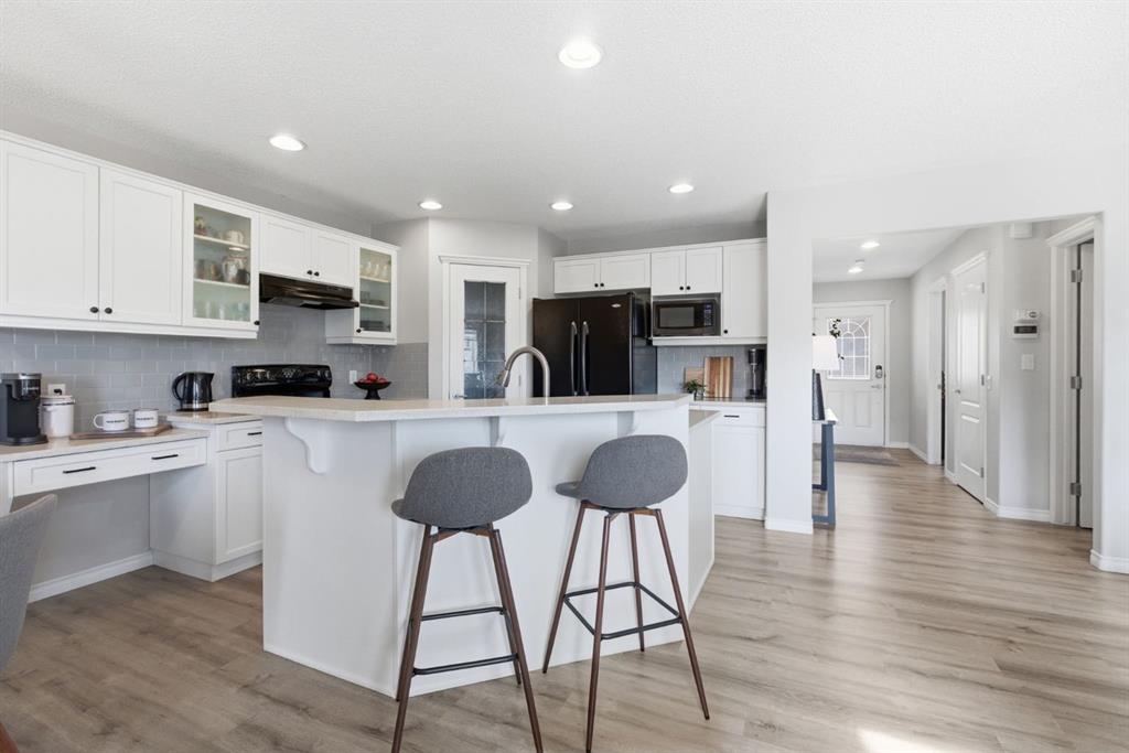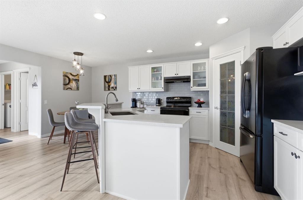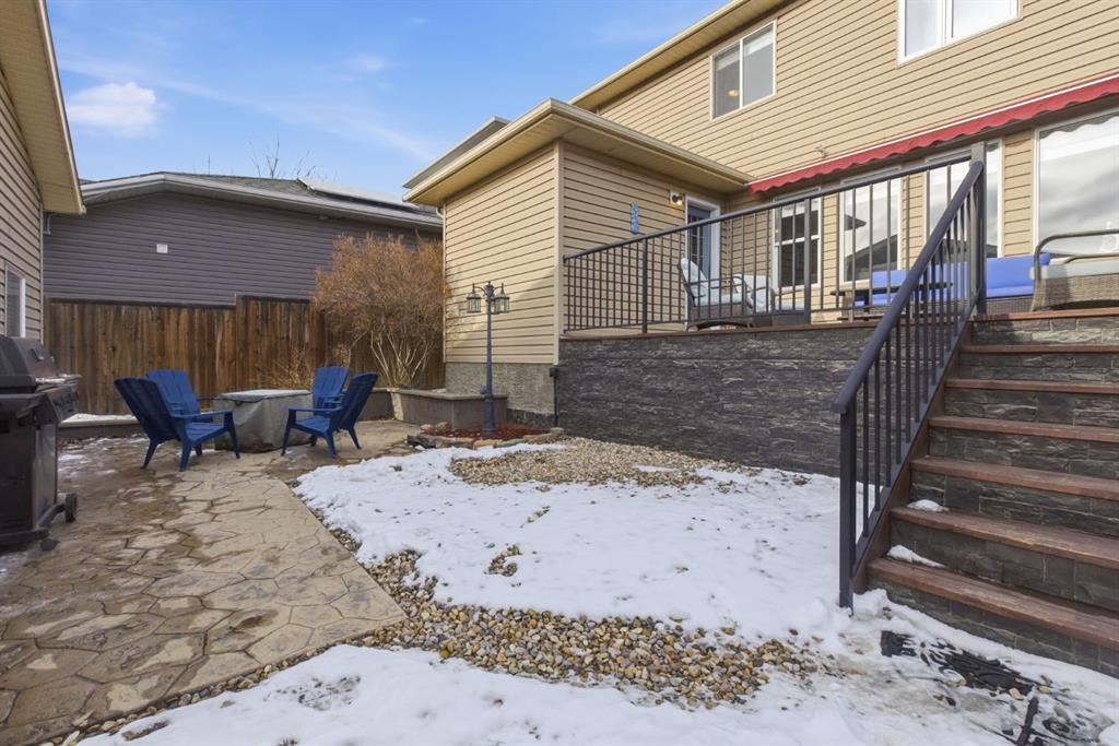 Welcome to this exceptional two-storey home, perfectly situated on the quiet, family-friendly west side of McKenzie Towne. With a professionally developed basement and thoughtful updates throughout, this home offers the perfect combination of space, style, and functionality for today’s modern family. The main floor is designed with flexibility in mind, featuring both a formal dining room (or flex space) and a dedicated office/den—ideal for working from home. The open-concept layout showcases a bright and inviting living room with a cozy fireplace, flowing effortlessly into the kitchen and breakfast nook. The kitchen has been beautifully refreshed with refinished cabinetry, new countertops, and updated lighting, creating a modern and welcoming space. Throughout the main level, you’ll appreciate the new flooring, while the upper level offers newer carpet for added comfort. Additional upgrades include new blinds, stylish new light fixtures, and the convenience of a new washer and dryer. Upstairs, you’ll find four generously sized bedrooms, including a spacious primary retreat complete with a large ensuite featuring updated countertops. In total, the home offers three and a half bathrooms to comfortably accommodate a growing family. The fully finished basement expands your living space with a fifth bedroom, an additional flex or playroom, and a second fireplace—perfect for relaxing or entertaining. Step outside to enjoy a sunny, professionally landscaped backyard designed for zero maintenance. The full awning over the deck creates the perfect setting for shaded evening dining. Both the front patio and rear deck have been upgraded with new cedar decking and sleek aluminum railings. Additional features include central air conditioning for year-round comfort, newer hot water tank and roof. The oversized, heated, and insulated garage is a standout—offering extra width and height, 220V power, a new garage door opener, and the ability to park an RV alongside. This is a rare opportunity to own a move-in ready home in a prime location, packed with upgrades and designed to meet all your needs.