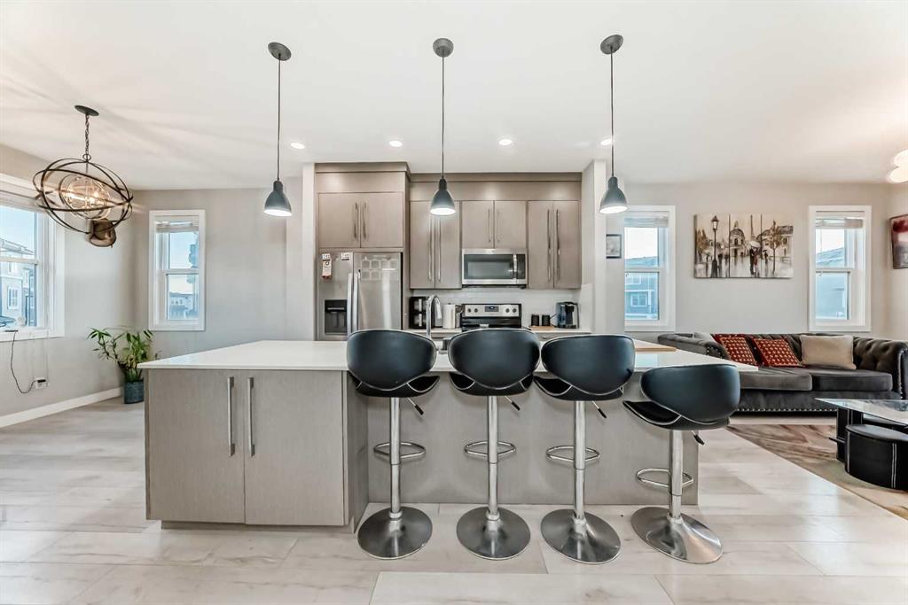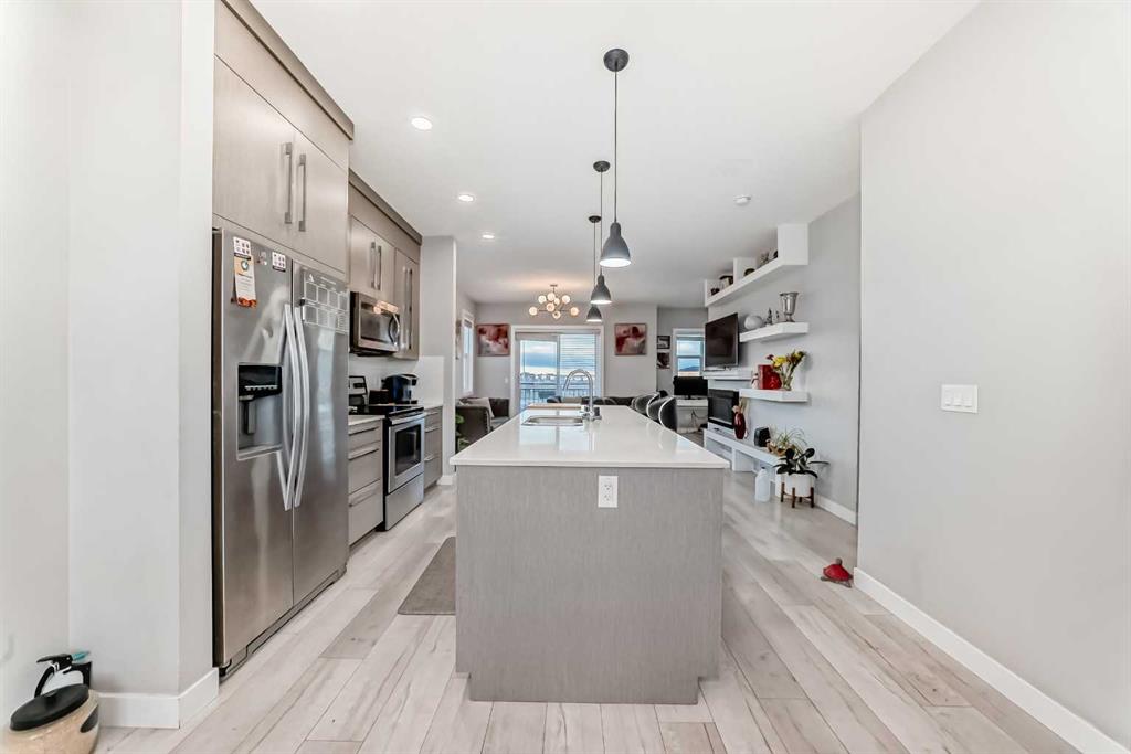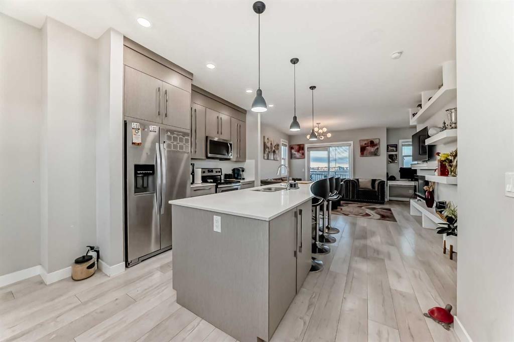 WELCOME to this beautifully maintained END-UNIT TOWNHOUSE fitted with Air Conditioner, offering the perfect blend of comfort, style and functionality. Featuring 4 SPACIOUS BEDROOMS, 2.5 BATHROOMS AND A DOUBLE ATTACHED GARAGE, this home is ideal for families, professionals or investors alike. Being an END UNIT, this home enjoys an abundance of NATURAL LIGHT through extra windows, creating a bright and welcoming atmosphere throughout. The GROUND LEVEL welcomes you with a bright DEN/bedroom, perfect for a home office, study or cozy sitting area, along with convenient access to the DOUBLE ATTACHED GARAGE. On the MAIN LEVEL, you’ll find a thoughtfully designed open-concept layout that connects the LIVING ROOM, KITCHEN, AND DINING AREA seamlessly—perfect for both everyday living and entertaining. The LIVING ROOM opens onto a FRONT BALCONY, providing a relaxing spot to enjoy morning coffee or evening sunsets. The MODERN KITCHEN is a chef’s delight, featuring sleek cabinetry, STAINLESS STEEL APPLIANCES, elegant QUARTZ COUNTERTOPS, and an EXTENDED ISLAND WITH BAR SEATING. A conveniently located POWDER ROOM completes this level. The UPPER LEVEL features a THREE GENEROUS BEDROOMS, TWO FULL BATHROOMS, including a SPACIOUS PRIMARY SUITE complete with a WALK-IN CLOSET and a 4-PIECE ENSUITE BATH. The amazing feature of upper level is that there is no carpet. This home is ideally located CLOSE TO PARKS, PLAYGROUNDS, SCHOOLS AND PUBLIC TRANSIT, this home offers exceptional convenience in a family-friendly community. A PERFECT COMBINATION OF MODERN DESIGN, NATURAL LIGHT, AND UNBEATABLE LOCATION — COME AND SEE WHY THIS TOWNHOUSE FEELS LIKE HOME THE MOMENT YOU WALK IN!