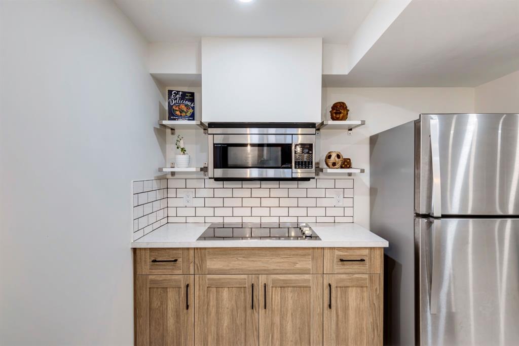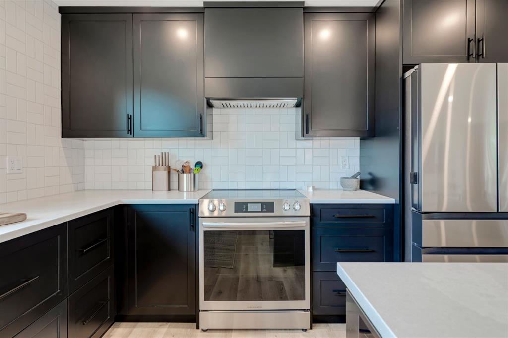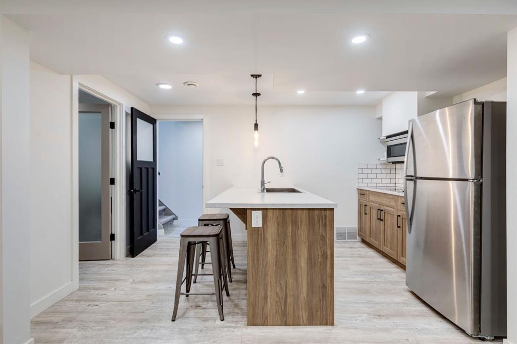 Located in one of Maple Ridge’s most desirable pockets, this STUNNING fully renovated bungalow offers a rare blend of modern comfort and active lifestyle. Just steps from Calgary’s top city-owned golf course and a large community field, you’ll enjoy year-round recreation from summer play and winter sledding to ski-in/ski-out cross-country skiing around the golf course. Driving up to the home you’ll instantly notice the charming exterior with upgraded triple pane windows (2019) with tastefully chosen black trim against the white stucco cladding and columns with archways that provide architectural accents to the front façade. Stepping inside you’re welcomed with LVP flooring and front to back sight lines that allow for maximum natural light. The kitchen was thoughtfully designed (2020) to maximize storage with Kingswood cabinetry, matte quartz countertops and an expansive island. With stainless steel appliances throughout (oven/fridge 2023) this kitchen is a chef’s dream while allowing for seamless entertaining. The kitchen is complete with a bar fridge (2020) and views of your professionally landscaped backyard with a new fence (2024). The living room has 2 beautiful south facing windows that come equipped with automated blinds, space for your tv, and ties into the dining area which completes the main floor open concept living space. Heading into the primary bedroom you’re spoiled with a large walk-in closet, a 4 piece ensuite with a curb-less shower and room for a king bed. The main floor is complete with 2 additional bedrooms, a 3 piece bathroom with ample of storage and an office bump out in the hallway. Heading downstairs (renovated 2019) you’ll love the generous bar that has a sink, full sized fridge, dishwasher, stove top, microwave hood fan, island with bar stool seating and storage! The basement has an open floor plan that’s ideal for a media room, play area or multi-purpose space. There are two additional bedrooms downstairs with a 3 piece bathroom. The basement is complete with a laundry room (washer 2025), a tankless hot water heater (2020), high efficiency furnace & heat pump combination with Breath EZ filter (2023), rough-in electrical wiring in attic for future solar panels (2019), upgraded 100 amp electrical panel (2020), new PEX plumbing (2019), and additional storage. Enjoy consistent indoor comfort and improved air quality year-round even during smoky wildfire summers. The backyard has been maximized and allows for multiple living spaces and trailer storage! With a poured concrete sitting area, fire-pit area and grass for the kids, this is the perfect backyard with multiple uses. The front detached garage is drywalled and insulated with a sub panel, 220V plugs and plenty of room measuring in at 22 x 23. Other features include 2016 shingles, R50 attic insulation, ample parking, paved alley, quiet location with little to no traffic (safe street for kids to play), easy access to main roads, professional interior design and a mature, safe neighborhood