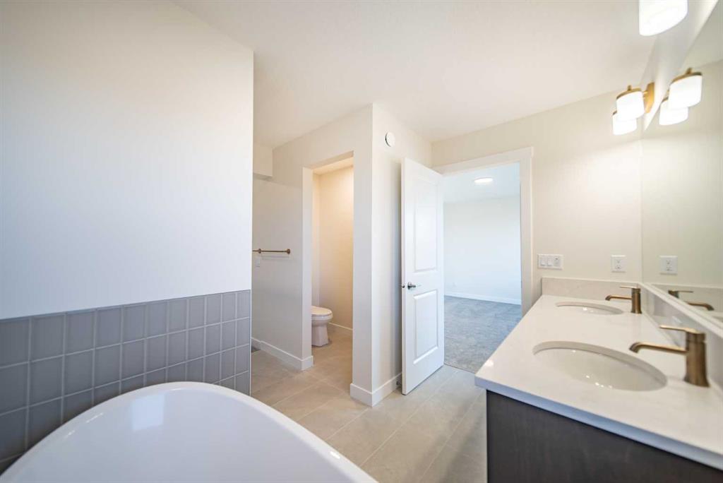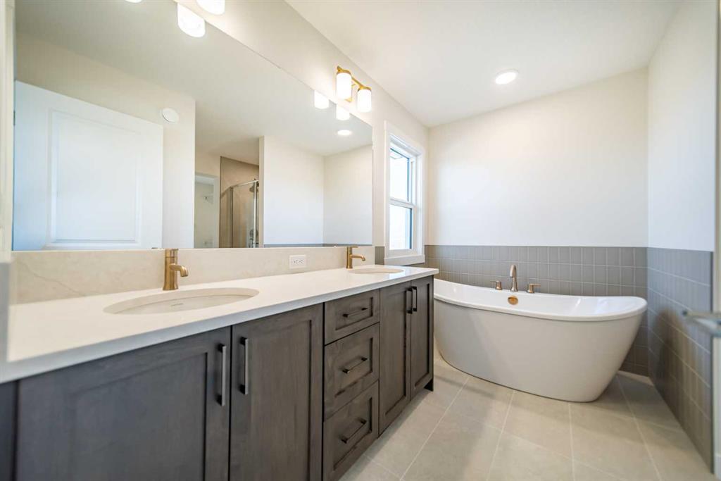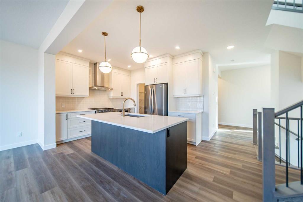 This stunning, brand-new home by award-winning Brookfield Residential is officially move-in ready and located in the highly sought-after community of Chinook Gate in Airdrie. Thoughtfully designed, this Rundle 24 model offers exceptional living with two spacious living areas, 3 bedrooms, 2.5 bathrooms, and an undeveloped basement with ample room for a future rec area, bedroom, and bathroom (with rough-ins + side entrance already in place). At the heart of the home sits a chef-inspired kitchen featuring a built-in oven range hood and microwave, and a slide-in gas range. A generous walkthrough pantry seamlessly connects the kitchen to the mudroom and the double attached garage, enhancing everyday convenience. Open to both the dining area and main living space, this kitchen is designed for effortless flow -ideal for family living and entertaining alike. A wall of west-facing windows along the back of the home fills the main floor with natural light, while the dining area’s patio doors provide direct access to the backyard. A cozy electric fireplace adds warmth and comfort to the living room, creating the perfect atmosphere for winter evenings. Beautiful natural wood railings with iron spindles lead to the upper level, where a central bonus room separates the luxurious primary suite from the secondary bedrooms, ensuring both privacy and functionality. The spacious primary bedroom boasts a spa-inspired 5-piece ensuite complete with dual sinks, a soaker tub, a walk-in shower, and an impressive walk-in closet. Two additional well-sized bedrooms, a full bathroom, a large linen closet, and a dedicated laundry room complete the upper floor. The basement, offering nearly 800 sq. ft., is a blank canvas ready for your personal vision – whether that’s a home theatre, gym, additional bedrooms, or all of the above and the bathroom rough-ins are already in place. Situated on a bright and sunny lot spanning nearly 4,000 ft2 in size with ideal west backyard exposure, this is the perfect home both inside and out! With both Builder Warranty and Alberta New Home Warranty, you can purchase with confidence. Fully finished, beautifully designed, and move-in ready, this exceptional home in Chinook Gate is perfect for a growing family looking for comfort, style, and a vibrant community.