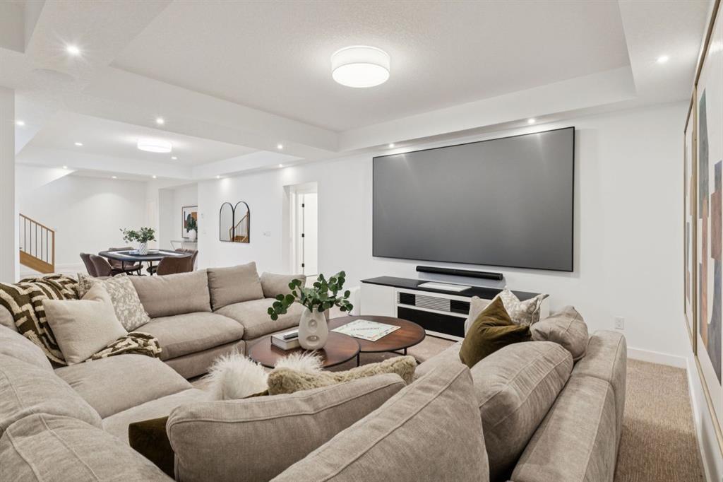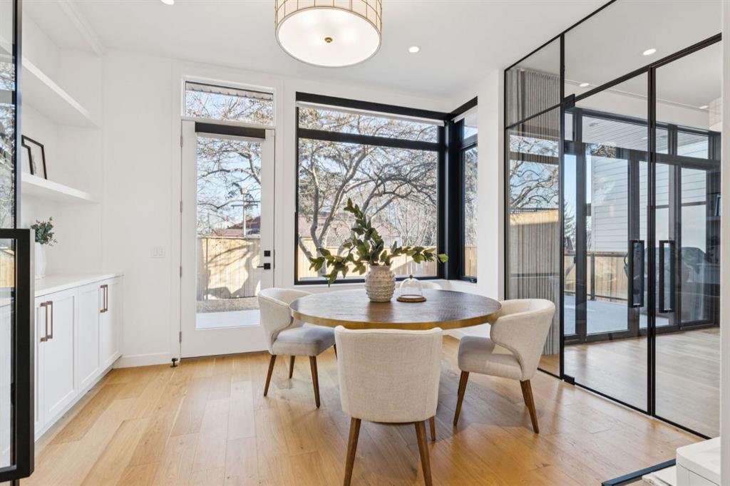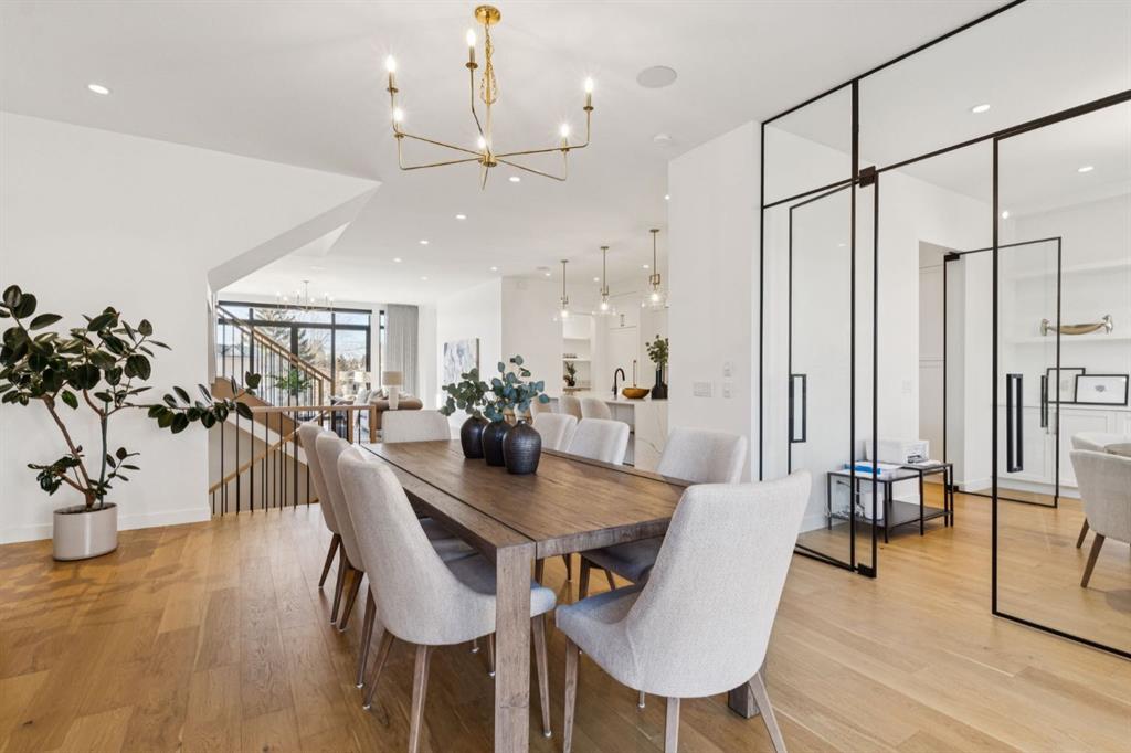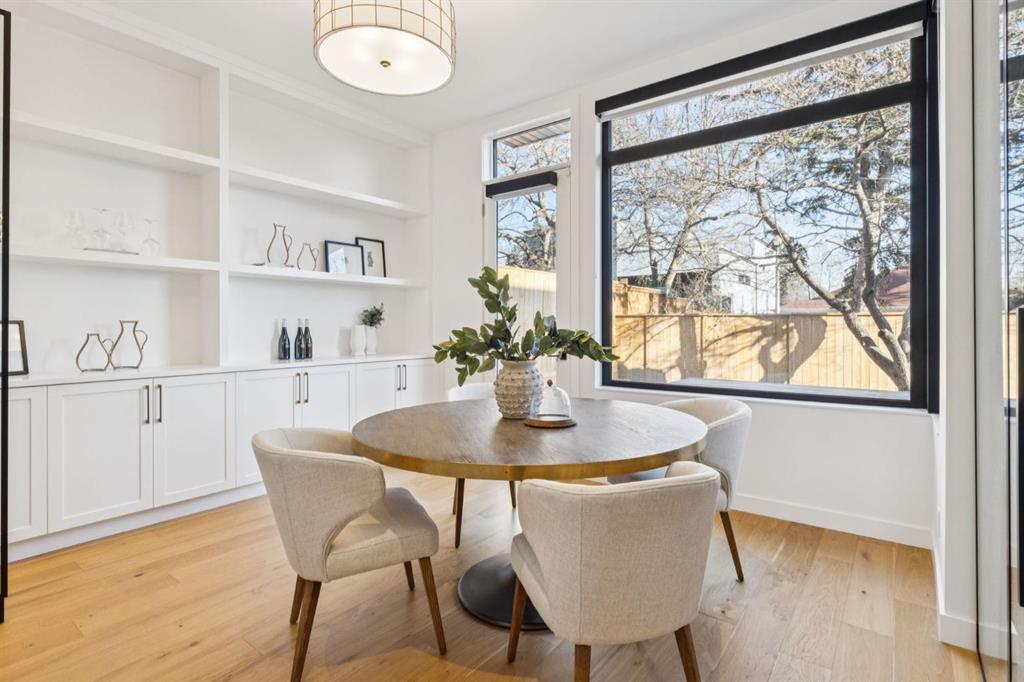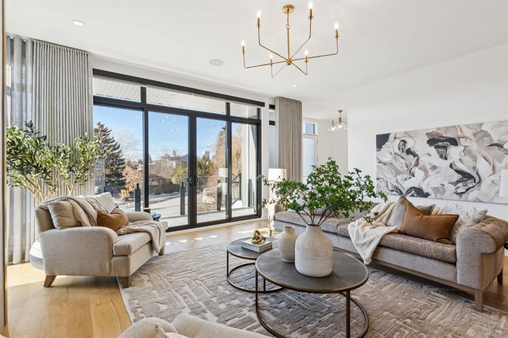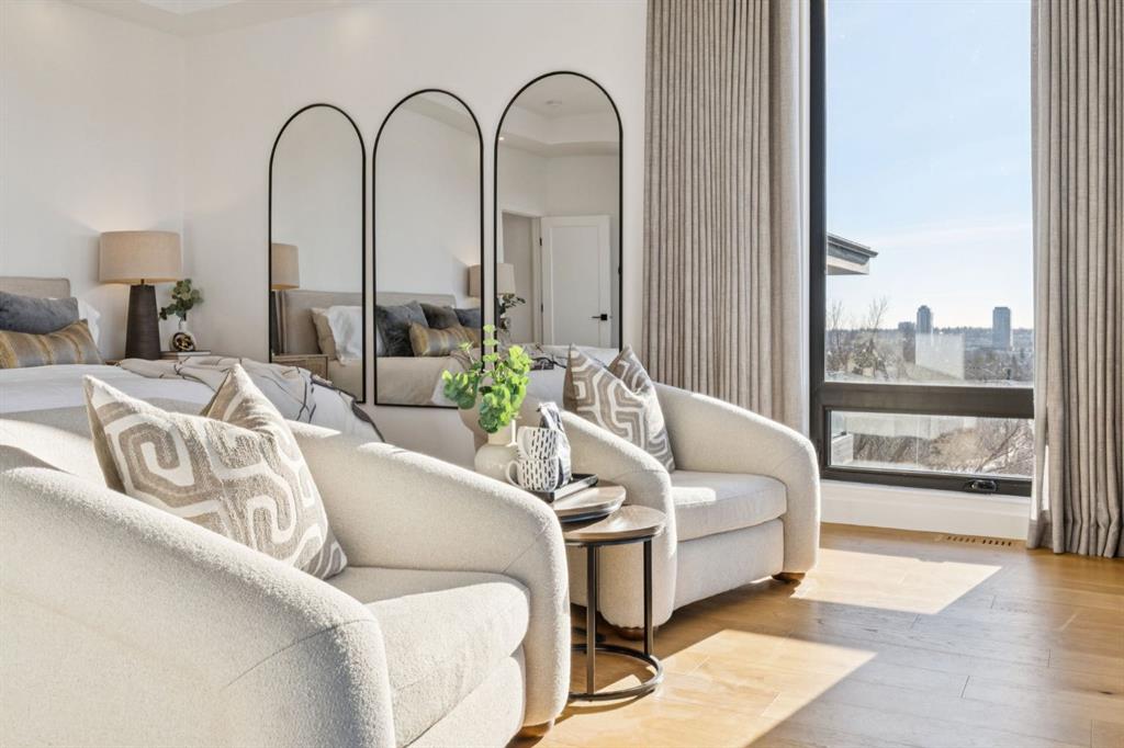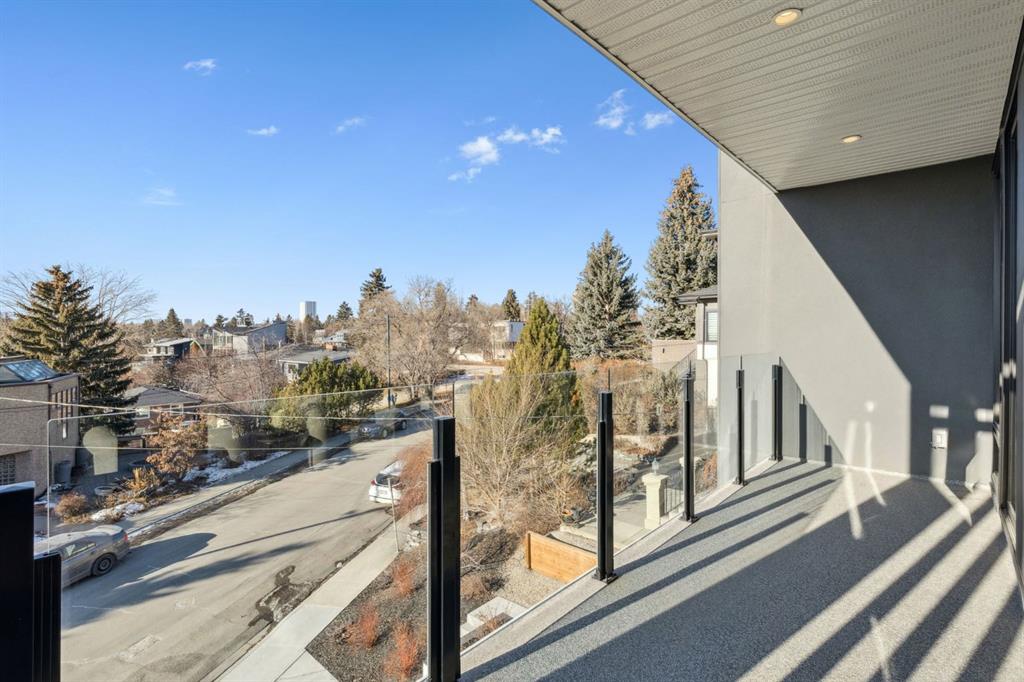An extraordinary hillside sanctuary awaits in the exclusive inner-city community of Briar Hill. Ideally located on a peaceful street, this fabulous home offers over 4,600 square feet of contemporary living space and sweeping views of the city skyline and the Rocky Mountains. Sunlight streams through floor-to-ceiling windows, filling the open main floor all day with natural light. A heated porcelain-tiled foyer, 10 ft. ceilings, and wide-plank white oak floors throughout provide warmth and sophistication. Relax by the modern gas fireplace on quiet winter evenings with a book or connect with friends and family on the front deck. The chef’s dream kitchen features a large quartz-topped island with cabinetry on both sides, ideal for meal prep and casual dining. Premium Italian-designed Fulgor Milano appliances—including a professional 6-burner gas stove, an integrated warming drawer, and a combi speed oven—make entertaining seamless. The butler’s pantry adds functionality with an additional counter space, storage, and a wine/beverage fridge for extra convenience. Host memorable dinners in the expansive dining room, with sliding doors to a private back patio and backyard, which is perfect for BBQ’s and al fresco dining in warmer months. The private office, accessible from the kitchen and backyard, is filled with morning light and offers a tranquil, creative workspace. Upstairs, the serene primary suite impresses with a 10-foot tray ceiling and a second balcony with west-facing mountain views. A cozy seating area is perfect for morning coffee, watching the city wake, and enjoying the incredible, vibrant Calgary sunsets. The luxurious ensuite has a massive double steam shower with a bench, heated floors, oversized soaker tub, dual vanities, and a large walk-in closet. Begin and end your day with relaxation and rejuvenation in the wellness room, featuring an authentic Finnish sauna with a Bluetooth sound system. Two additional bedrooms with oversized windows, spectacular city views, and walk-in closets provide comfort for family or guests. A convenient laundry room with sink and storage completes the upper level. The lower level includes a spacious rec room with a wet bar, a beverage fridge, and flex space for game tables or workouts. The entertainment area is ideal for movie nights or big game day parties. The fourth bedroom and full bath provide guests with privacy and ease. Two massive storage rooms and a large mudroom lead to the oversized 698 sq. ft. heated double garage, with even more storage or a spot for a workshop. Highlights include a Sonos home & audio system, Hunter Douglas electronic window coverings, Lutron integrative lighting, hydronic in-floor heating in the lower level and central air conditioning. Only 10 minutes from downtown, a 20-minute walk to shops and restaurants in Kensington, and steps from walking paths on the hillside. Experience luxury, comfort, and breathtaking surroundings—this is the quintessential urban lifestyle you’ve been waiting for!